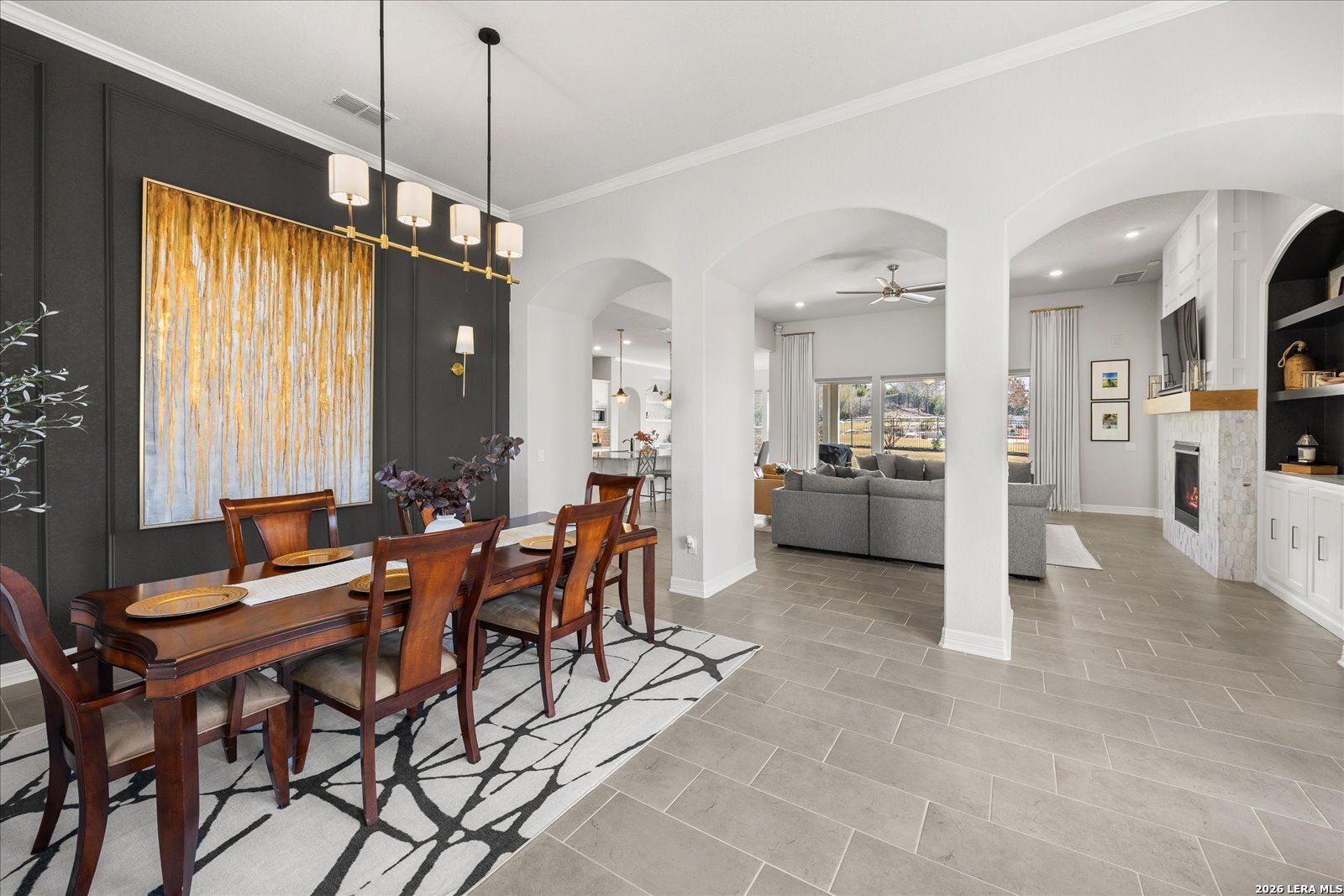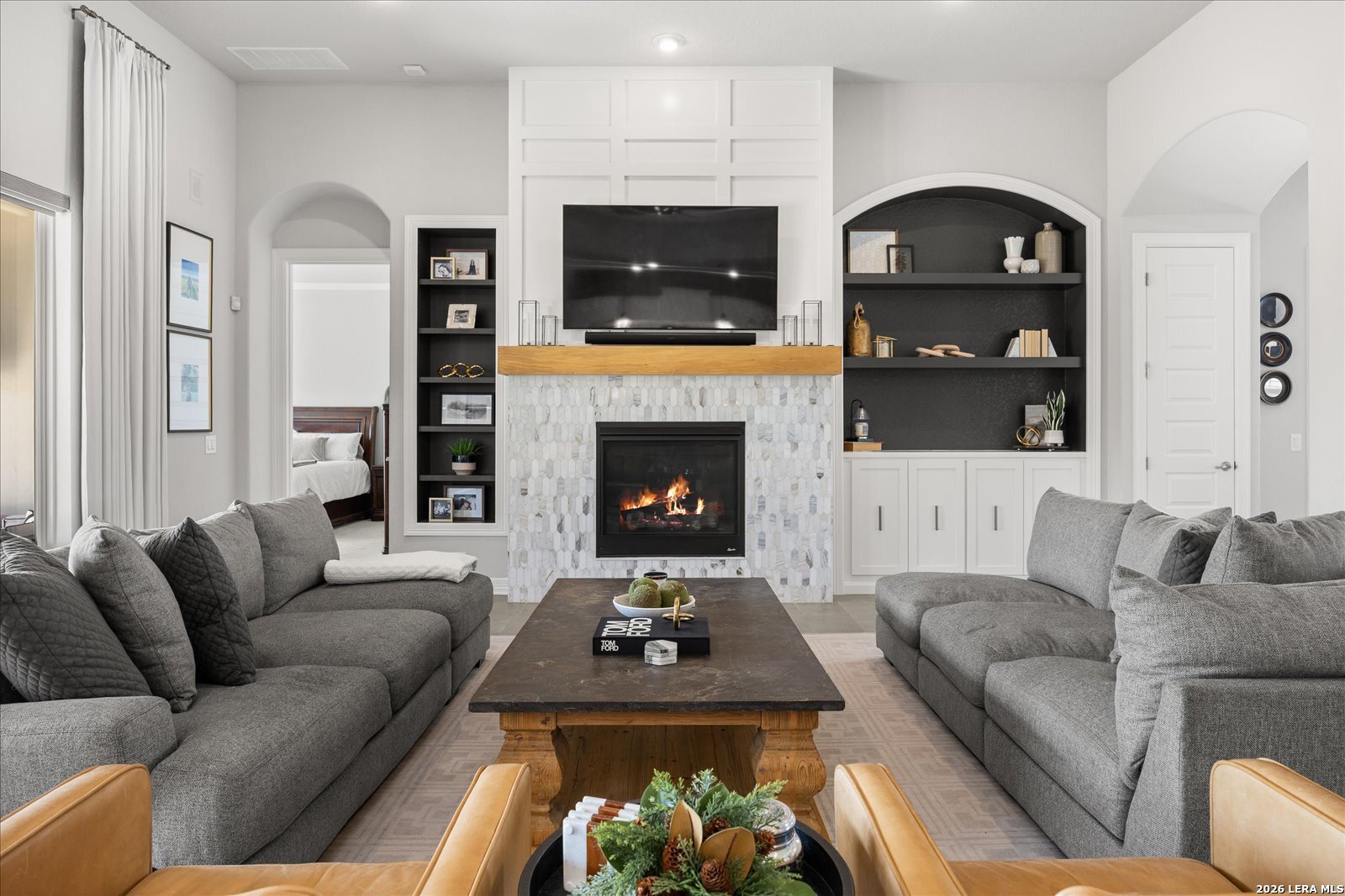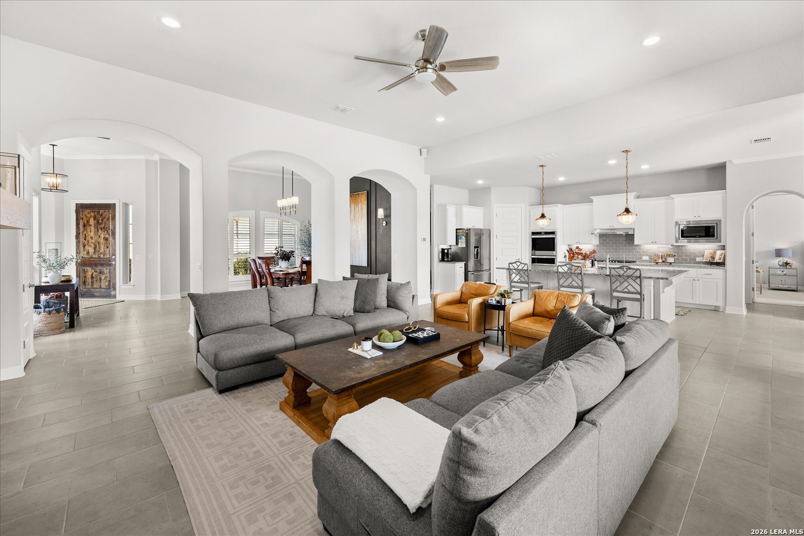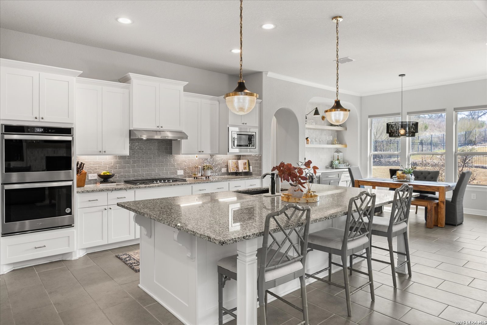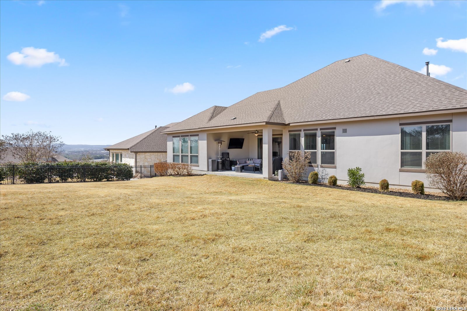 Discover refined Hill Country living in the breathtaking community of Esperanza, nestled in the heart of the scenic Texas Hill Country just minutes from charming downtown Boerne. This stunning one-story residence blends elegance, comfort, and thoughtful design into an unforgettable home experience. Featuring 4 spacious bedrooms, 3 luxurious baths, and a private study, this home welcomes you with an expansive open-concept living area perfect for gathering and entertaining. The beautifully renovated fireplace and custom alcove create a warm, inviting focal point, while bespoke cabinetry and built-in bookshelves add a touch of timeless sophistication. Motorized blinds in the living room, entry, and breakfast area provide effortless comfort and style. The dream kitchen is truly the heart of the home showcasing custom cabinetry and shelving, a striking zellige backsplash, double ovens, an oversized island with an upgraded sink, and a generous walk-in pantry. A thoughtfully designed bar in the breakfast nook offers a chic, custom feel ideal for hosting friends and family. Work from home in peace and privacy in the dedicated study, then step outside to a covered patio overlooking an oversized backyard perfect for lively gatherings, relaxing evenings, and endless possibilities. Life in Esperanza means more than just a beautiful home it's a lifestyle. Enjoy access to an incredible clubhouse with a resort-style pool, lazy river, fitness center, beach volleyball court, and dog park, creating everyday moments that feel like a getaway.