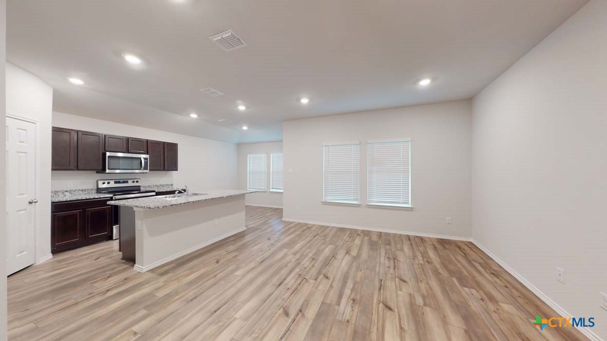 The Ashburn floorplan at Turnbo Ranch in Killeen, Texas is a 3-bedroom, 2-bathroom single-story home covering approximately 1,263 sq. ft. The 2-car garage ensures plenty of space for vehicles and storage. In this floorplan, you’ll find a home that makes the most of its space. The kitchen features beautiful flat panel birch cabinetry with granite countertops as it flows into the dining area and great room. The bedrooms are carpeted, and the primary bedroom has an attached bathroom with a walk-in closet. The secondary bedrooms are cozy and carpeted, with plenty of closet space. The laundry room and a secondary bathroom are perfectly place next to these rooms for easy access. Enjoy nature from the backyard covered patio that is attached to the dining area. Here you can start or end your day relaxing with nature. Like with all our homes, you’ll never be too far from home with our smart home technology thoughtfully designed into every detail. Find security and control through the Qolsys panel, your phone, or voice and when you want to add additional smart home tech, easily integrate with Z-wave or Bluetooth technology. Come visit the Ashburn floorplan today to find your new home!