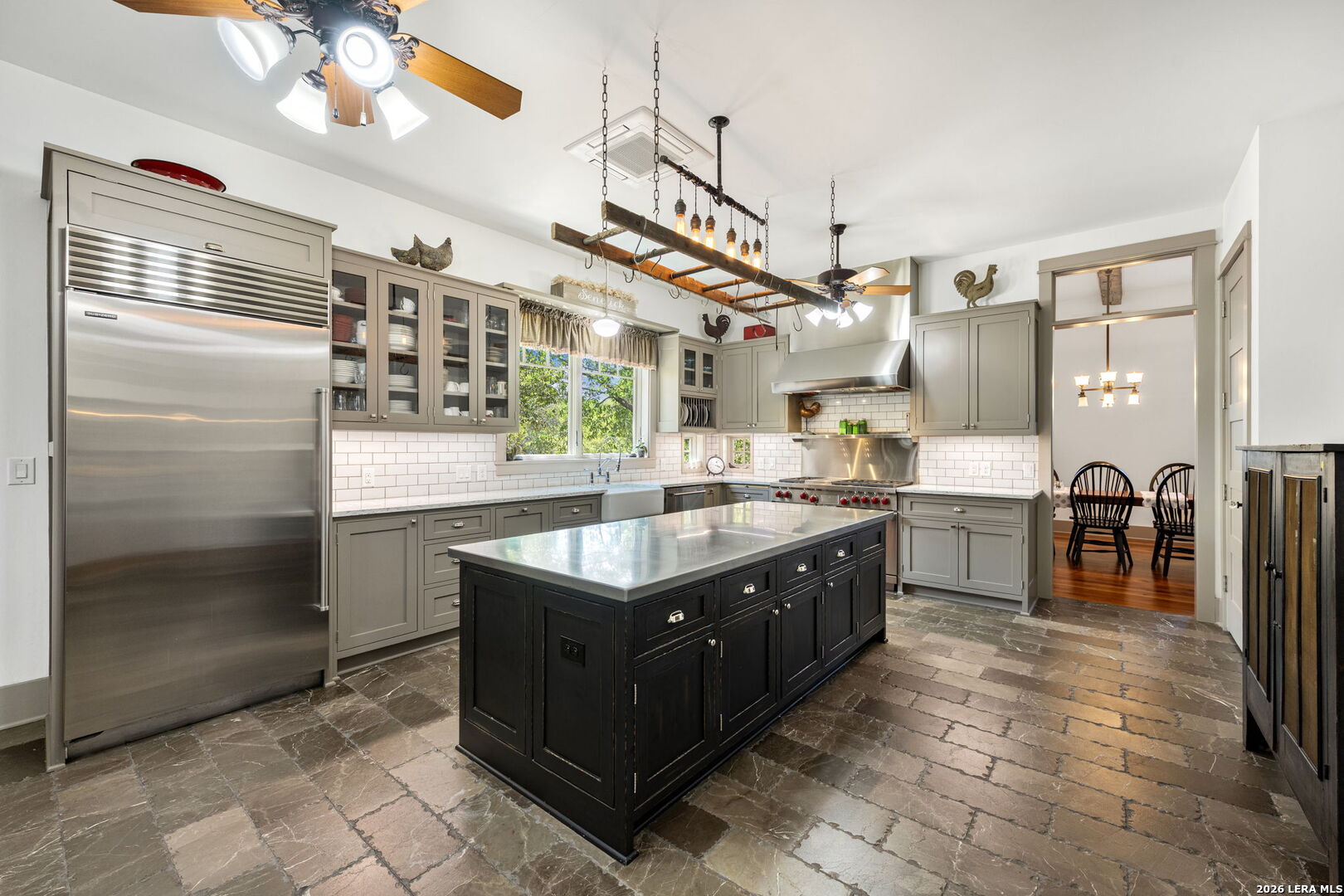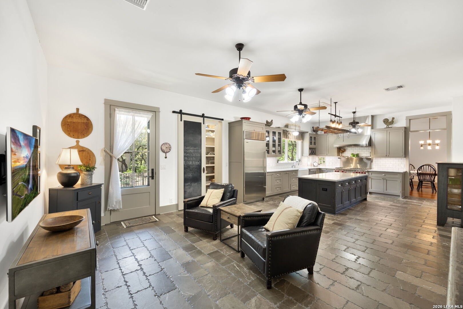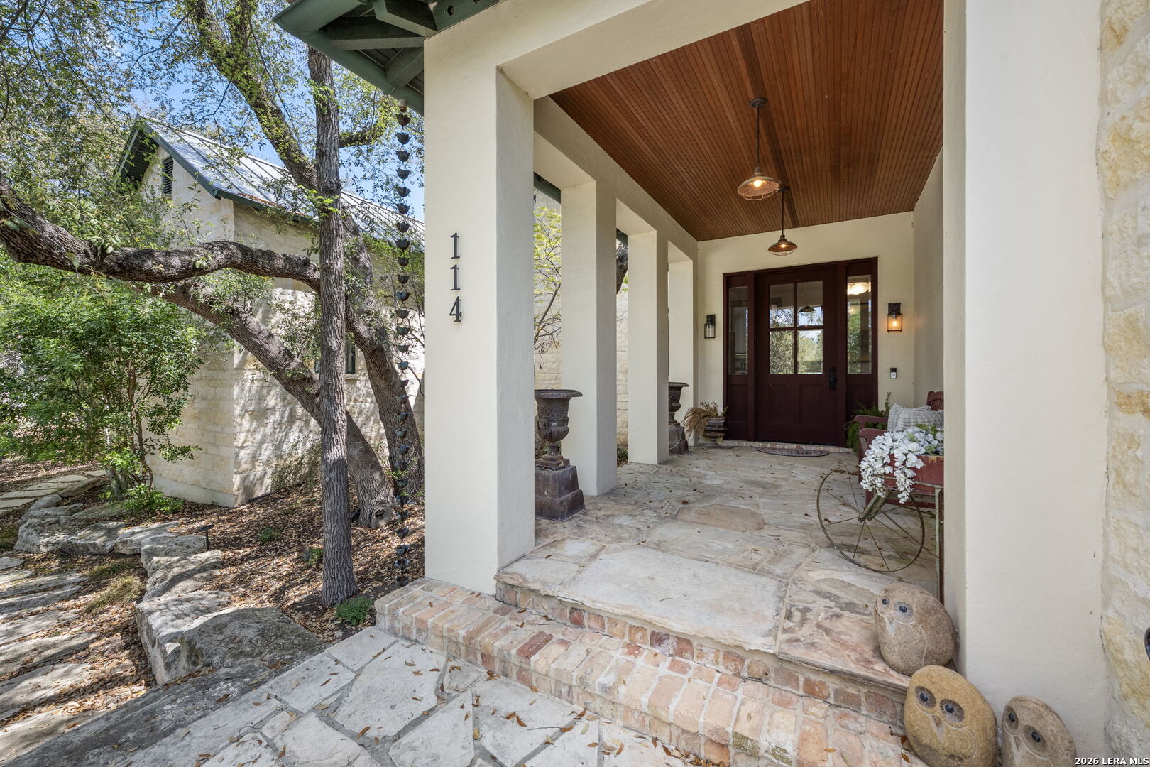 Welcome to a stunning two-story estate nestled within the prestigious, 24/7 guard-gated community of Inverness-one of San Antonio's most sought-after neighborhoods, known for its privacy, security, and luxury homes. This beautifully designed residence offers approximately 4,397 square feet of refined living space, featuring a striking blend of stucco, stone, and rock exterior that delivers timeless curb appeal. Inside, you'll find an exceptional layout with 3 spacious bedrooms, 2.5 baths, and a thoughtfully designed floor plan ideal for both everyday living and entertaining. The kitchen is a standout feature of the home, blending warmth, character, and functionality. It offers abundant custom cabinetry, a large center island with additional storage, and a professional-style stainless steel appliance package, including a built-in refrigerator and high end stainless steel range with vent hood. Thoughtful details such as glass-front cabinets, decorative lighting, and a unique overhead pot rack enhance both style and practicality, making this kitchen as inviting as it is functional. The primary suite is conveniently located on the main level, offering comfort, convenience, and privacy, while the upper level provides additional bedrooms and flexible living space. The home also includes two dedicated office spaces, perfect for remote work or study, an exercise room, a formal dining room, an inviting living room, and a bright sunroom filled with natural light. Step outside to a beautifully landscaped backyard surrounded by mature trees, offering both privacy and shade. This outdoor space creates a peaceful retreat-perfect for relaxing evenings, weekend BBQs, or entertaining family and friends in a serene setting. Ideally situated near premier shopping, dining, desirable NEISD schools, the Medical Center, and Phil Hardberger Park, this home provides easy access to major highways while maintaining the peace and security of an upscale gated community. Schedule your private showing today!