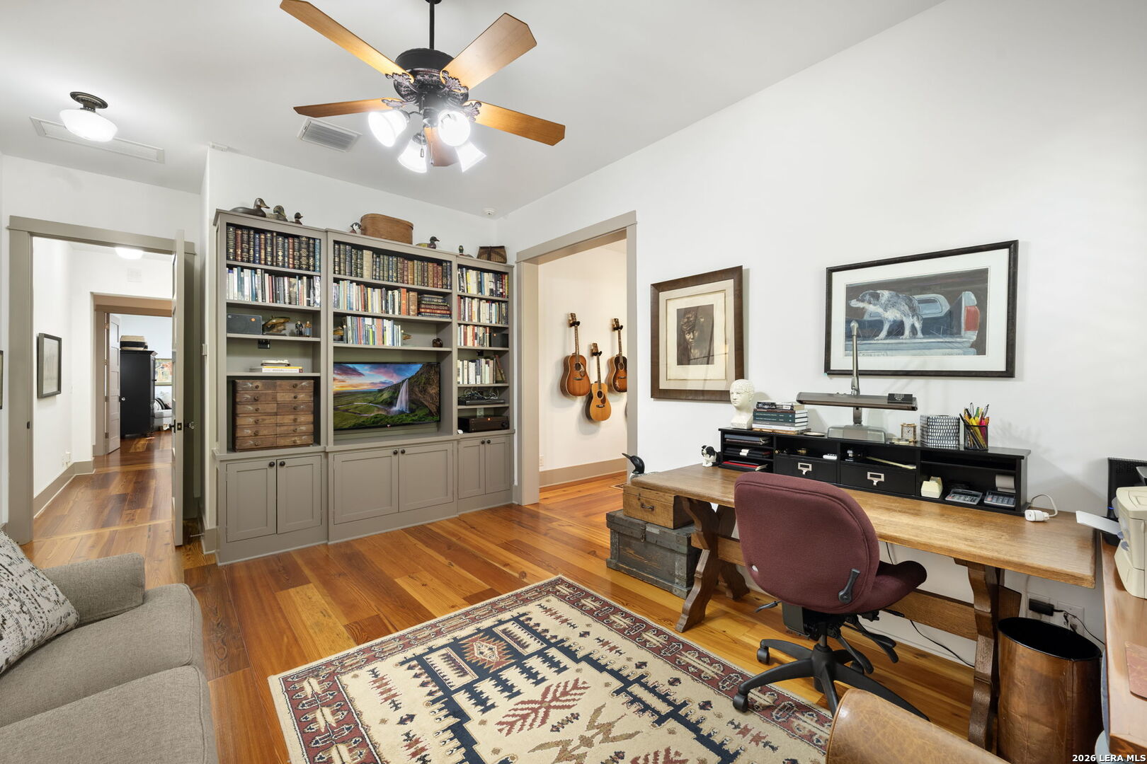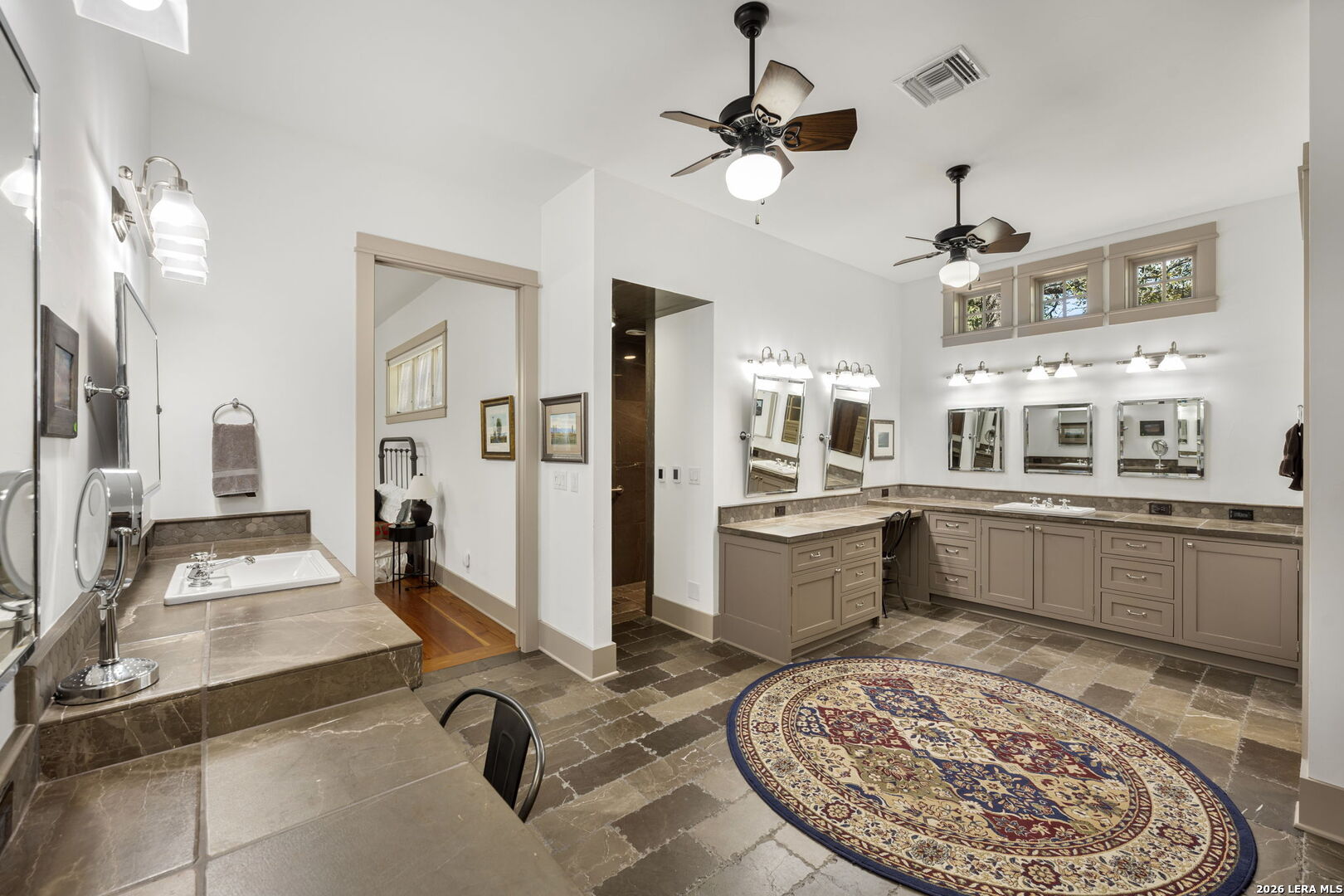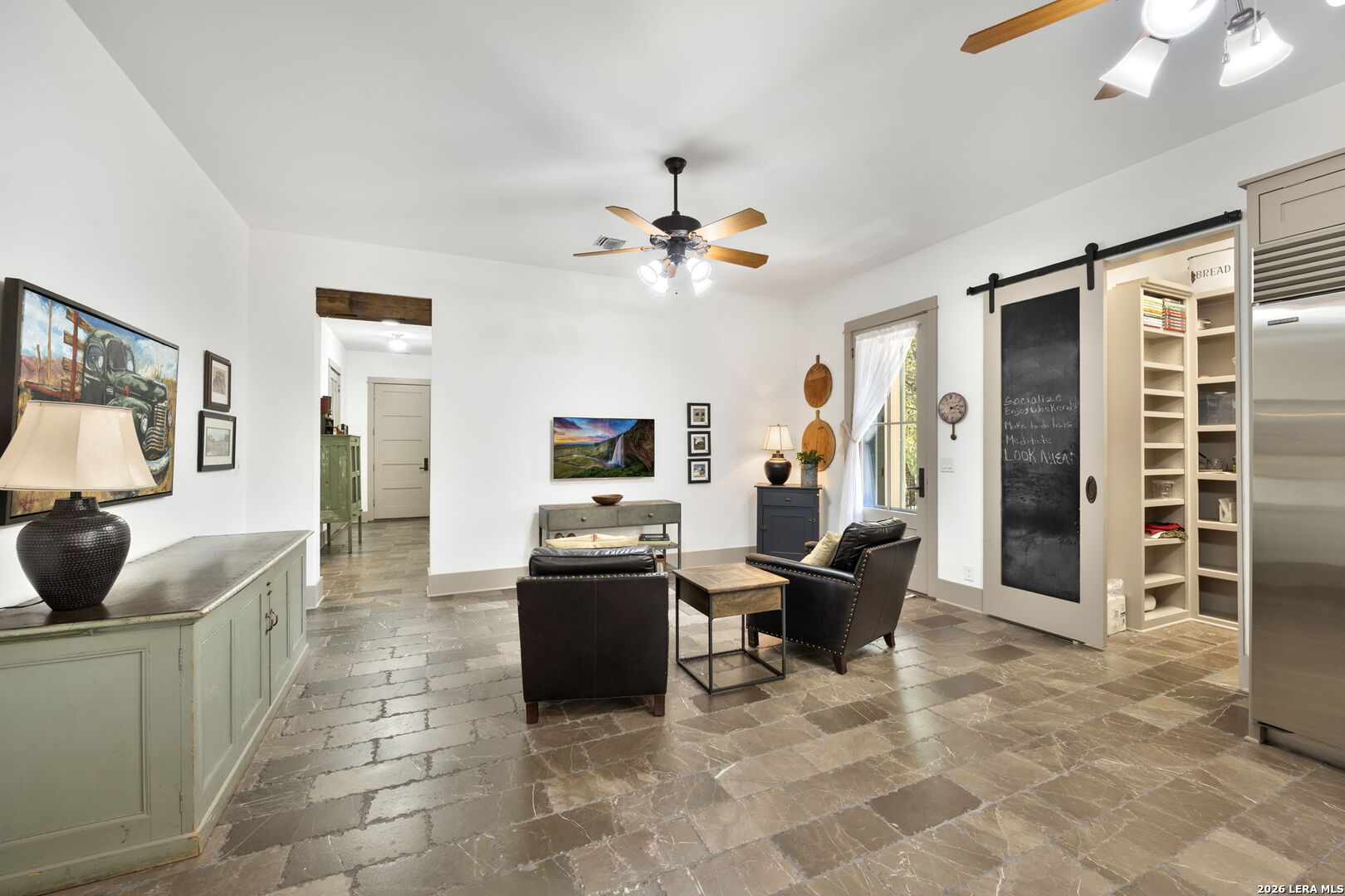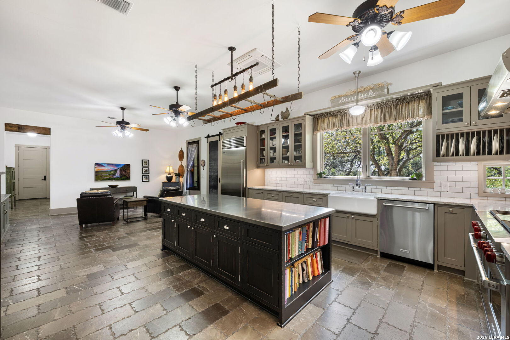 Welcome to a stunning two-story estate nestled within the prestigious, 24/7 guard-gated community of Inverness-one of San Antonio's most sought-after neighborhoods, known for its privacy, security, and luxury homes. This beautifully designed residence offers approximately 4,397 square feet of refined living space, featuring a striking blend of stucco, stone, and rock exterior that delivers timeless curb appeal. Inside, you'll find an exceptional layout with 3 spacious bedrooms, 2.5 baths, and a thoughtfully designed floor plan ideal for both everyday living and entertaining. The kitchen is a standout feature of the home, blending warmth, character, and functionality. It offers abundant custom cabinetry, a large center island with additional storage, and a professional-style stainless steel appliance package, including a built-in refrigerator and high end stainless steel range with vent hood. Thoughtful details such as glass-front cabinets, decorative lighting, and a unique overhead pot rack enhance both style and practicality, making this kitchen as inviting as it is functional. The primary suite is conveniently located on the main level, offering comfort, convenience, and privacy, while the upper level provides additional bedrooms and flexible living space. The home also includes two dedicated office spaces, perfect for remote work or study, an exercise room, a formal dining room, an inviting living room, and a bright sunroom filled with natural light. Step outside to a beautifully landscaped backyard surrounded by mature trees, offering both privacy and shade. This outdoor space creates a peaceful retreat-perfect for relaxing evenings, weekend BBQs, or entertaining family and friends in a serene setting. Ideally situated near premier shopping, dining, desirable NEISD schools, the Medical Center, and Phil Hardberger Park, this home provides easy access to major highways while maintaining the peace and security of an upscale gated community. Schedule your private showing today!