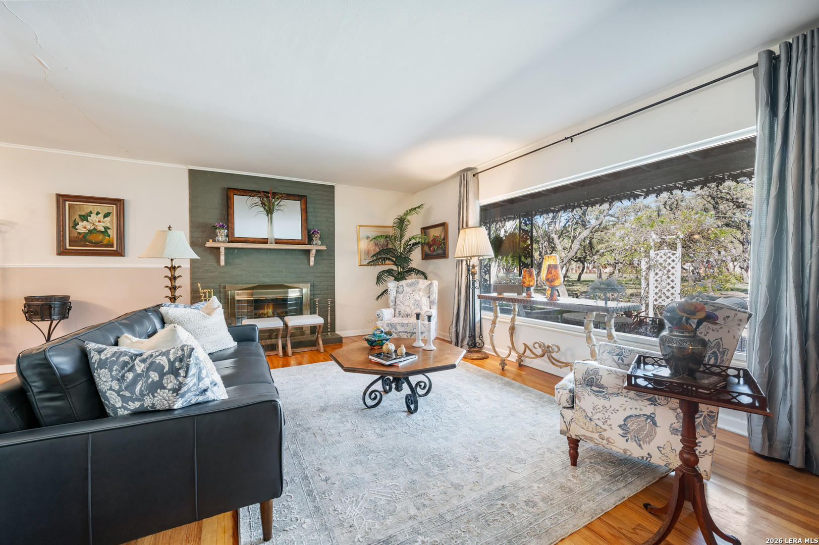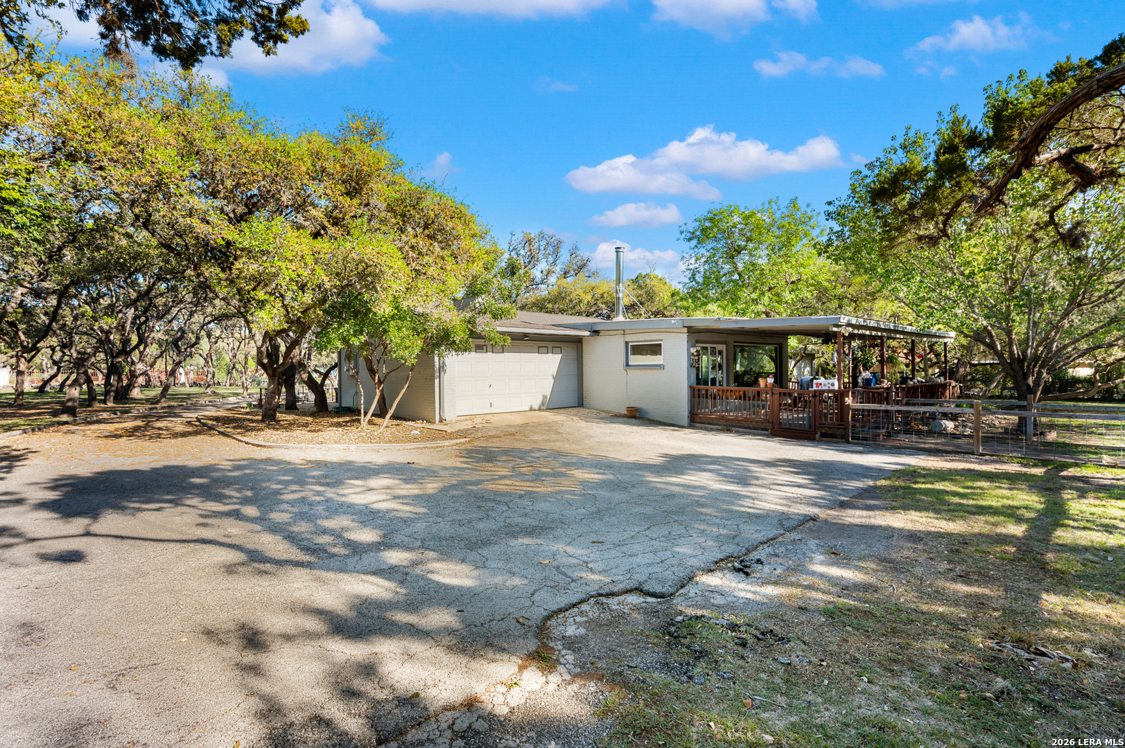 Welcome to a truly rare find-where city convenience meets peaceful, country-style living. Nestled on 1.14 acres surrounded by mature trees, this beautifully updated one-story home offers privacy, space, and charm you simply won't find every day. Step inside to an open-concept layout filled with natural light, highlighted by oversized picture windows that bring the outdoors in. With two spacious living areas-each featuring its own cozy wood-burning fireplace-you'll have the perfect setting for both relaxing nights and entertaining guests. The fully remodeled kitchen is a standout, designed with custom cabinetry, granite countertops, a stylish tile backsplash, a farmhouse sink, and a one-of-a-kind built-in coffee bar that stays with the home. A walk-in pantry and large picture window complete the space, blending function with beauty. The primary suite is a retreat of its own, featuring a newly renovated spa-like bathroom with a large walk-in shower, double vanity, and an expansive custom walk-in closet that conveniently connects to the laundry room-thoughtfully designed for everyday ease. Outdoors, enjoy your own private oasis with an oversized covered patio and deck, perfect for soaking in the peaceful surroundings. The property also includes two large storage sheds, and a dedicated dog run just off the porch. Additional upgrades include all - new Pella windows, brand new HCAV, 2018 Roof and recent renovations to the kitchen, primary bath, and closet/laundry space. The owner next door will be putting up a new fence on the right side of the home. Opportunities like this don't come around often-acreage, updates, and location all in one. Schedule your private showing today and experience everything this exceptional property has to offer!