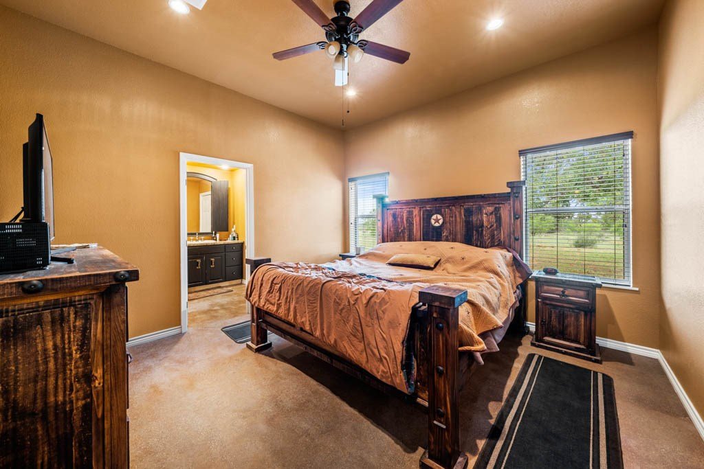 Welcome to Bar D Ranch—a hunting property ideally situated just north of Richland Springs in scenic San Saba County off County Road 266. This impressive 333 acre ranch boasts gently rolling terrain, wildlife, picturesque hardwoods, and excellent water resources, creating the perfect setting for both outdoor enthusiasts and those seeking tranquility. Highlights include a beautifully finished 2,500 sf, four-bedroom, four-bathroom "barn-dominium," a field for planting food plots, two stocked ponds, several seasonal creeks and one water well. Bar D Ranch is turnkey and ready to welcome its new owners to a property that effortlessly blends convenience, comfort, and adventure. With gently rolling hills, panoramic views, and lush native grasses, this ranch is an outdoor paradise. The high-fenced property offers a well-maintained habitat supporting diverse wildlife such as whitetail deer, blackbuck, addax, fallow, turkey, and dove. Hunting opportunities are plentiful, complemented by strategically placed blinds and feeders that align with the property.