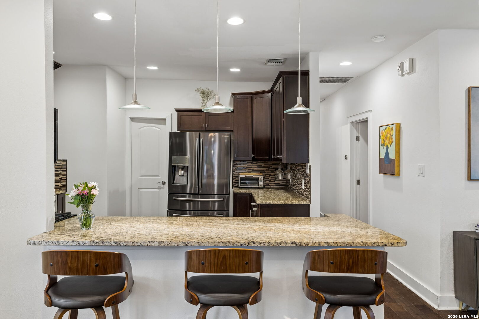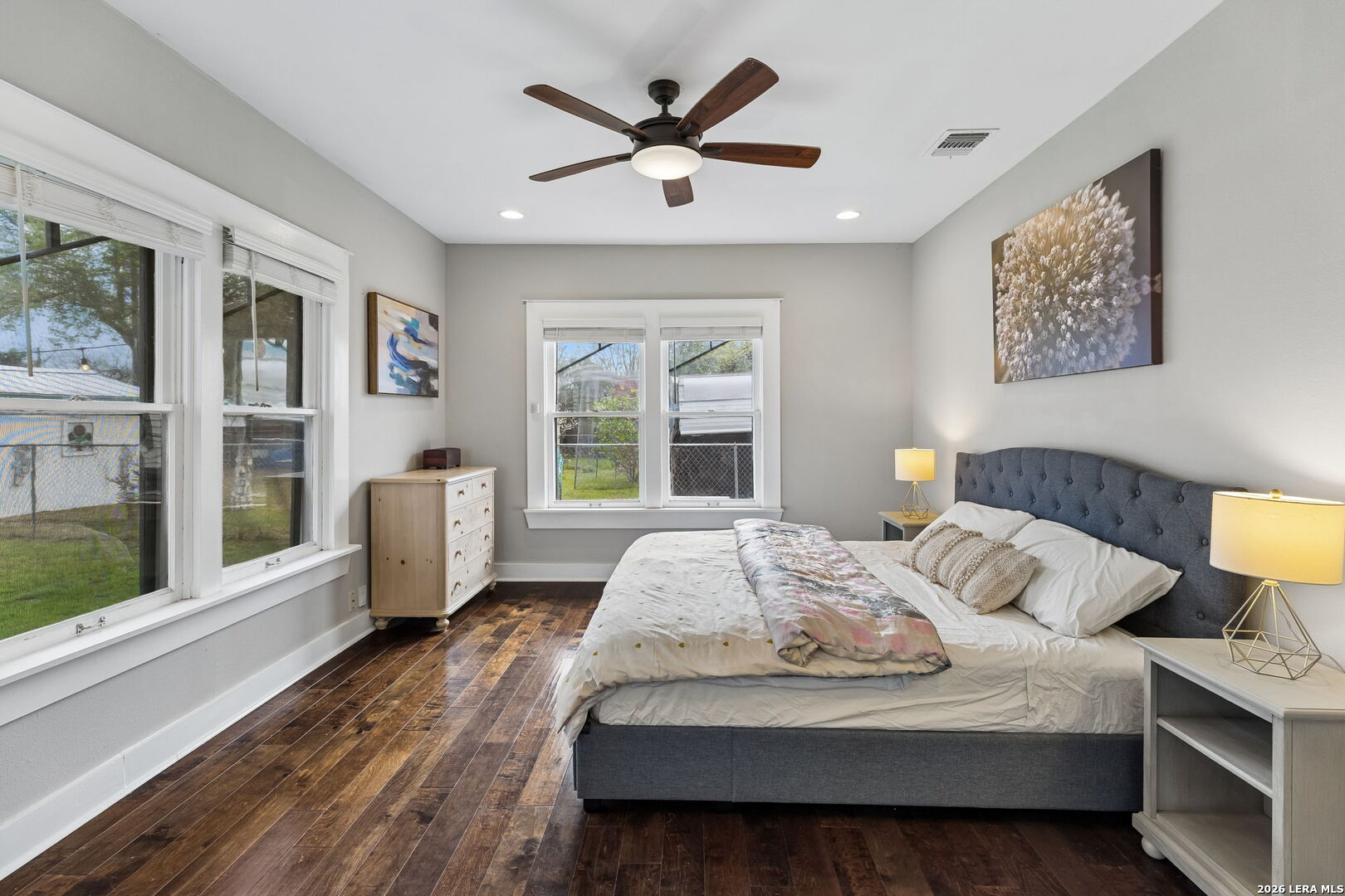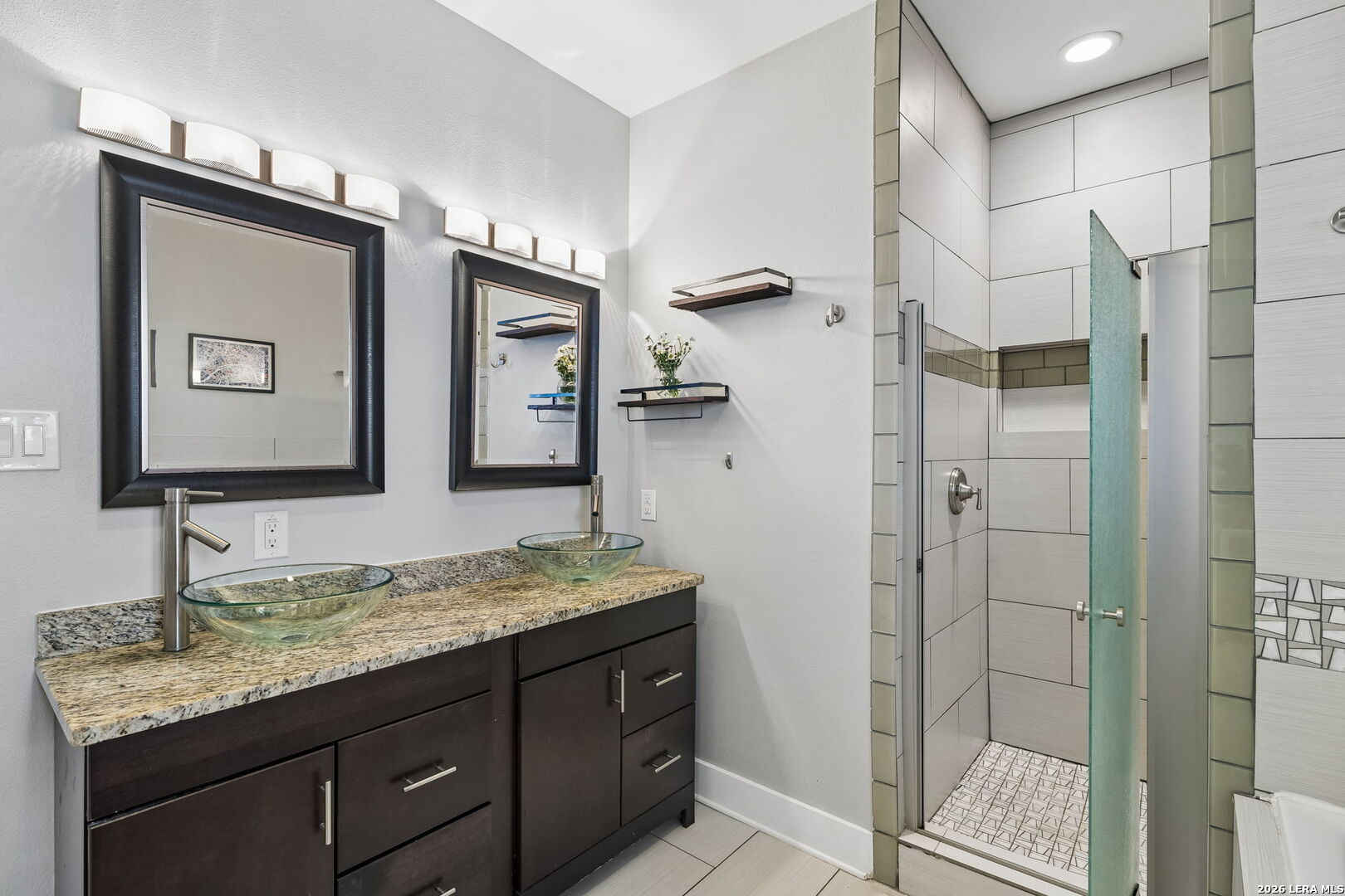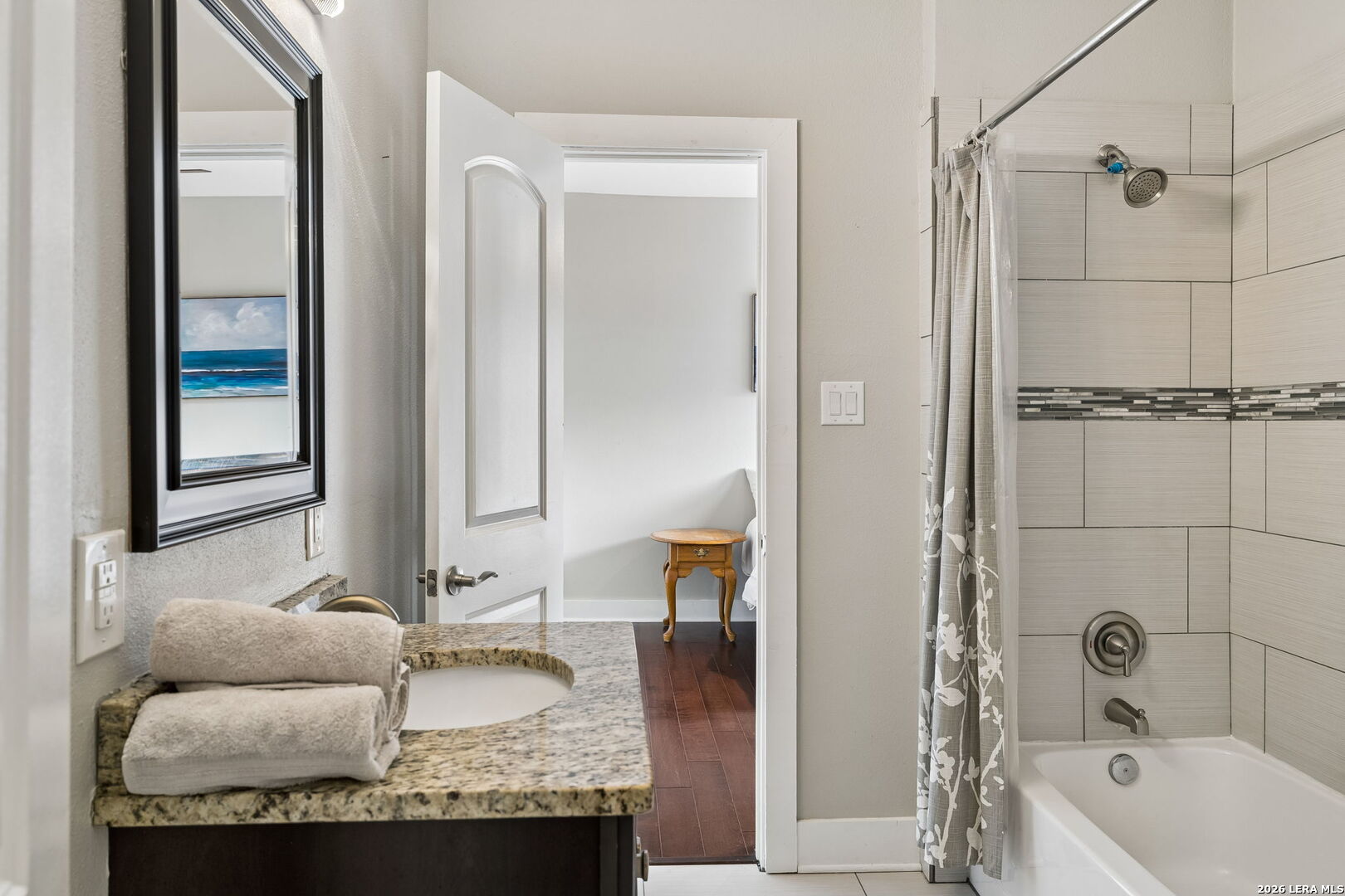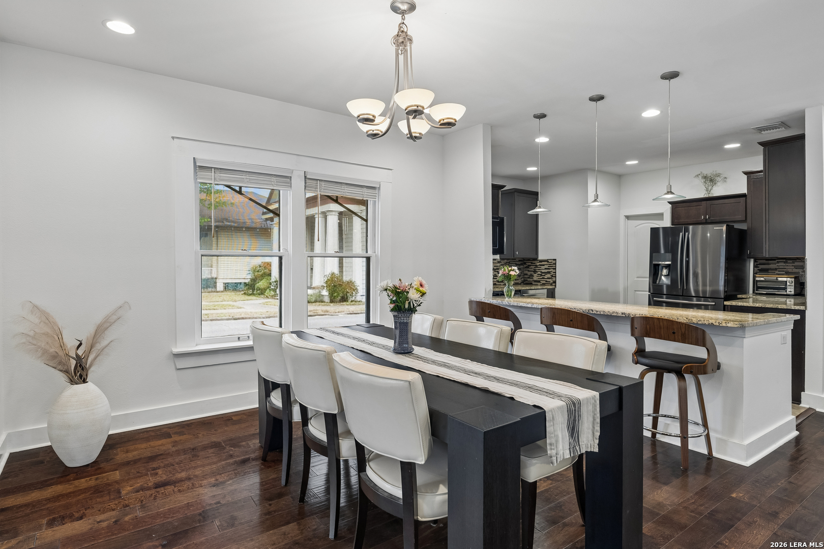 Just steps from the energy of downtown San Antonio, 115 Delaware St sits in a pocket of the city where everything feels within reach, from morning coffee runs to evenings out in Southtown and along the River Walk. A covered front porch welcomes you in, leading to light-filled interiors framed by craftsman-style windows, where the living room anchors the front of the home and flows naturally into the dining area and kitchen beyond, creating an easy, connected layout for everyday living. Updates over time have been made with function in mind, including a custom-built media wall with an electric fireplace, expanded laundry room with barn doors, wood flooring and ceramic tile throughout, updated fixtures, and recently improved major systems including HVAC and electrical. The primary suite offers a quiet retreat with a refreshed bath featuring a Jacuzzi tub and glass shower entry, while the rest of the home maintains a consistent sense of comfort and cohesion. Out back, mature pecan trees shade a deep, private yard with rear gated access, off-street parking, and a detached garage paired with a finished flex space completed in 2020, ideal for a studio, office, or additional living space. Weekends unfold naturally here, with stops at CommonWealth Coffeehouse & Bakery, afternoons exploring nearby favorites, and evenings at Bliss or Rosario's, all just moments away, while even glimpses of the Tower of the Americas from the backyard serve as a reminder of how connected this location truly is. This unique brick bungalow filled with history is thoughtfully improved and positioned in one of the most connected locations in San Antonio, offering a lifestyle that feels both grounded and distinctly urban.