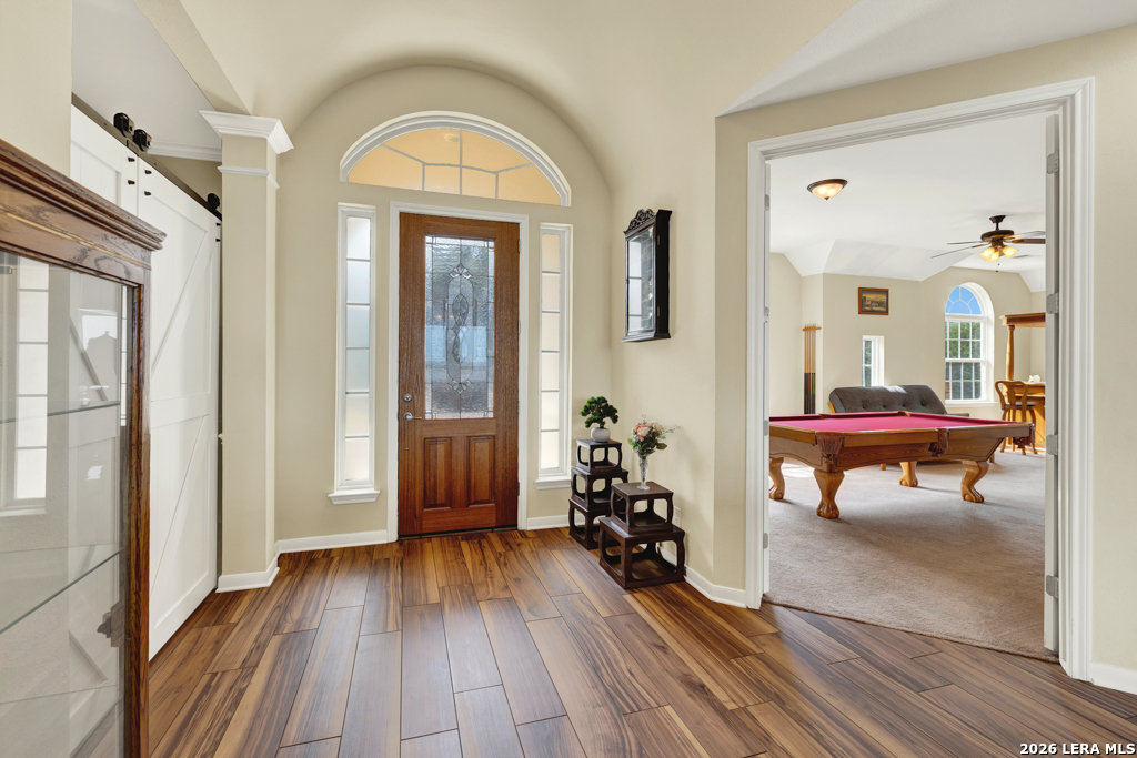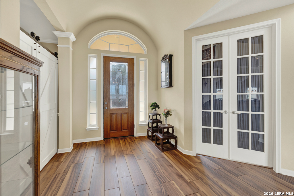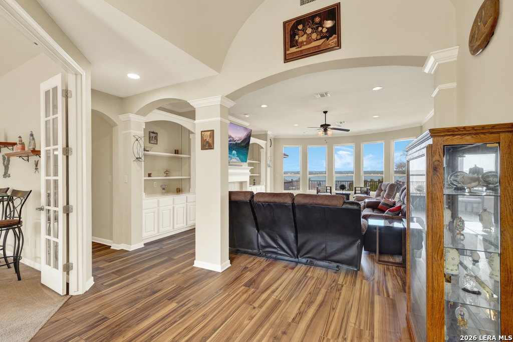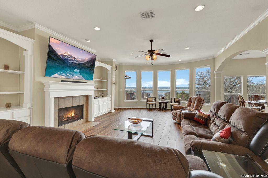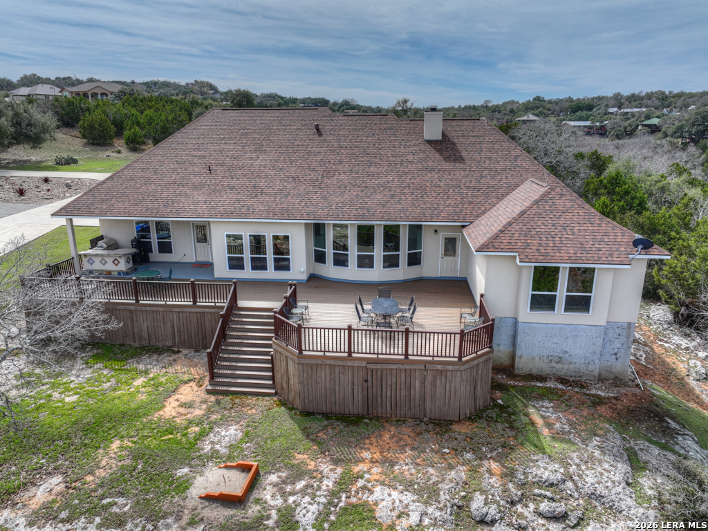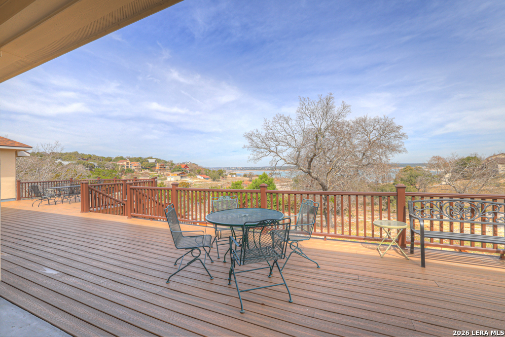 Nestled within a gated waterfront community on the shores of beautiful Canyon Lake, this stunning 3-bedroom, 3-bath custom home offers the perfect blend of elegance, comfort, and lake living. Thoughtfully designed with high ceilings and expansive windows, the home is filled with natural light that highlights the graceful archways, crown molding, and durable wood-look tile flooring throughout. The spacious layout features a formal dining room and an impressive entry room that doubles as a second living area-perfect for entertaining or welcoming guests. The chef's kitchen is both stylish and functional, showcasing granite countertops, rich alder wood cabinetry, a double oven, built-in microwave, butler's pantry, and ample storage. Step outside to enjoy outdoor living at its finest. A huge composite deck provides a low-maintenance space to relax and take in the waterfront surroundings, while the outdoor kitchen-complete with a grill and mini fridge-makes entertaining effortless. Additional highlights include a new roof and fresh exterior paint, ensuring peace of mind and great curb appeal. Located in a secure gated community on Canyon Lake, this exceptional property offers the ideal setting for full-time living or a luxurious weekend retreat with easy access to the water and Hill Country beauty.