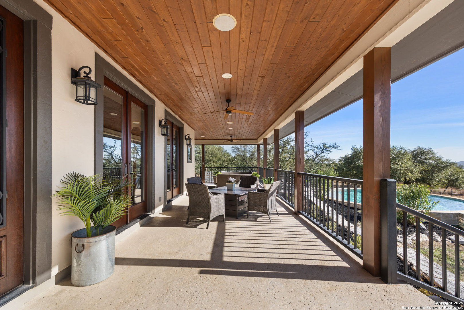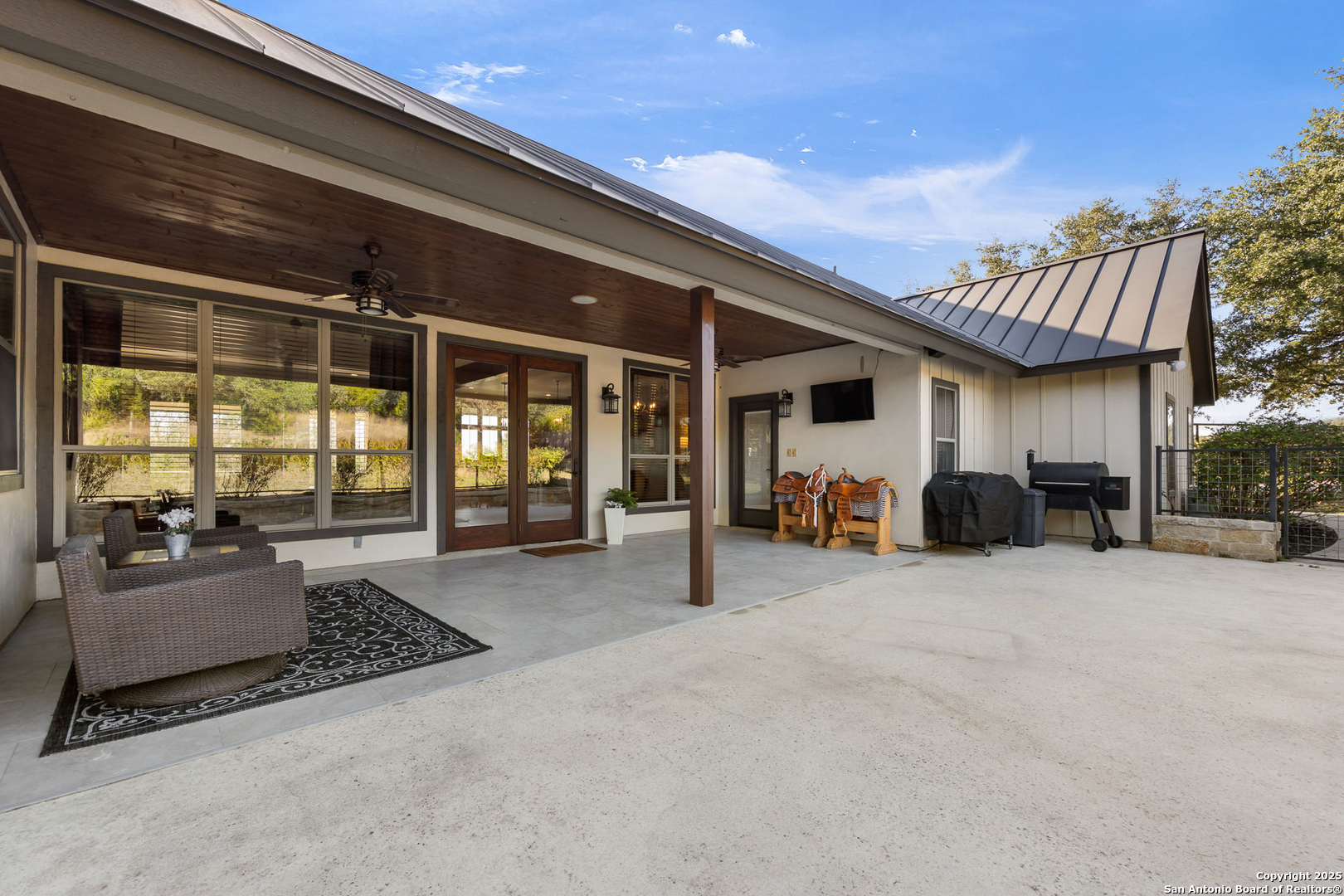 BOERNE ISD || AG EXEMPT || RECENTLY UPDATED || 5 MINS TO DOWNTOWN BOERNE || Perched along one of Boerne's most scenic corridors and within Boerne ISD, 115 Spanish Pass Road offers a rare combination of privacy, proximity, and panoramic Hill Country views. Set on 22.7 acres with an ag exemption in place, this custom estate captures some of the most breathtaking vistas in the Texas Hill Country, all while being just three miles from Downtown Boerne with easy access to I-10. Thoughtfully positioned to take full advantage of its setting, the home's south-facing 45' x 12' front porch invites long mornings and golden evenings overlooking rolling hills and open sky. With 1,500 square feet of total patio and porch space, indoor-outdoor living is effortless and intentional. The 3,626 square foot custom residence features a split floor plan and open-concept living, dining, and kitchen, recently updated to blend refined finishes with everyday comfort. The home offers five bedrooms, three bathrooms, and a dedicated office, providing flexibility for full-time living, hosting, or working from home. In 2025, the home underwent a comprehensive remodel, elevating both form and function. The kitchen was refreshed with Taj Mahal quartzite countertops, a new gas cooktop, and updated fixtures. Bathrooms throughout were modernized, including a fully reimagined primary suite bath with a freestanding tub and custom tile work. New lighting, ceiling fans, fresh interior and exterior paint, and upgraded outdoor hardscaping complete the transformation. Outside, the property is equally well-appointed. A pool, three-car carport plus garage, 100' x 48' barn, and arena create endless opportunities for recreation, hobbies, or livestock. A sprinkler system services all beds and a half-acre yard, while recent improvements-including a standing-seam metal roof, two new HVAC units, spray-foam insulation, updated barn trim, and a new chip-seal road-reflect a commitment to long-term quality and care. With its unmatched views, thoughtful upgrades, and proximity to Boerne's shops, dining, and schools, 115 Spanish Pass Road is a true Hill Country offering-designed for those seeking space, scenery, and an elevated Texas lifestyle.