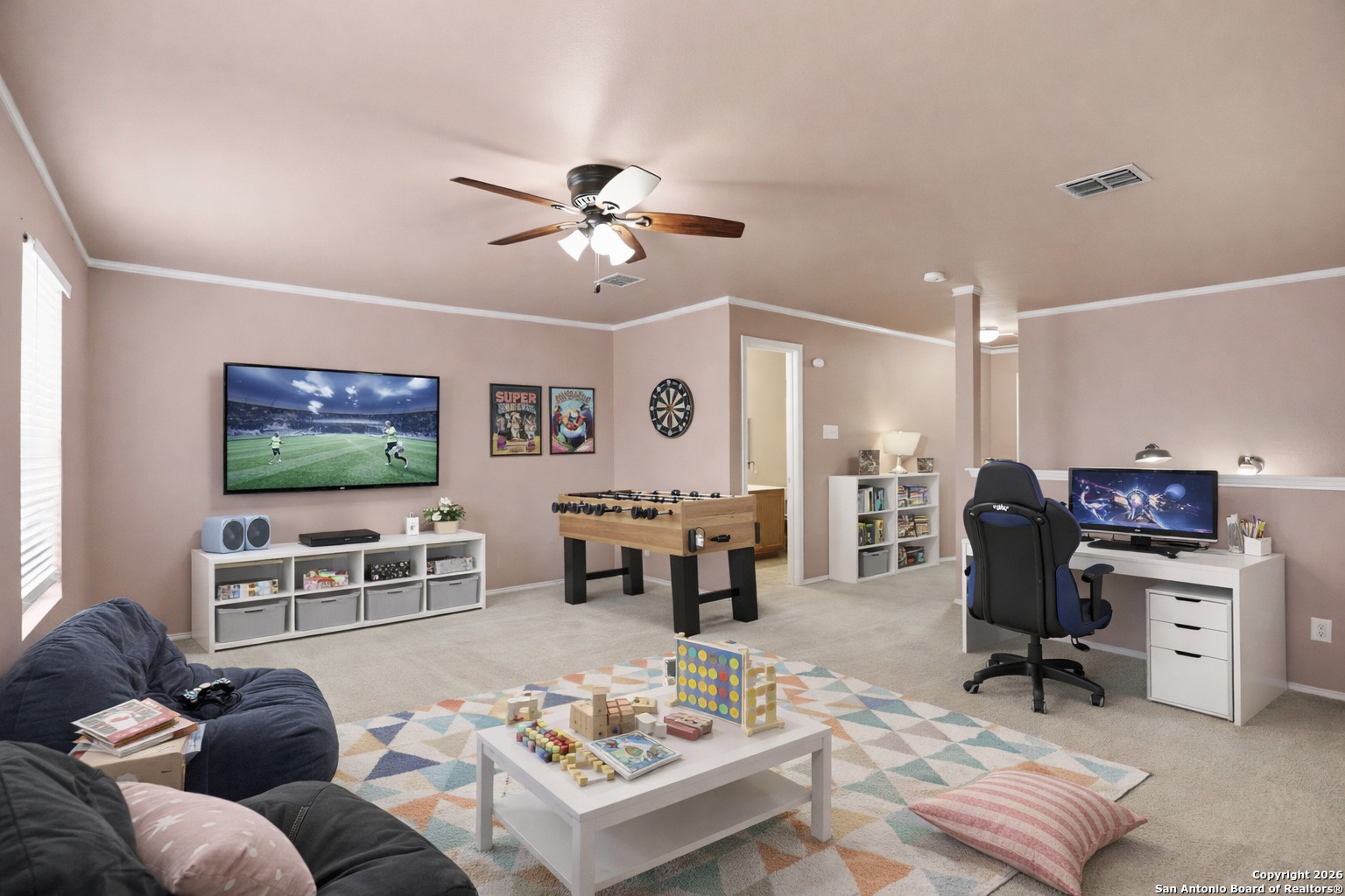 Beautiful kitchen in spacious 3 bed, 2 & 1 half bath home. You will love the huge backyard, perfect for entertaining. Upgraded light fixtures, ceiling fans & recessed lighting. Monticello Ranch sub, close to 1604, Lackland, off Potranco & Talley. Mstr bed has large walk in closet, w/ mstr bath including sep shower & garden tub. Game rm at the landing is the kids perfect place for games & toys. You'll love the neighborhood & this cute home!