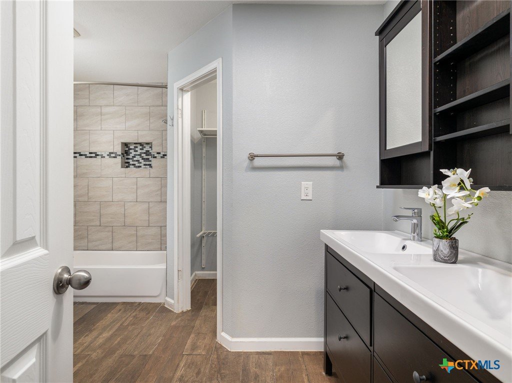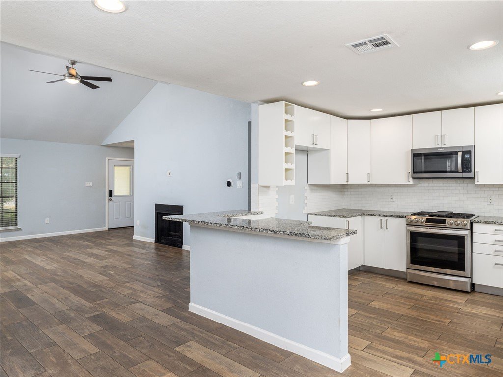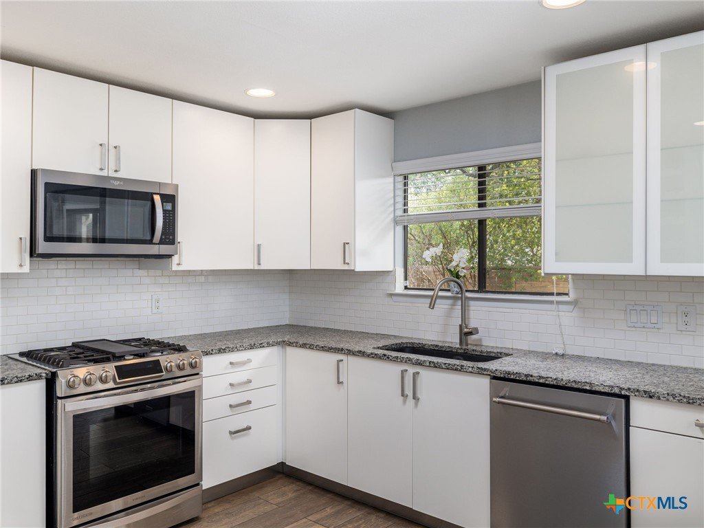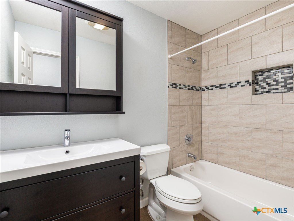 Major updates = turnkey living: HVAC ’21, dishwasher ’22, 8-ft fence ’23, exterior paint ’23, full gutters + guards ’23, dryer exhaust ’23, deck repaired/stained ’24, plus more. Open kitchen-to-living with vaulted ceiling & fireplace, granite, white cabinets, and remodeled baths. Primary suite with flex space and dual closets. Pergola & stained deck create a serene, private outdoor retreat. New 8×12 shed conveys. Minutes to Q2, The Domain, Walnut Creek Park; easy highway access to Downtown.