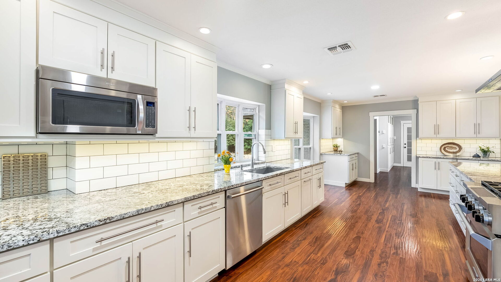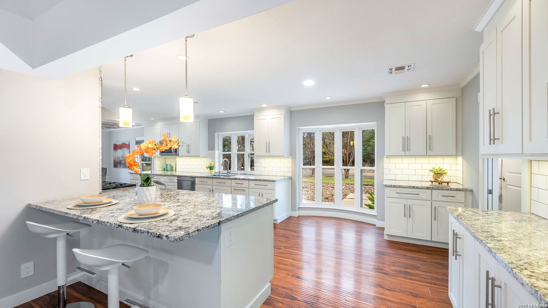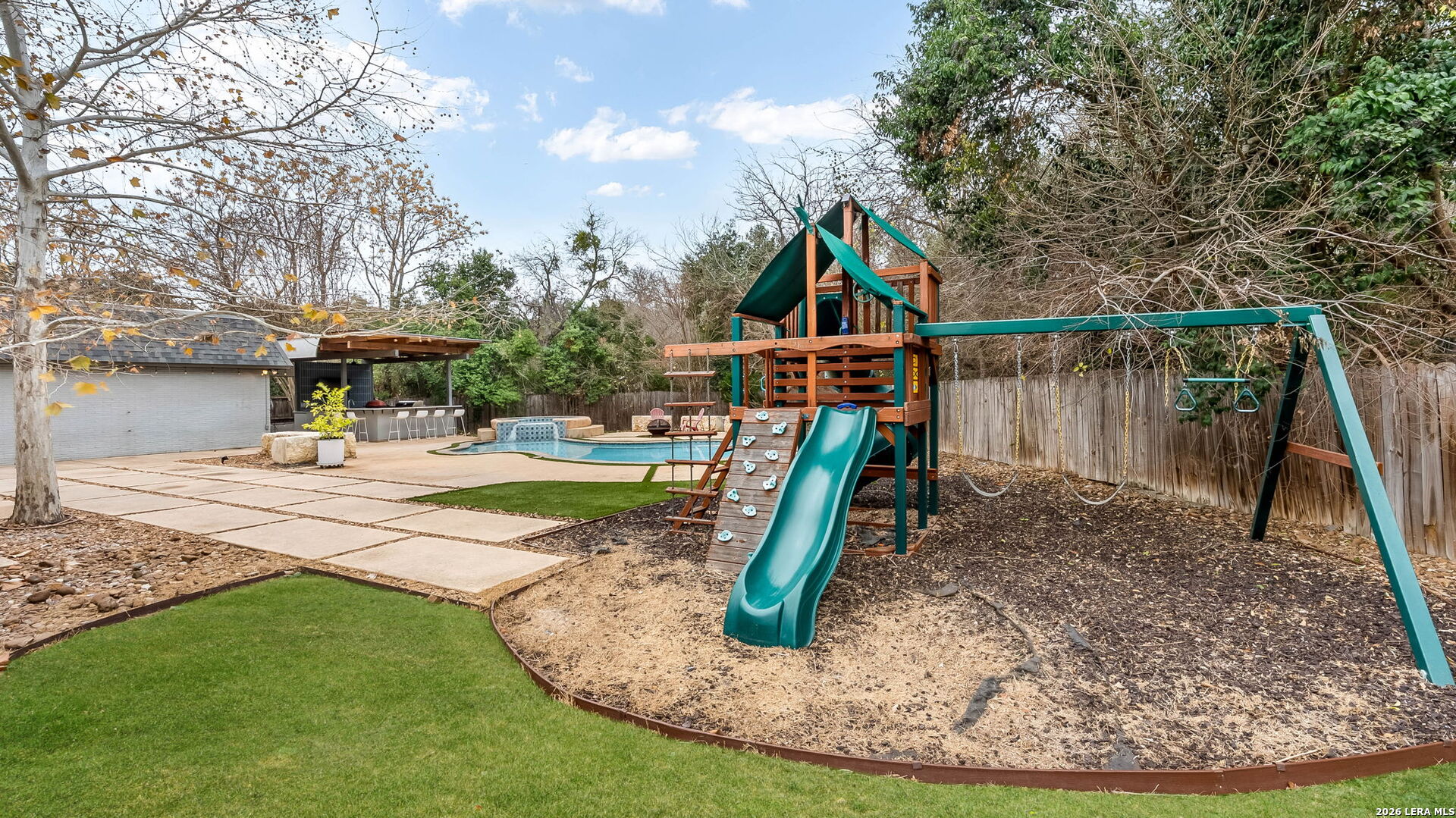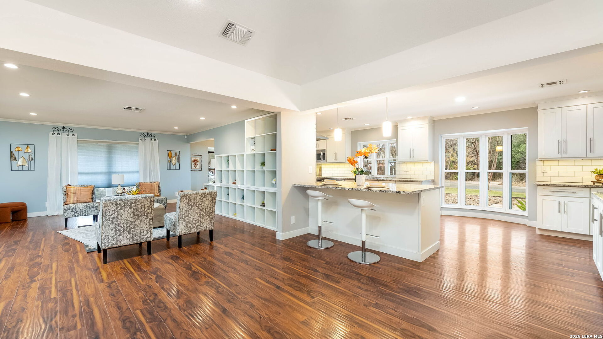 Tucked away on the largest lot in Whispering Oaks and backing directly to a serene greenbelt, 11510 Whisper Circle offers exceptional privacy, thoughtful upgrades and refined indoor outdoor living. This 2,756 square foot residence features four bedrooms and three fully renovated bathrooms with added soundproofing around every bedroom for enhanced comfort and tranquility. At the heart of the home is a true chef's kitchen equipped with a gas range, Sub-Zero refrigerator/freezer and custom counters that extend six inches deeper than standard providing generous prep space and storage. The entire home has been replumbed with PEX and all windows have been replaced, offering peace of mind and modern efficiency. Step outside to a private backyard retreat featuring a pool and spa, plus a well-appointed cabana complete with built-in grill and ceramic smoker grill, ideal for entertaining or quiet evenings at home. The home's unique positioning next to the greenbelt creates a secluded, natural setting while remaining part of one of San Antonio's most well established neighborhoods, Whispering Oaks. Meticulously maintained, landscaped and extensively updated, this property combines luxury, privacy and smart design.