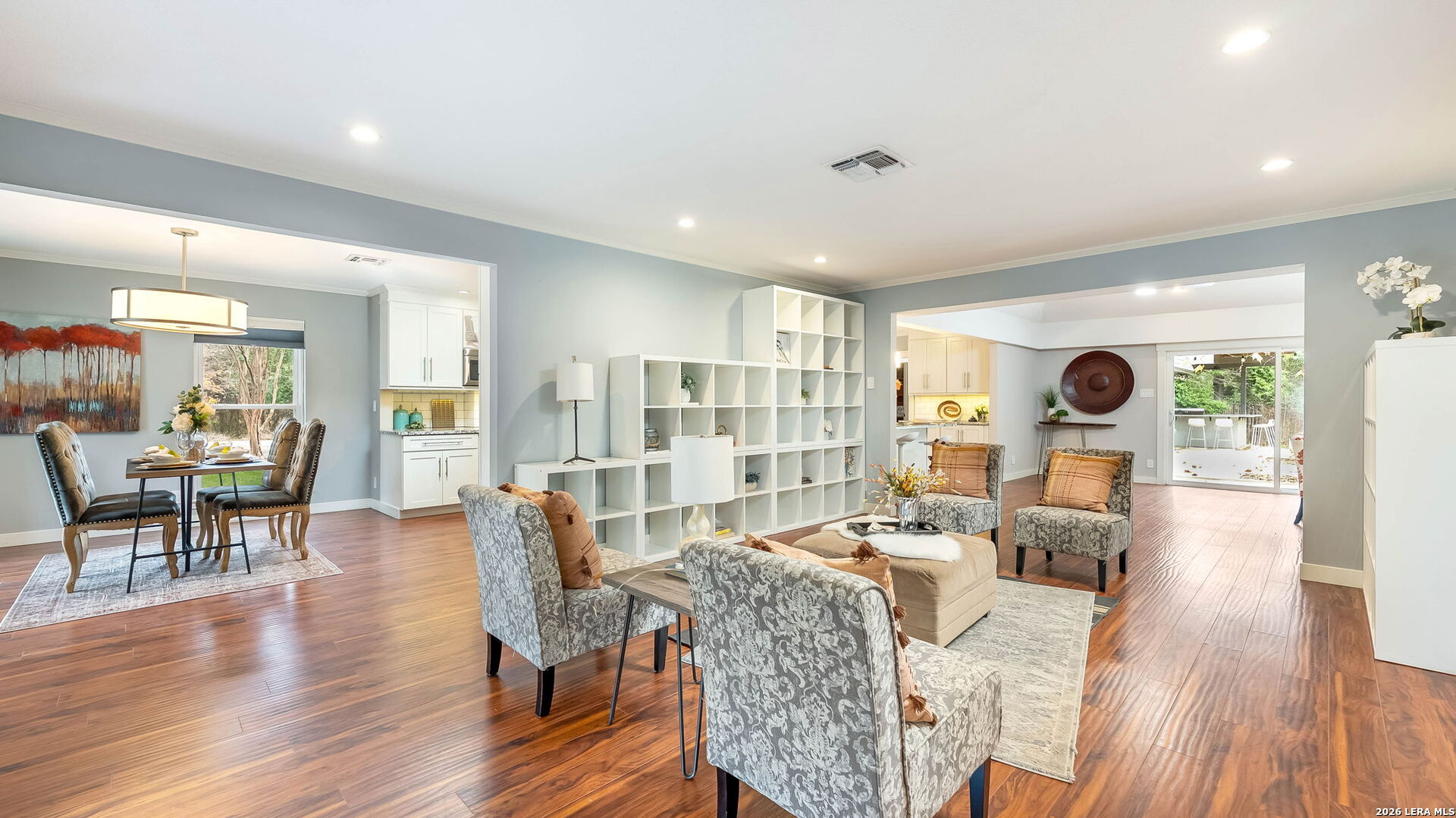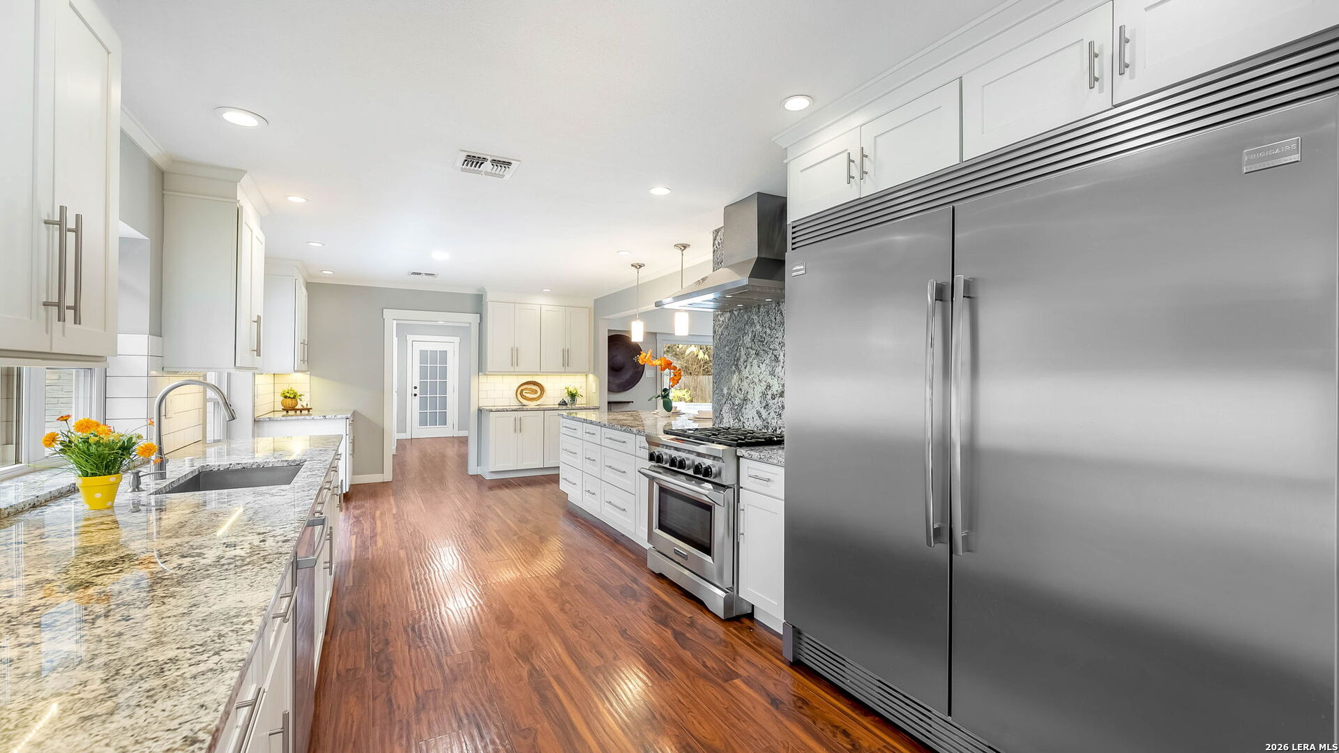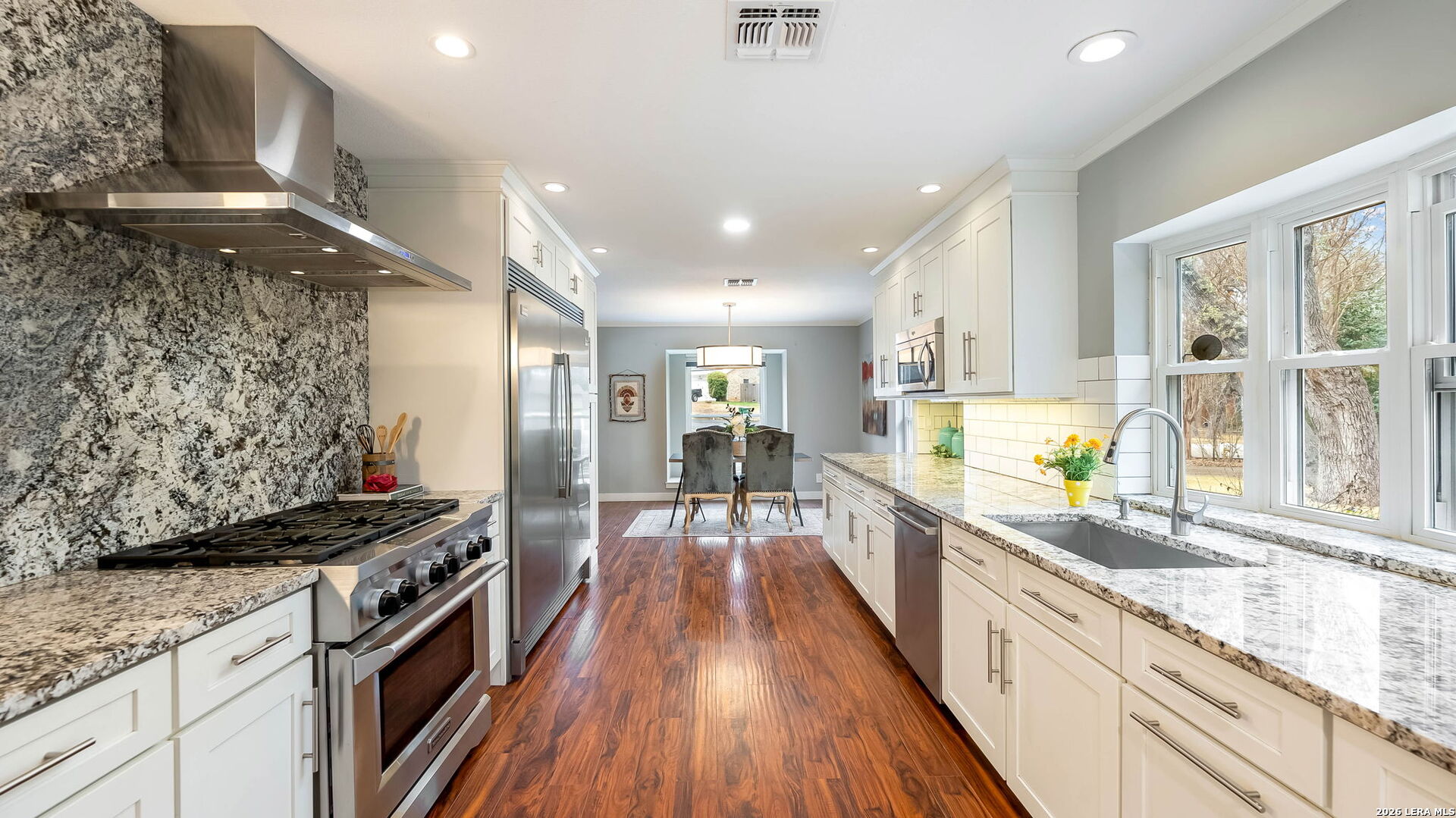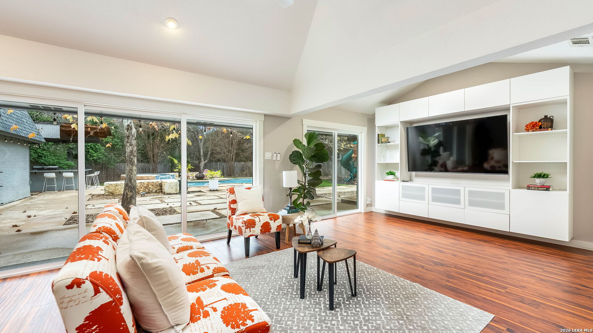 Tucked away on the largest lot in Whispering Oaks and backing directly to a serene greenbelt, 11510 Whisper Circle offers exceptional privacy, thoughtful upgrades and refined indoor outdoor living. This 2,756 square foot residence features four bedrooms and three fully renovated bathrooms with added soundproofing around every bedroom for enhanced comfort and tranquility. At the heart of the home is a true chef's kitchen equipped with a gas range, Sub-Zero refrigerator/freezer and custom counters that extend six inches deeper than standard providing generous prep space and storage. The entire home has been replumbed with PEX and all windows have been replaced, offering peace of mind and modern efficiency. Step outside to a private backyard retreat featuring a pool and spa, plus a well-appointed cabana complete with built-in grill and ceramic smoker grill, ideal for entertaining or quiet evenings at home. The home's unique positioning next to the greenbelt creates a secluded, natural setting while remaining part of one of San Antonio's most well established neighborhoods, Whispering Oaks. Meticulously maintained, landscaped and extensively updated, this property combines luxury, privacy and smart design.