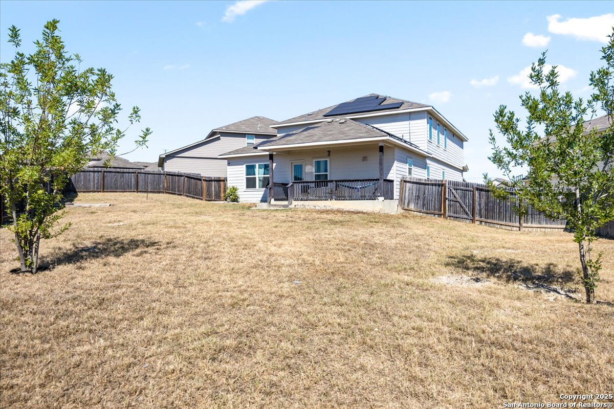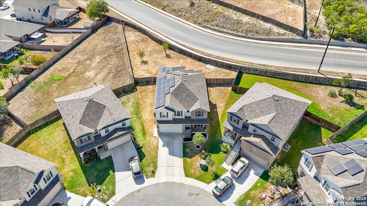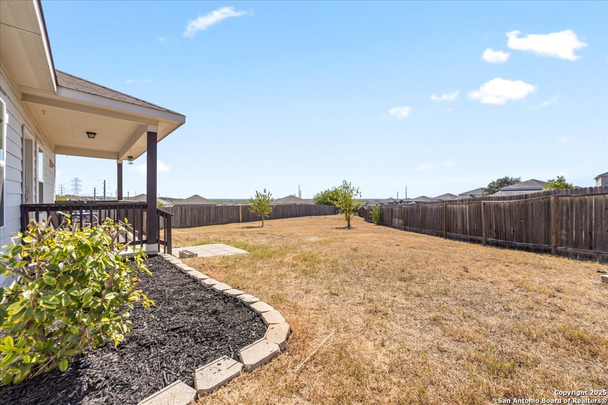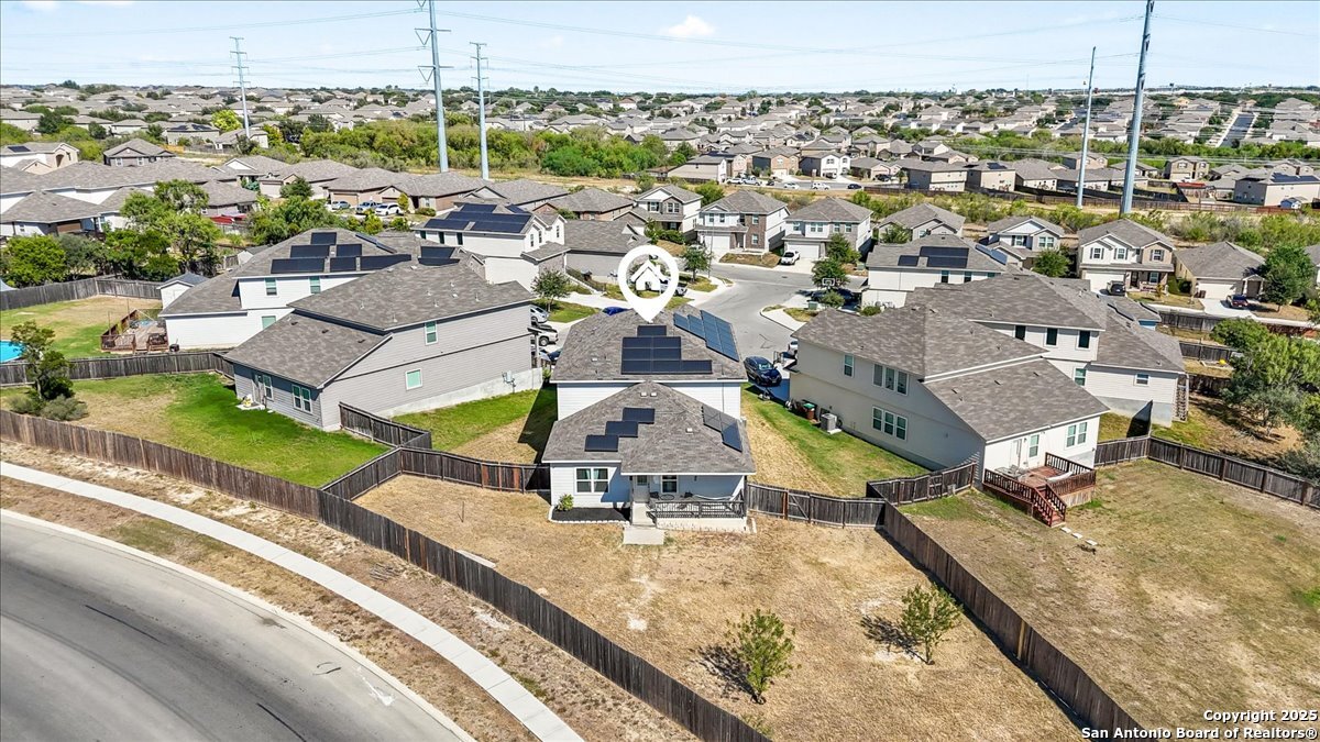 This is it... This is known as the well desired and popular "Concho" Floorplan from Castle Rock! Welcome to this beautifully maintained, move-in ready home in the desirable Laurel Vistas community on San Antonio's fast-growing West Side. Set on an impressive 0.28-acre lot, this property offers the perfect blend of comfort, functionality, and outdoor space for entertaining, gardening, or future upgrades. Step inside to an inviting open-concept layout filled with natural light. The spacious living area connects seamlessly to a modern kitchen featuring granite countertops, stainless steel appliances, and a large island-ideal for family dinners or hosting friends. The primary suite provides a peaceful retreat with a walk-in closet and a private bath complete with dual vanities. Additional bedrooms offer flexibility for a home office, guest room, or growing family needs. An energy-efficient solar panel system helps keep monthly utility costs low while adding long-term value and sustainability. Enjoy your morning coffee on the covered patio or unwind in the evening while overlooking the oversized backyard-large enough for a pool, play area, or outdoor kitchen. Families will appreciate the home's location within a reputable school district, offering quality education and convenient access to nearby schools. Laurel Vistas is known for its safe, family-oriented atmosphere and welcoming community. Residents enjoy excellent neighborhood amenities including a pool, park, and playground, along with quick access to Loop 1604, Highway 90, Lackland AFB, shopping, and dining. Experience the ideal combination of comfort, convenience, and peace of mind in one of San Antonio's most promising neighborhoods. Preferred lender, Network Funding LP, is offering a 1 percent credit toward buyer's closing costs (subject to lender qualification and approval).