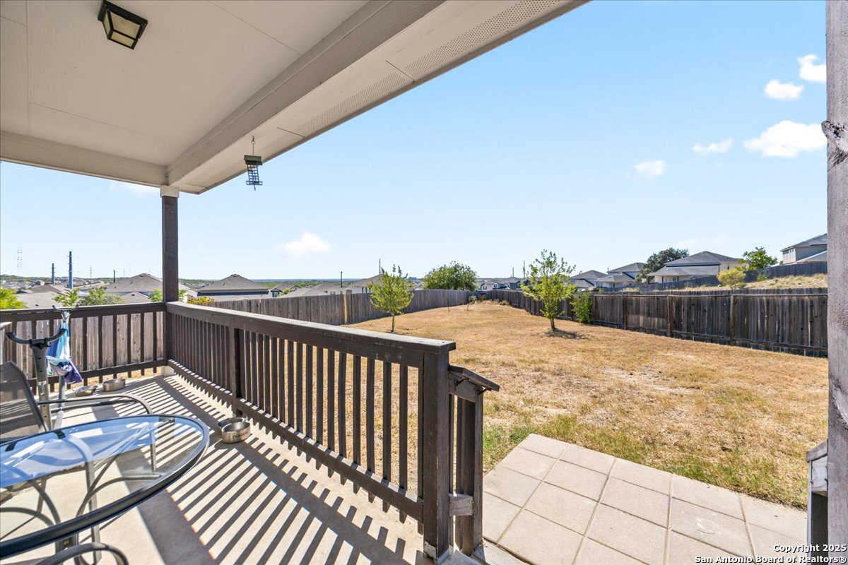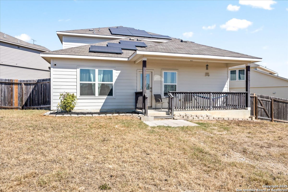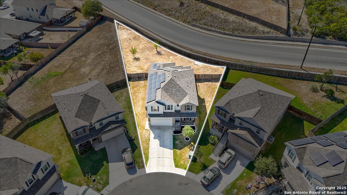 This is it... This is known as the well desired and popular "Concho" Floorplan from Castle Rock! Welcome to this beautifully maintained, move-in ready home in the desirable Laurel Vistas community on San Antonio's fast-growing West Side. Set on an impressive 0.28-acre lot, this property offers the perfect blend of comfort, functionality, and outdoor space for entertaining, gardening, or future upgrades. Step inside to an inviting open-concept layout filled with natural light. The spacious living area connects seamlessly to a modern kitchen featuring granite countertops, stainless steel appliances, and a large island-ideal for family dinners or hosting friends. The primary suite provides a peaceful retreat with a walk-in closet and a private bath complete with dual vanities. Additional bedrooms offer flexibility for a home office, guest room, or growing family needs. An energy-efficient solar panel system helps keep monthly utility costs low while adding long-term value and sustainability. Enjoy your morning coffee on the covered patio or unwind in the evening while overlooking the oversized backyard-large enough for a pool, play area, or outdoor kitchen. Families will appreciate the home's location within a reputable school district, offering quality education and convenient access to nearby schools. Laurel Vistas is known for its safe, family-oriented atmosphere and welcoming community. Residents enjoy excellent neighborhood amenities including a pool, park, and playground, along with quick access to Loop 1604, Highway 90, Lackland AFB, shopping, and dining. Experience the ideal combination of comfort, convenience, and peace of mind in one of San Antonio's most promising neighborhoods. Preferred lender, Network Funding LP, is offering a 1 percent credit toward buyer's closing costs (subject to lender qualification and approval).