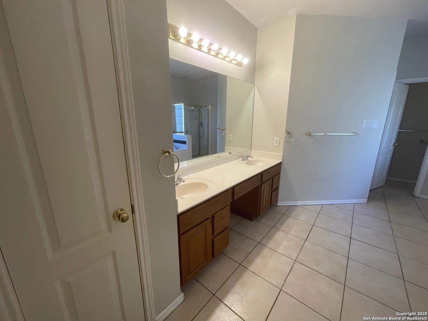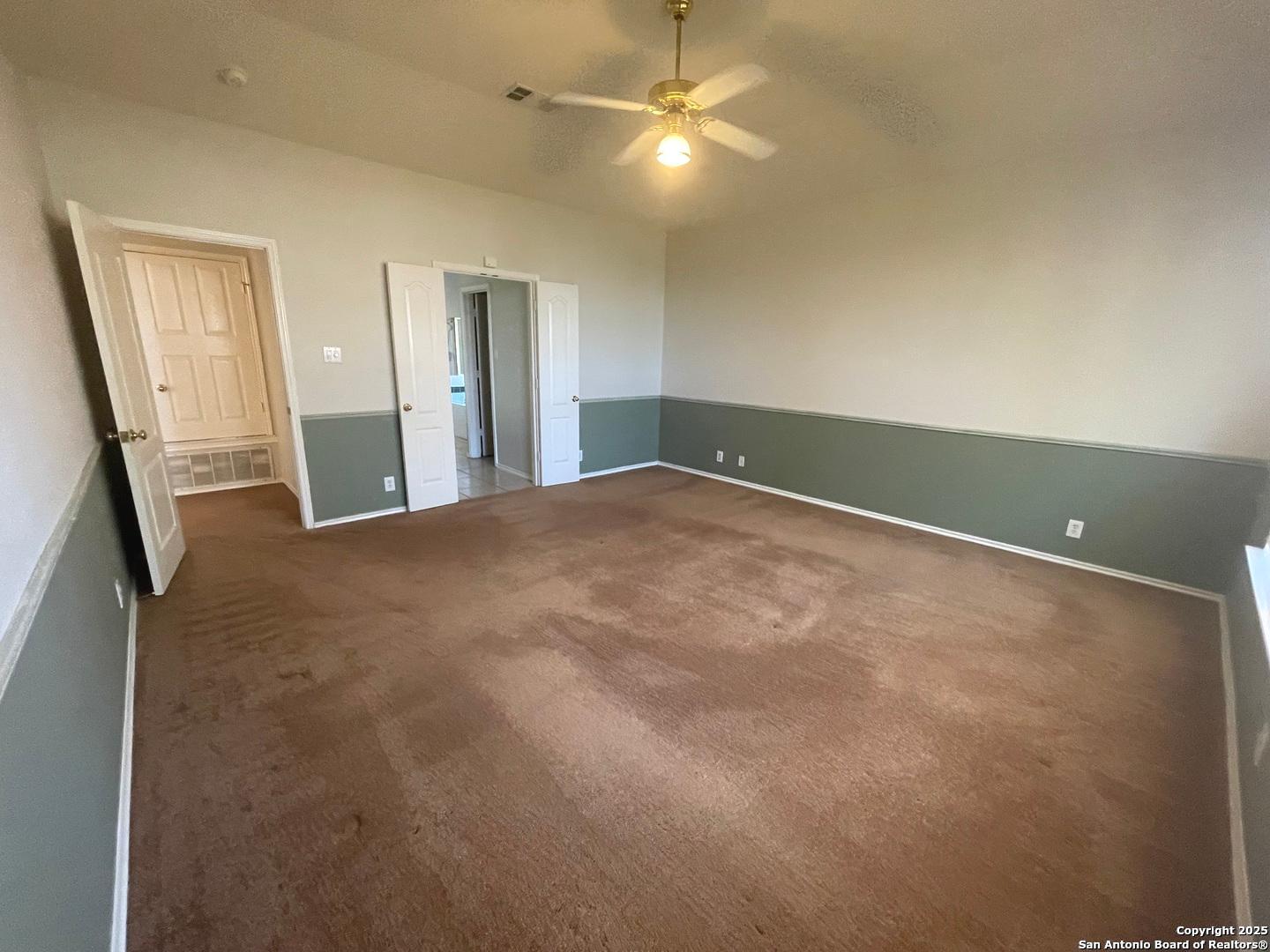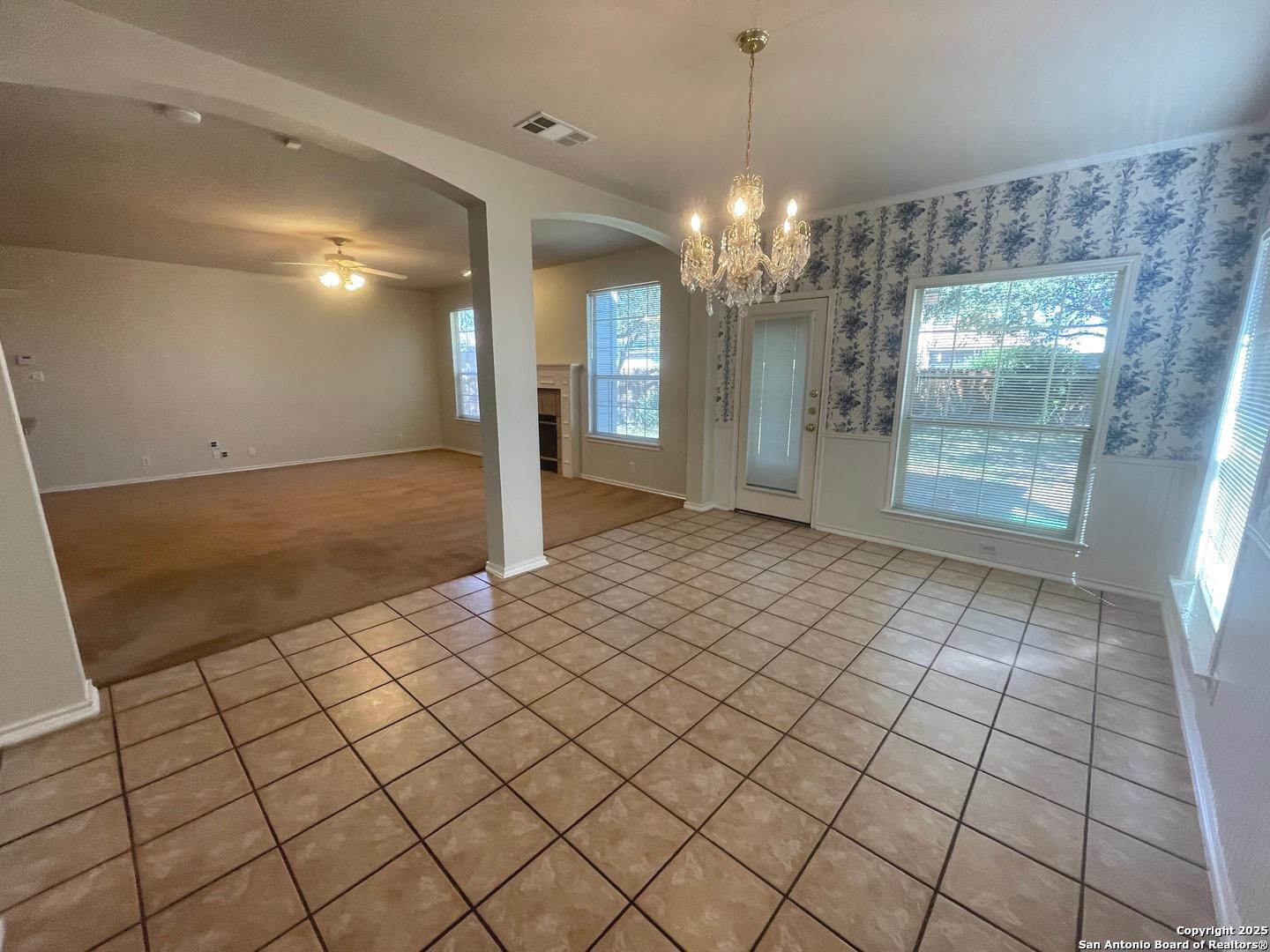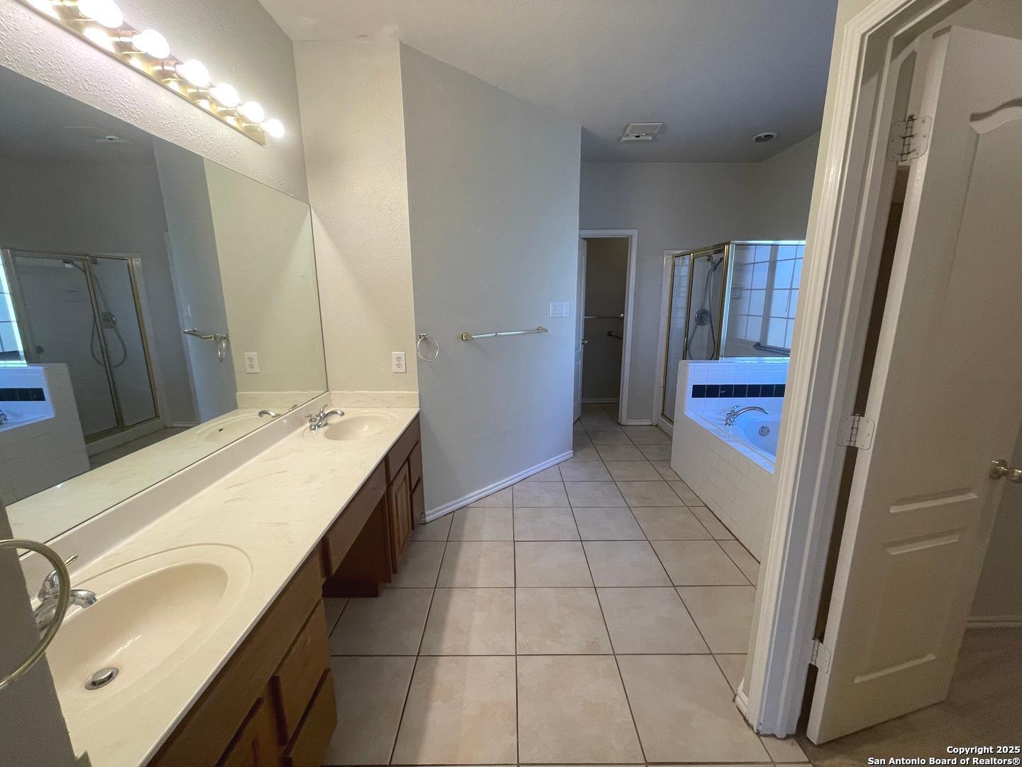 Charming four-bedroom, single-story home available for rent in the desirable Westcreek neighborhood. This spacious residence features two distinct eating areas, perfect for both casual meals and formal dining. The thoughtful floor plan offers a private master suite located on one side of the home, separate from the other three bedrooms, ensuring privacy and tranquility. The master bathroom is particularly generous, boasting two walk-in closets for ample storage. The kitchen is well-appointed with an island, providing additional counter space and a built-in desk, ideal for managing household tasks or working from home.