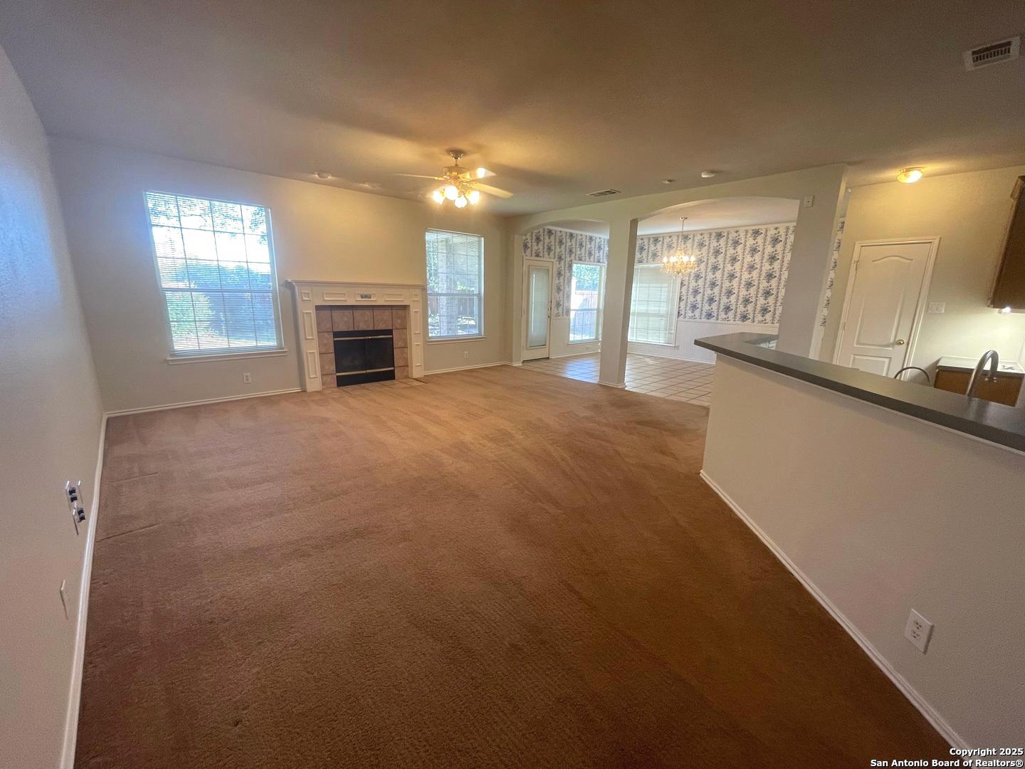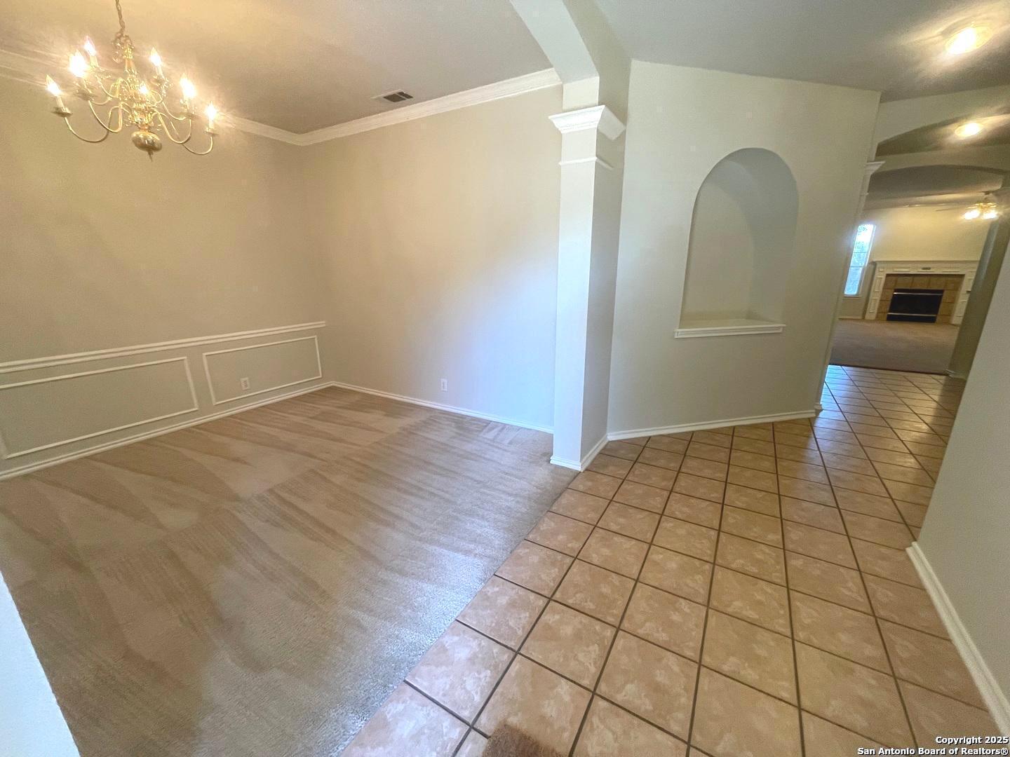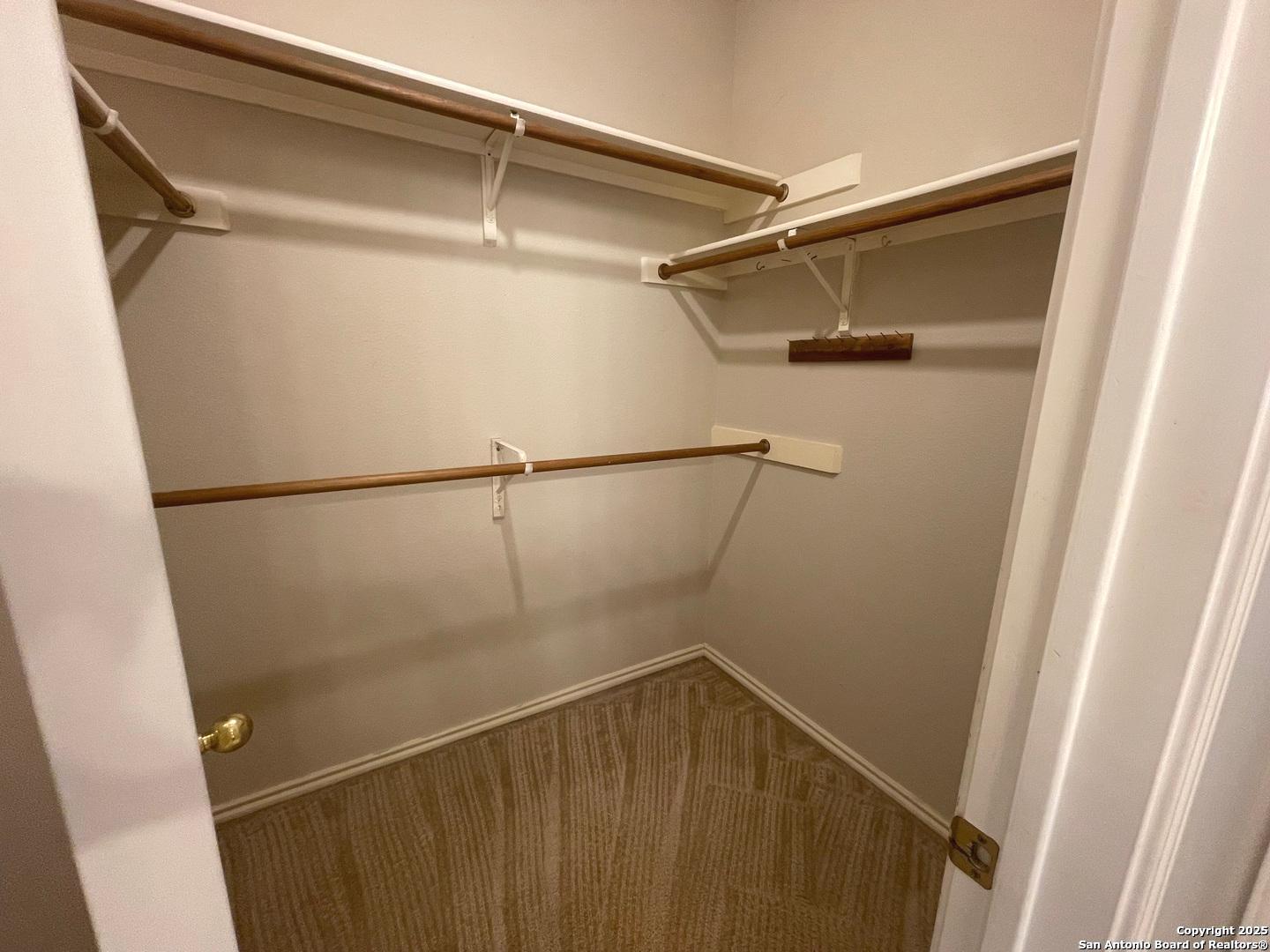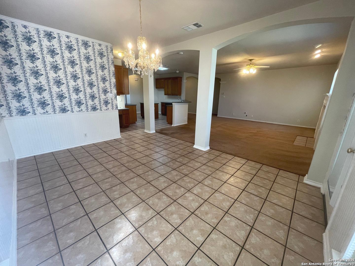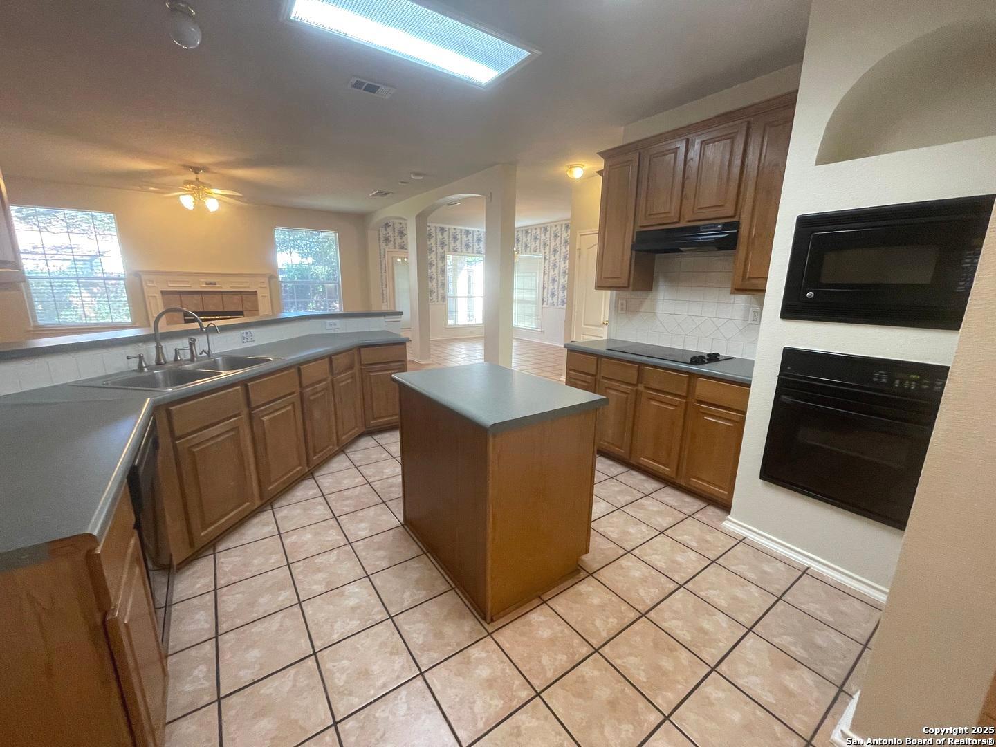 Charming four-bedroom, single-story home available for rent in the desirable Westcreek neighborhood. This spacious residence features two distinct eating areas, perfect for both casual meals and formal dining. The thoughtful floor plan offers a private master suite located on one side of the home, separate from the other three bedrooms, ensuring privacy and tranquility. The master bathroom is particularly generous, boasting two walk-in closets for ample storage. The kitchen is well-appointed with an island, providing additional counter space and a built-in desk, ideal for managing household tasks or working from home.