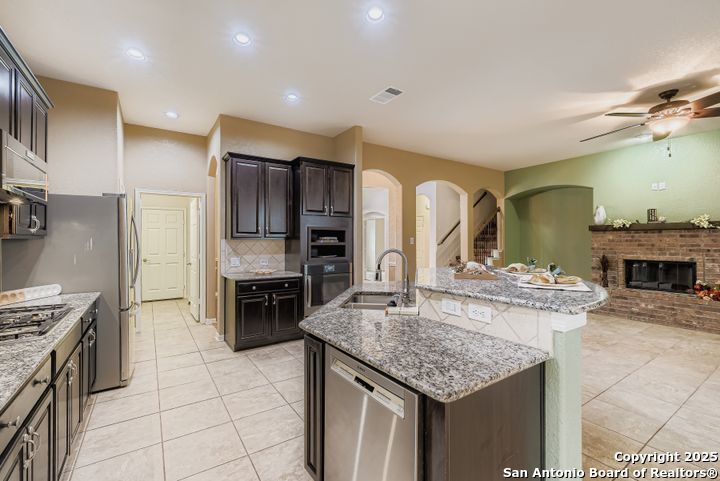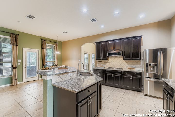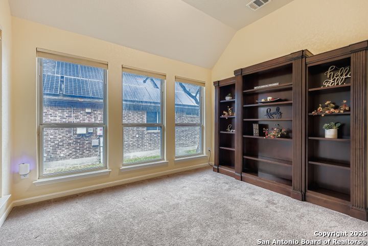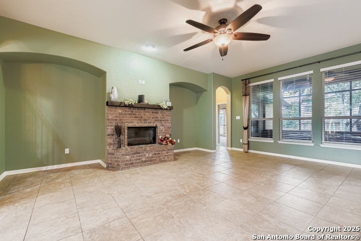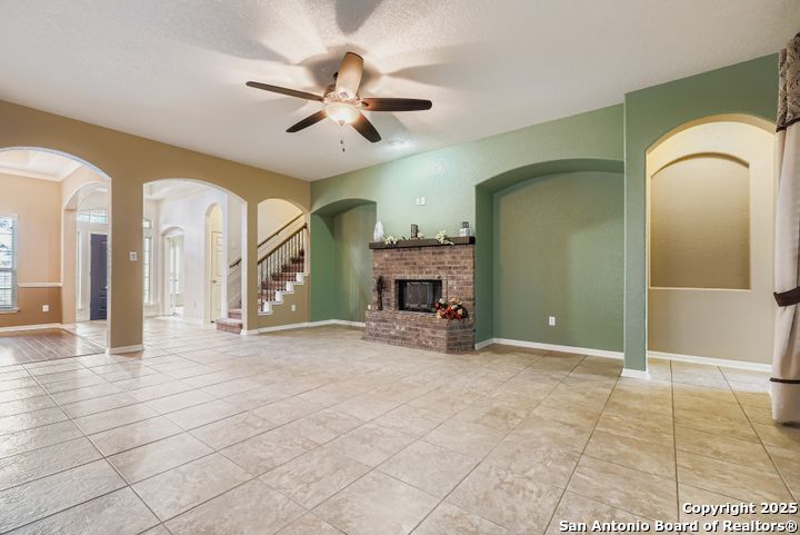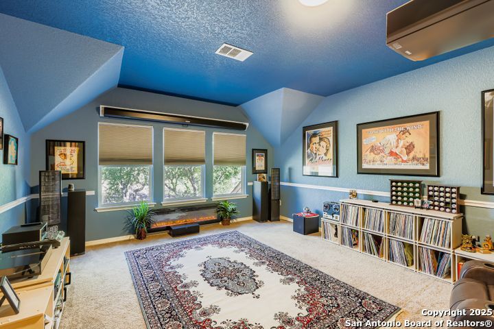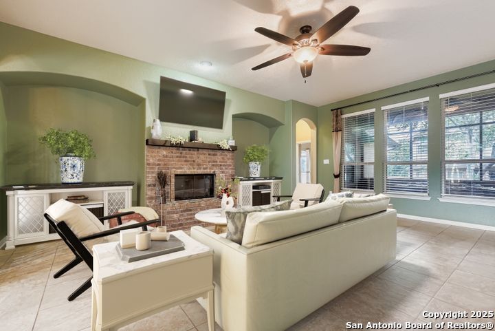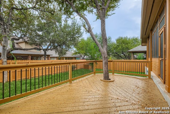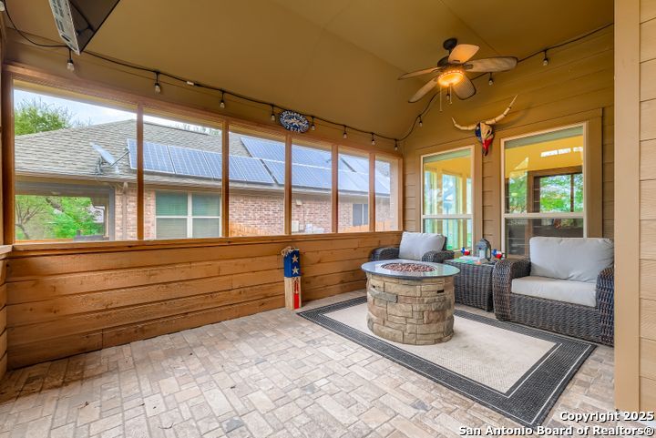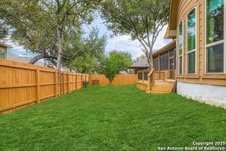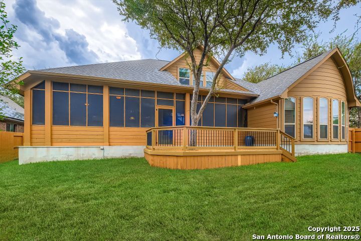 Welcome to 11523 Camp Real Ln, a beautifully maintained 3,350 sq. ft. home set on a serene corner lot with mature trees-including fruit trees, gorgeous landscaping, and a private courtyard entrance. Whole house exterior lighting. Designed for both comfort and versatility, this property offers 4 bedrooms, 2.5 baths, a 3-car tandem garage, a dedicated office, flexible bonus space, and an upstairs game/media room with its own half bath. Inside, the open layout is filled with natural light and enhanced by crown molding and a cozy brick fireplace. The chef's kitchen features granite countertops, stainless steel appliances, a raised breakfast bar, pantry, and sunny breakfast nook, while a formal dining room and screened porch with extended deck make entertaining effortless. The main-floor primary suite overlooks the backyard and includes a spa-inspired bath with a jacuzzi tub, a walk-in shower, dual vanities, and a spacious California closet. Located within Northside ISD and just minutes from Hoffmann Elementary, Briscoe Middle, and Taft High School, this property also offers easy access to parks, shopping, and entertainment. Enjoy nearby Phil Hardberger Park and O.P. Schnabel Park, shopping at Alamo Quarry Market, North Star Mall and La Cantera Shopping, and look forward to new destinations such as Borgfeld Crossing, Alamo Commons, and the Santikos Entertainment expansion. This home truly blends comfort, convenience, and community-a must-see opportunity in one of San Antonio's most desirable areas!