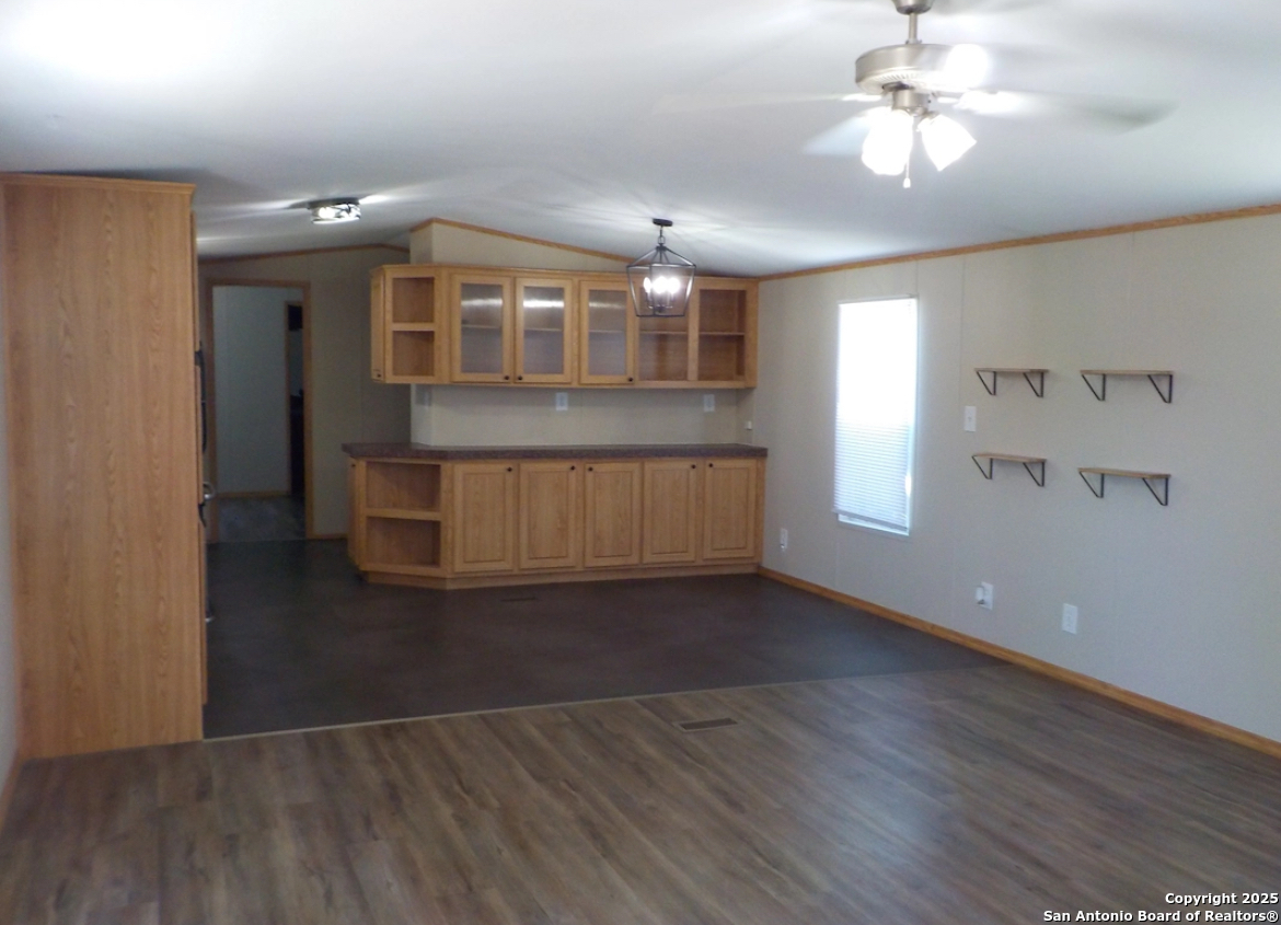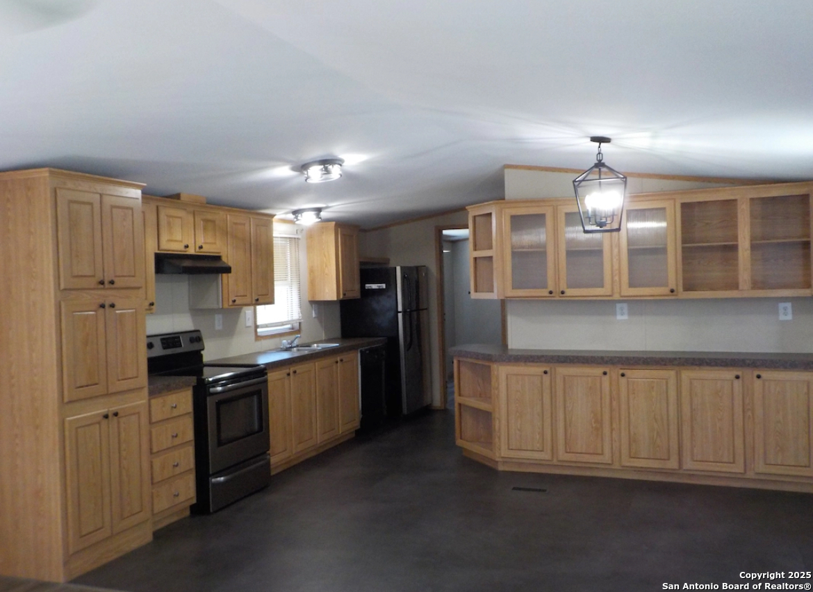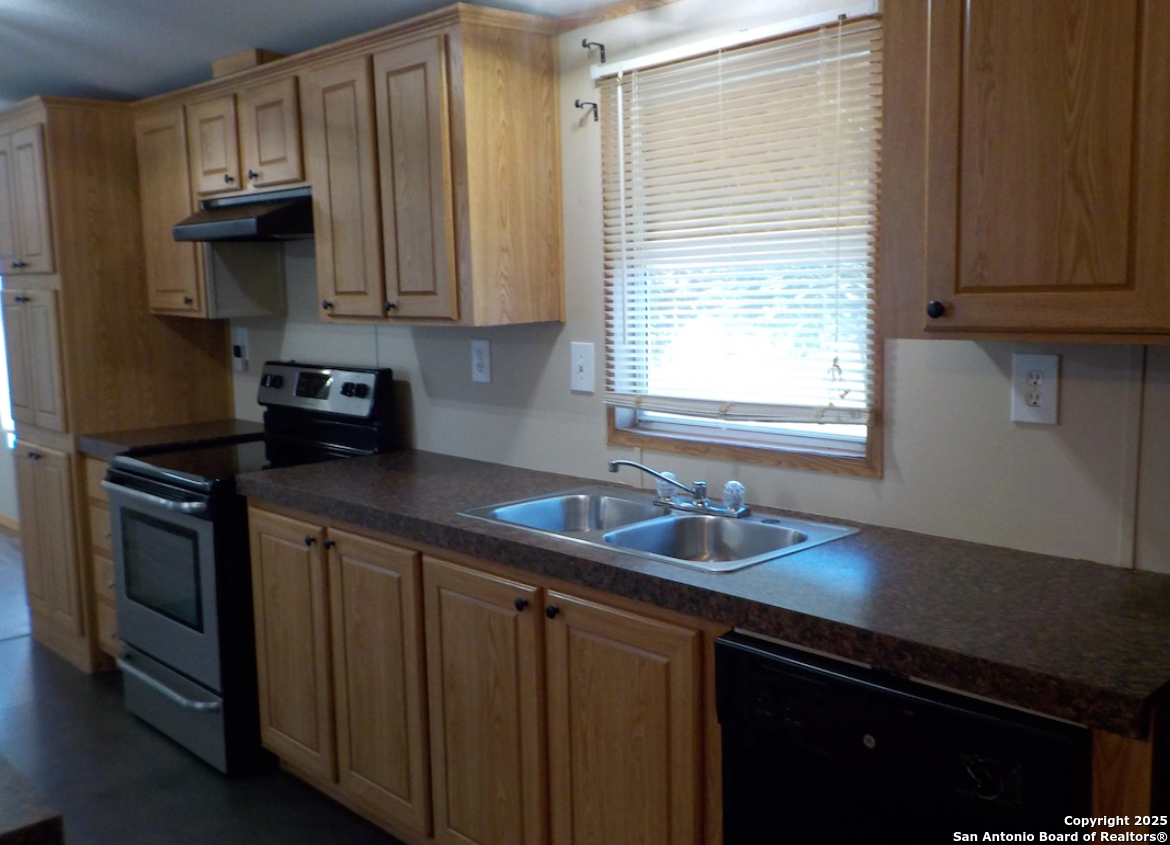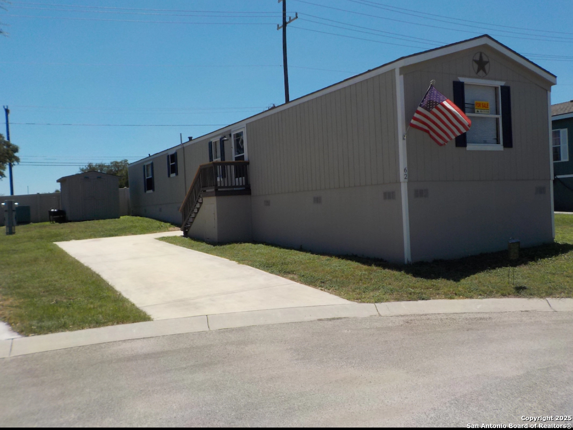 Recently updated home with vinyl flooring and light fixtures. Open floor plan with built in hutch in dining room. All appliances included. Large primary bedroom with walk in closet. Spacious secondary bedroom. Covered patio. Storage shed included and extra storage under front porch as well. Convenient to shopping, restaurants, and schools.