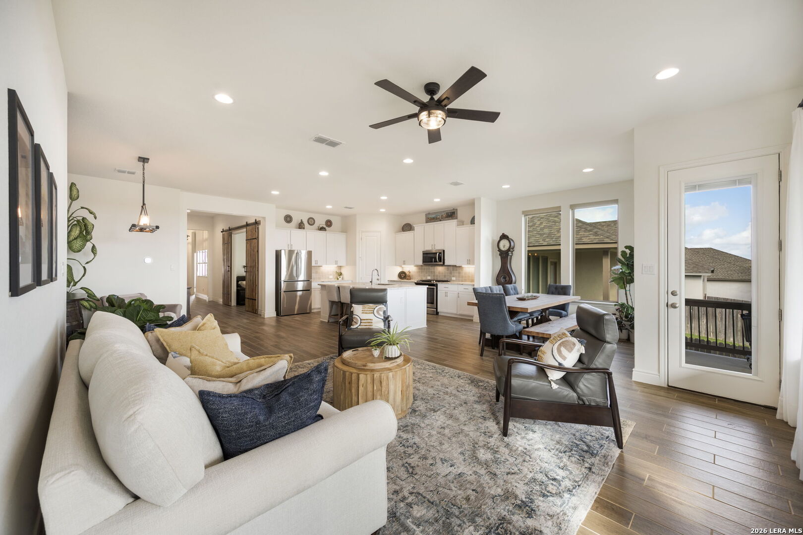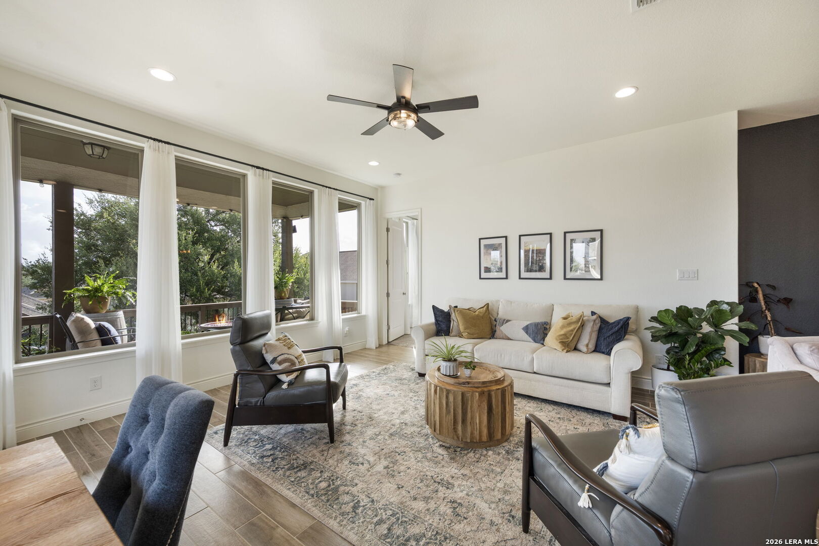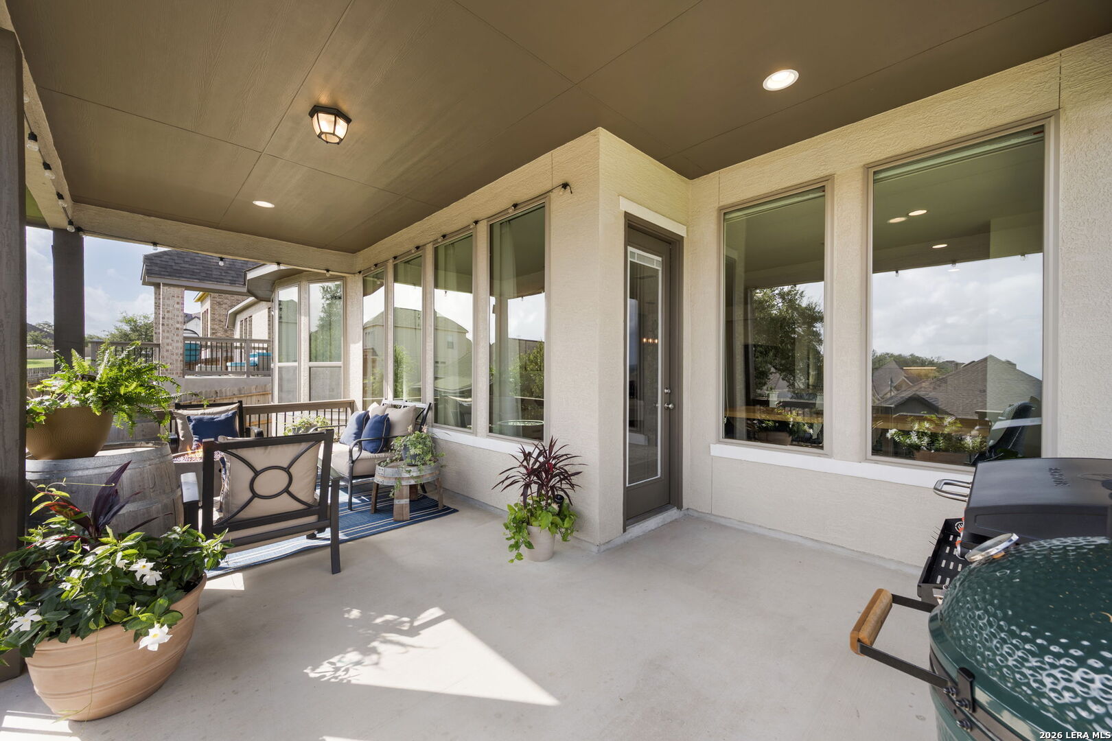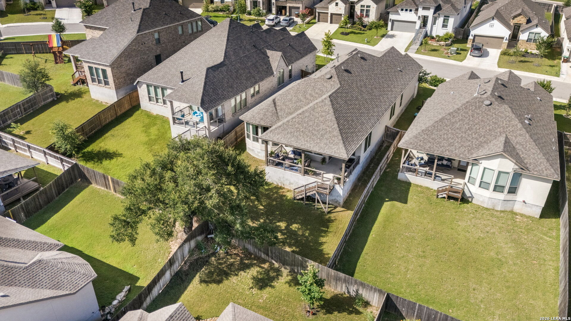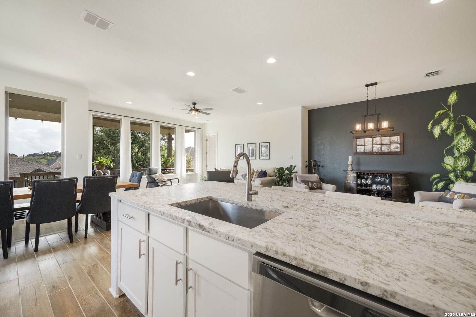 Welcome to 1159 Cadogan Squire in the desirable, gated community of Kinder Ranch - where peaceful Hill Country views meet truly livable luxury. From the moment you arrive, the home reflects thoughtful care and clean architectural design. Inside, high ceilings and wood-look tile floors create an atmosphere that feels both refined and welcoming. The open-concept living space is anchored by a striking accent wall and flows seamlessly into a beautifully appointed kitchen featuring granite countertops, a generous island, stainless steel appliances, and abundant cabinetry - designed for effortless entertaining and everyday connection. The private primary suite offers a true retreat, complete with a bay-style window, freestanding soaking tub, dual granite vanities, and a glass-enclosed walk-in shower - blending comfort with elevated finishes. Large windows frame serene views - yet unlike many view lots, this one gives you usable outdoor space. The covered patio and fenced yard offer room to host, play, garden, or simply unwind at sunset. It's the rare combination of scenic backdrop and everyday functionality. Life in Kinder Ranch offers gated privacy, walking trails, and neighborhood amenities, while everyday conveniences are just minutes away - grocery runs to H-E-B, workouts at LifeTime or Orangetheory, and shopping and dining at the Village at Stone Oak retail center. Enjoy quick access to Stone Oak favorites, distinctive Hill Country dining, and major highways connecting you to the best of San Antonio. This is more than a home with a view - it's a home where design, comfort, and lifestyle come together beautifully.