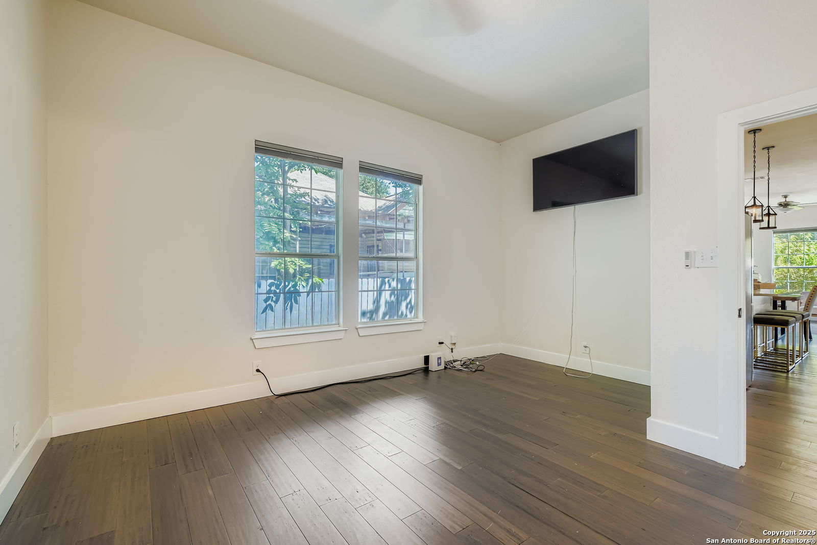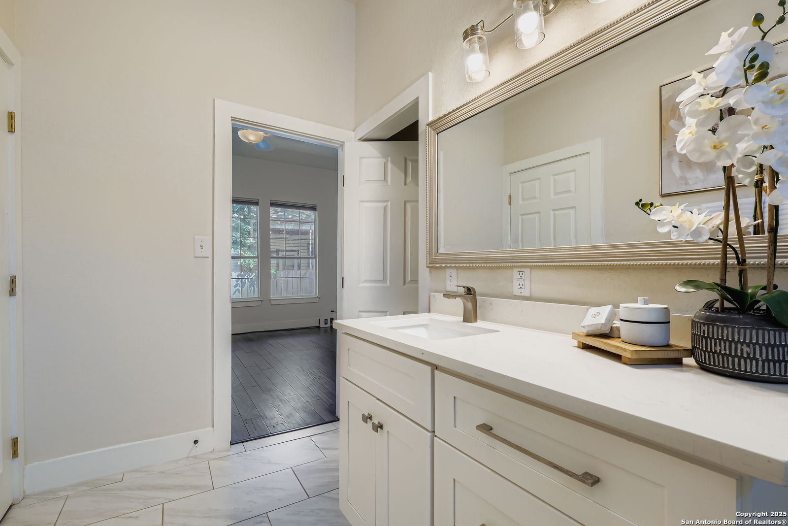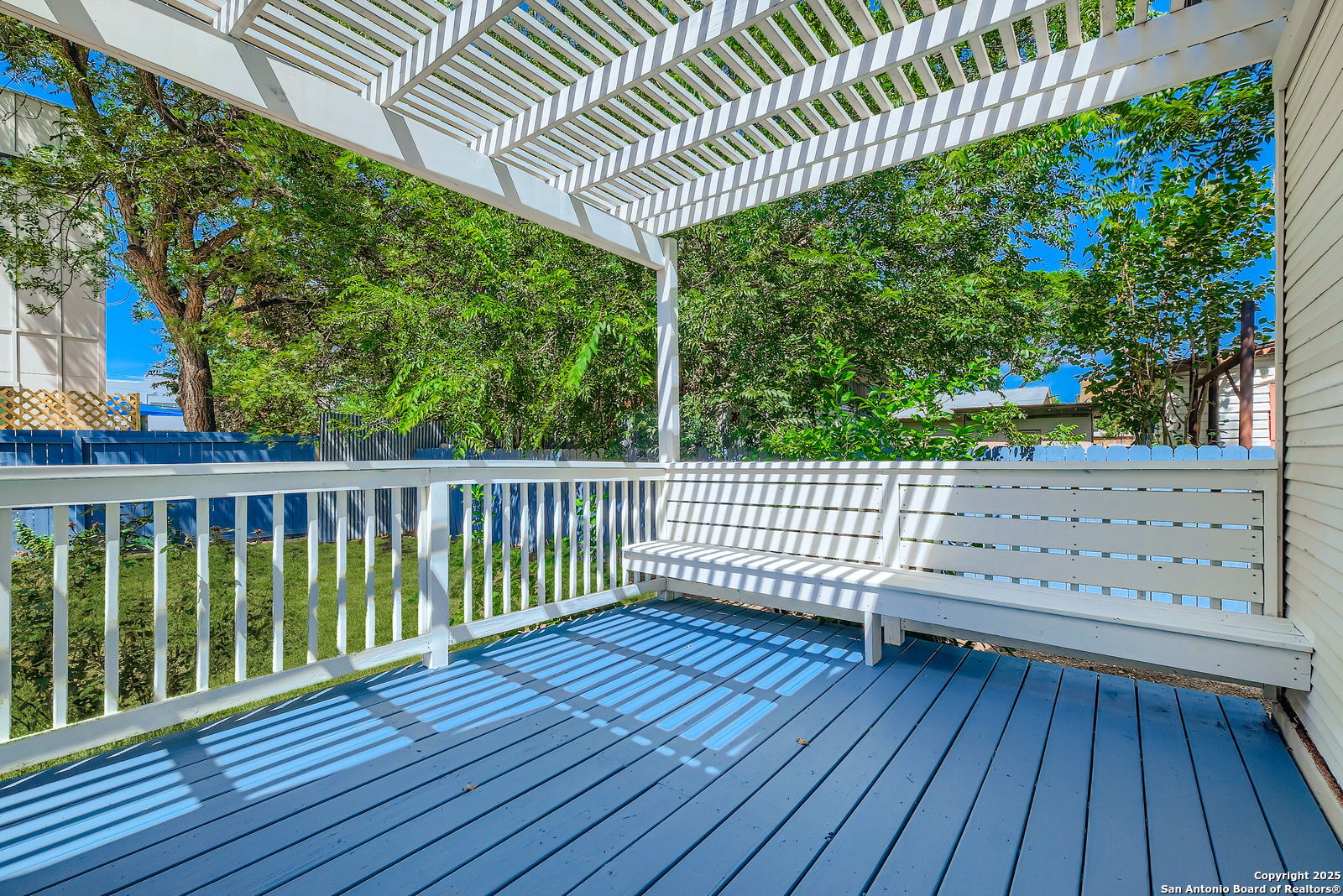 Welcome to a beautifully preserved 1920s gem that blends timeless character with thoughtful modern updates. Nestled in one of San Antonio's most vibrant and culturally rich neighborhoods, this home offers the perfect mix of charm, comfort, and convenience. Step onto the iconic wraparound porch and into a bright, thoughtfully curated interior. The living area features floating shelves, beautiful lighting, and a gorgeous reclaimed wood wall. Custom window treatments - designed specifically for the home - add beauty, privacy, and will remain with the property. The kitchen is equipped with a top-of-the-line appliance package, including the refrigerator, washer, and dryer, AND an 85-inch screen TV - making this home truly move-in ready. The primary suite offers private access to a spacious covered patio - ideal for relaxed mornings or evening gatherings. Major improvements include foundation repairs, home leveling, a new HVAC filtration system, and an advanced water filtration system for comfort and peace of mind. Out back, enjoy a fully enclosed retreat built for both relaxation and functionality - featuring fruit-bearing peach, orange, and lemon trees, a privacy fence perfect for pets, and a covered sitting area just off the primary suite. A detached, air-conditioned workshop adds bonus space for hobbies or storage. The extended shadow stone driveway accommodates four vehicles, and a bold privacy-blue front fence sets the tone for this unique property. The location is a dream - just a 4-minute walk to Il Forno (AMAZING pizza!), a 10-minute stroll to Kunstler Brewing, and a short bike ride to SoFlo, King William, and Southtown - where San Antonio's creative energy shines through its art, culture, and world-class dining. This is more than a home - it's a lifestyle.