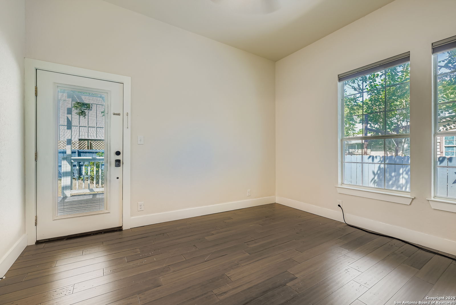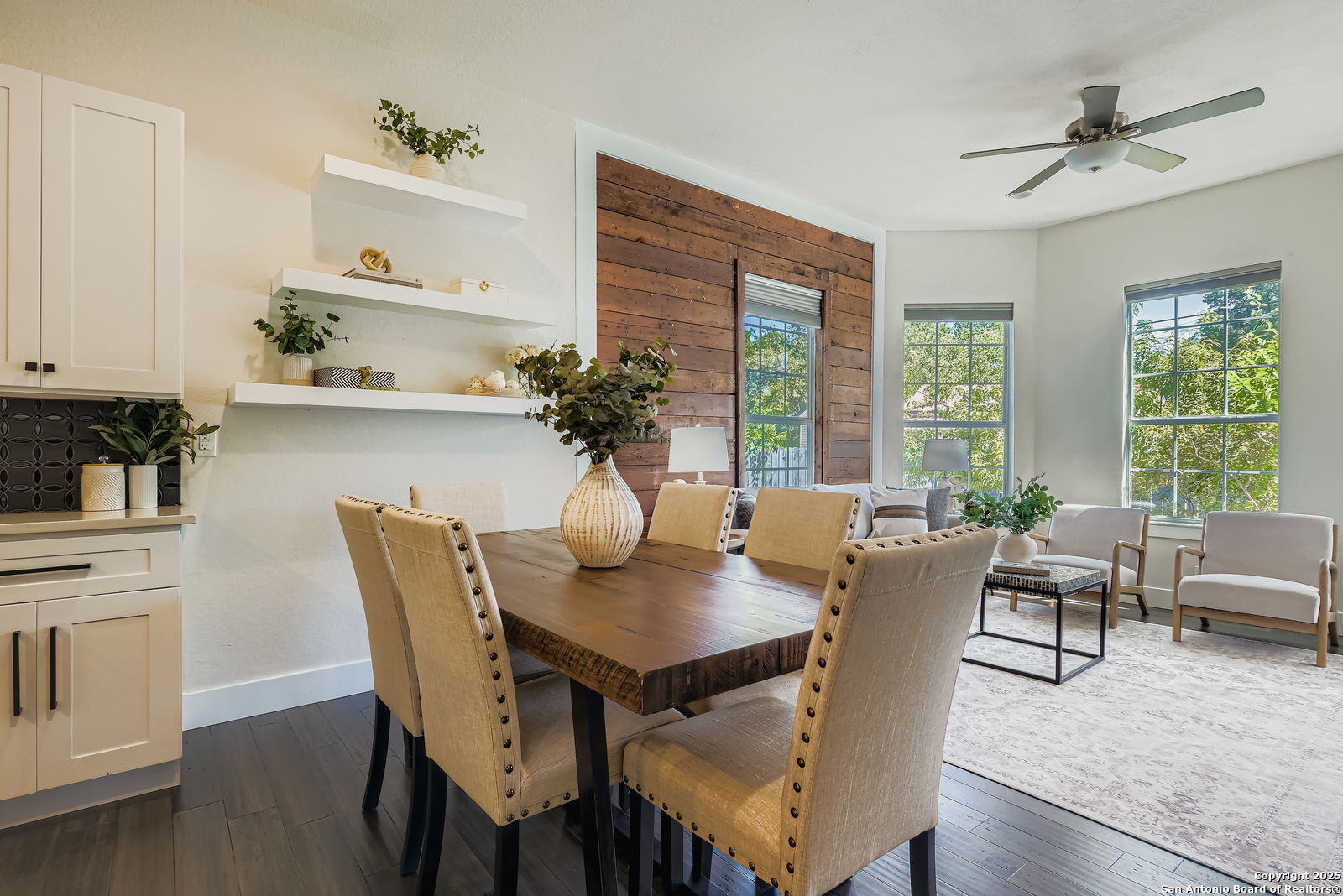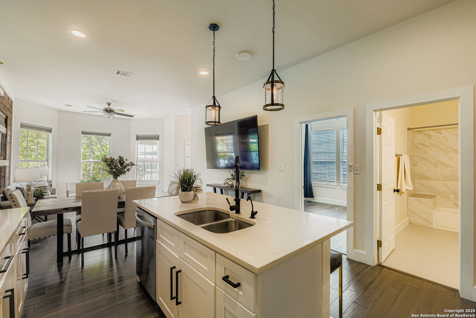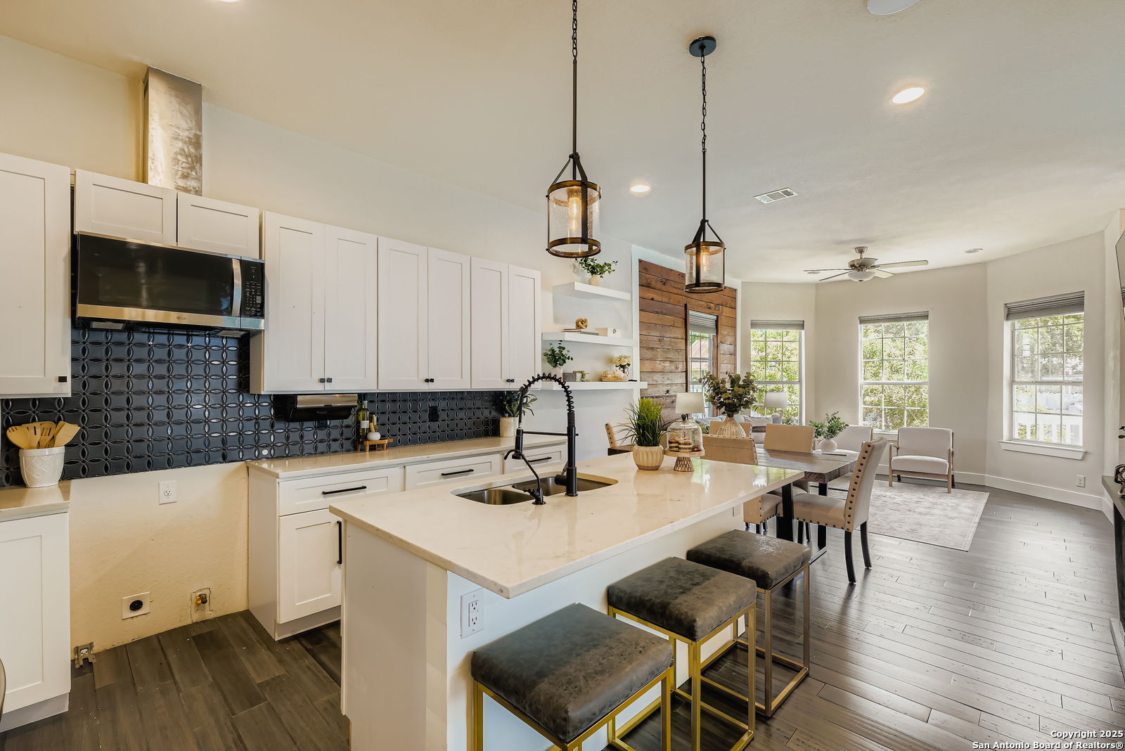 Welcome to a beautifully preserved 1920s gem that blends timeless character with thoughtful modern updates. Nestled in one of San Antonio's most vibrant and culturally rich neighborhoods, this home offers the perfect mix of charm, comfort, and convenience. Step onto the iconic wraparound porch and into a bright, thoughtfully curated interior. The living area features floating shelves, beautiful lighting, and a gorgeous reclaimed wood wall. Custom window treatments - designed specifically for the home - add beauty, privacy, and will remain with the property. The kitchen is equipped with a top-of-the-line appliance package, including the refrigerator, washer, and dryer, AND an 85-inch screen TV - making this home truly move-in ready. The primary suite offers private access to a spacious covered patio - ideal for relaxed mornings or evening gatherings. Major improvements include foundation repairs, home leveling, a new HVAC filtration system, and an advanced water filtration system for comfort and peace of mind. Out back, enjoy a fully enclosed retreat built for both relaxation and functionality - featuring fruit-bearing peach, orange, and lemon trees, a privacy fence perfect for pets, and a covered sitting area just off the primary suite. A detached, air-conditioned workshop adds bonus space for hobbies or storage. The extended shadow stone driveway accommodates four vehicles, and a bold privacy-blue front fence sets the tone for this unique property. The location is a dream - just a 4-minute walk to Il Forno (AMAZING pizza!), a 10-minute stroll to Kunstler Brewing, and a short bike ride to SoFlo, King William, and Southtown - where San Antonio's creative energy shines through its art, culture, and world-class dining. This is more than a home - it's a lifestyle.