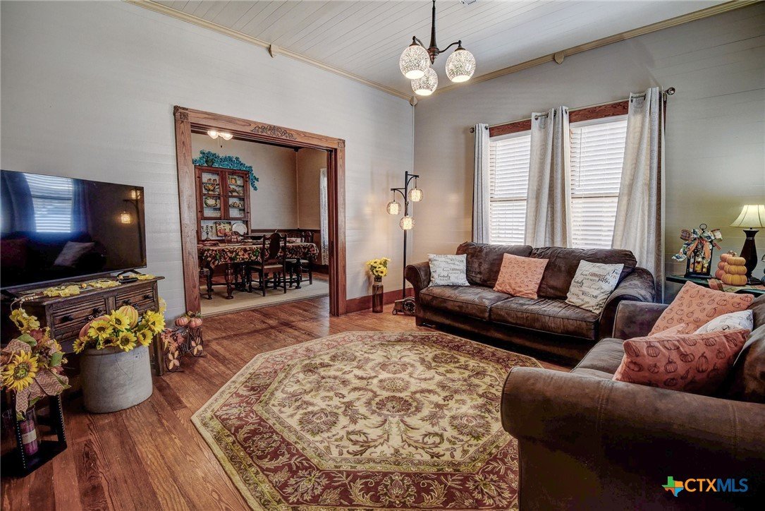 Savor the simple pleasures of small-town living from the front porch swing of this beautifully preserved craftsman home—where every sunrise feels like an invitation to slow down and stay awhile. Step inside to discover gleaming hardwood floors that flow through spacious, light-filled rooms, each radiating warmth, character, and timeless charm. Every corner of this 1,481 sq. ft. home has been thoughtfully designed to make you feel instantly at home. This property offers 2 bedrooms, plus a versatile bonus room perfect as a third bedroom, home office, playroom, or creative studio—along with 2 full bathrooms for modern convenience. The kitchen shines with its butcher block countertops, generous cabinetry, and a layout made for both everyday living and effortless entertaining. In the dining room, original pocket doors and a built-in buffet highlight the craftsmanship of a bygone era, blending classic design with cozy comfort. Step outside to your expansive, fenced backyard—a private haven ideal for gatherings, gardening, or simply unwinding under Texas skies. The spacious garage adds flexibility with room for parking, tools, and extra storage. This Shiner gem perfectly combines historic character with modern comfort, offering a lifestyle that’s both relaxed and refined. Don’t miss the chance to make this craftsman treasure your forever home!