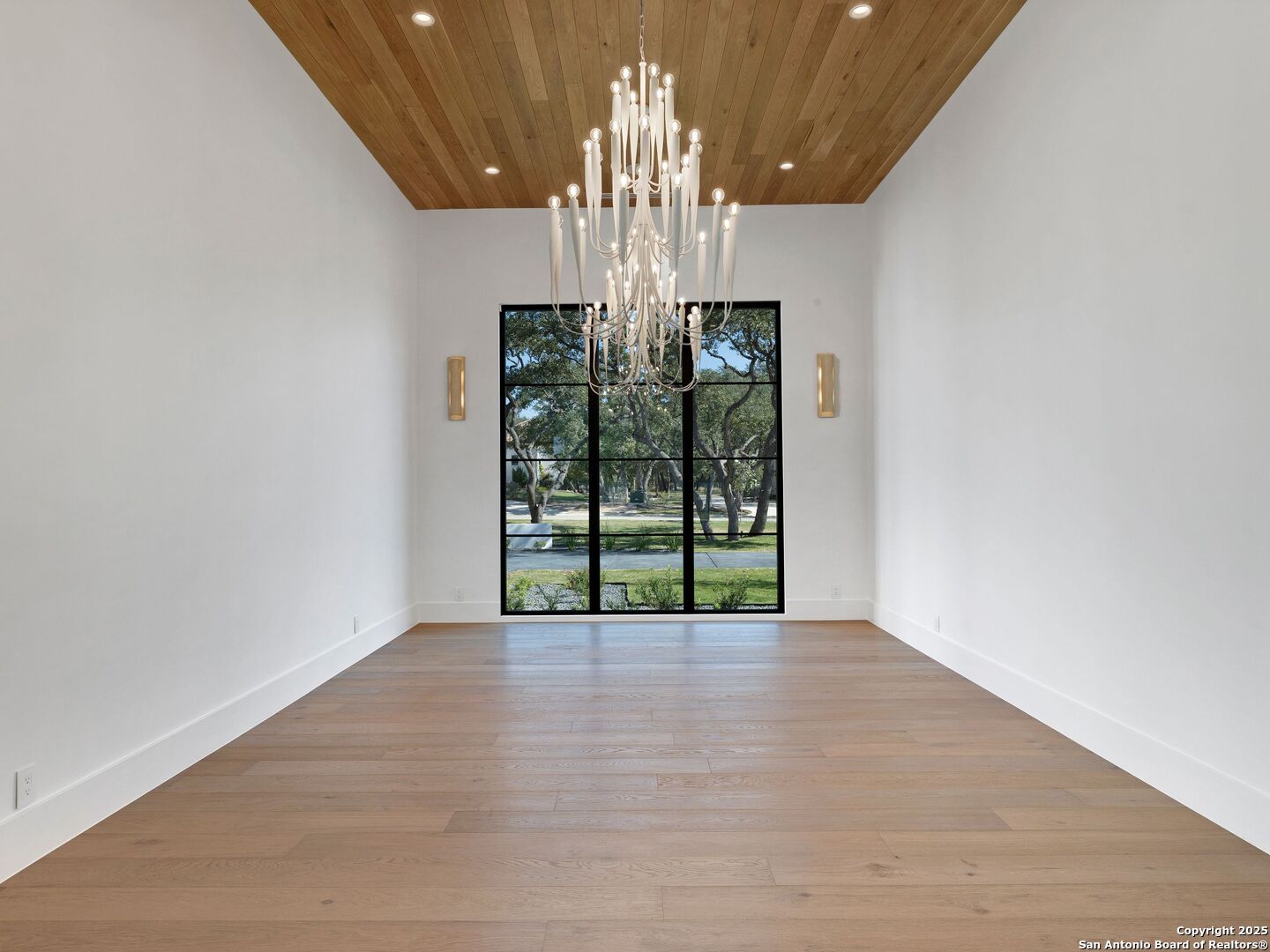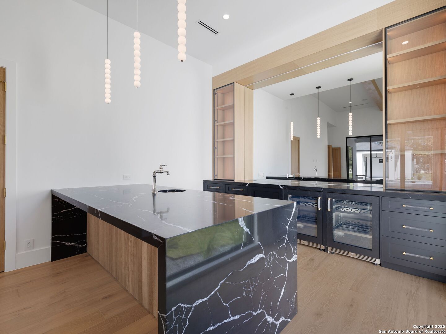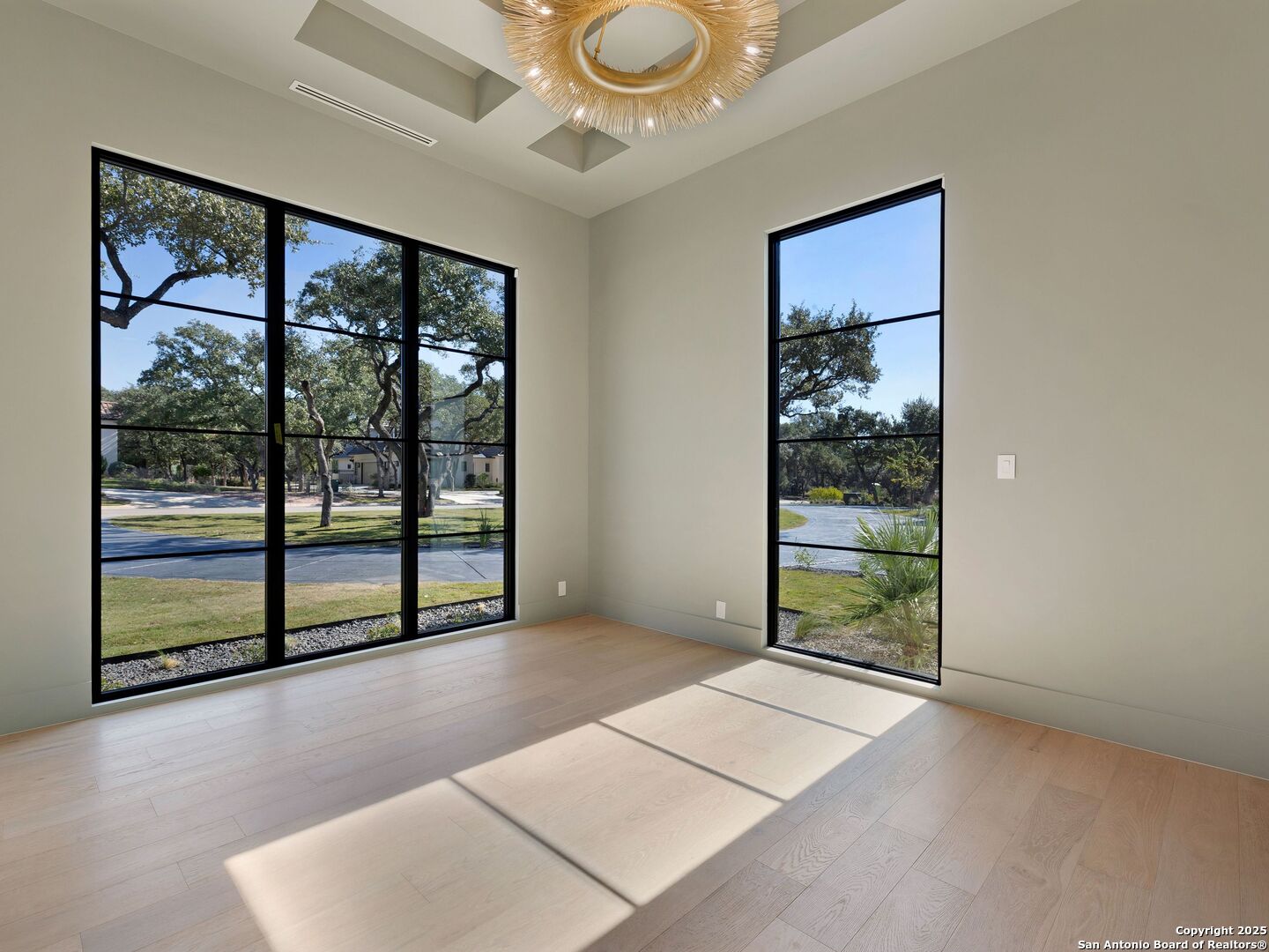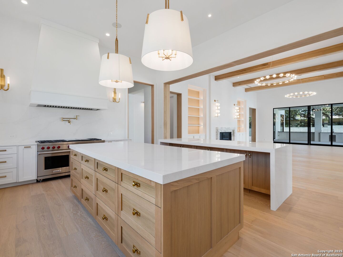 A brand new transitional estate by G Core Construction set within the coveted gates of Huntington. This residence is composed with scale, precision, and refined contemporary detailing throughout. Floor to ceiling glass floods the interiors with natural light, framing lush green views and emphasizing the home's clean architectural lines. Inside, a curated palette of European white oak floors, smooth finish walls, custom millwork, architectural ceiling treatments, designer lighting, and exotic stone selections sets an elevated tone from the moment you enter. The chef's kitchen is anchored by professional grade stainless steel appliances, oversized double islands, and a counter height breakfast bar, opening directly to the family room highlighted by a stone gas fireplace and soaring ceilings. The primary suite is a private retreat with patio access, custom ceiling details, and dual spa inspired baths. Each side features its own design theme with marble accents, mosaic detailing, and expansive boutique style closets with custom cabinetry and glass front displays. Four additional guest suites on the main level each enjoy their own en suite bathroom, providing exceptional comfort and privacy. A dedicated study, a large game room with a full wet bar, and direct outdoor access complete the interior layout. The outdoor setting is resort caliber with a premier pool and spa, a large covered patio, a full outdoor kitchen, and warm ceiling accents designed for year round living and entertaining.