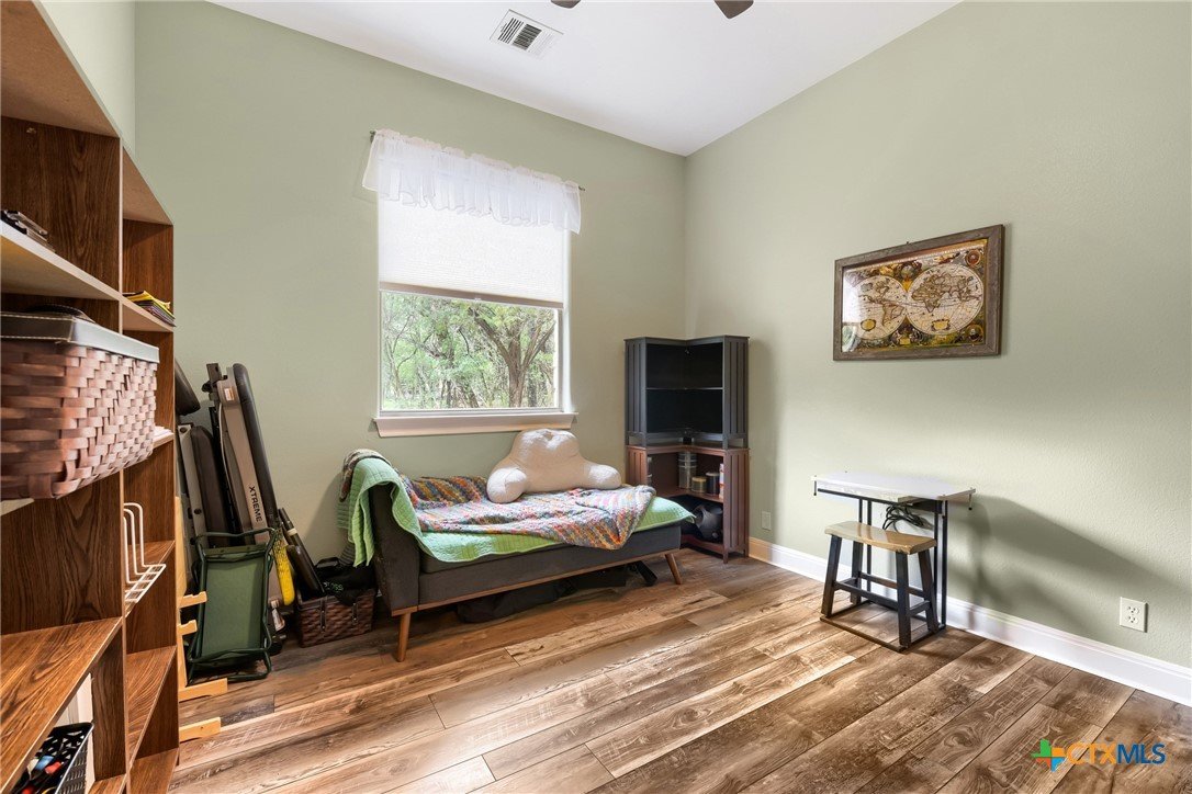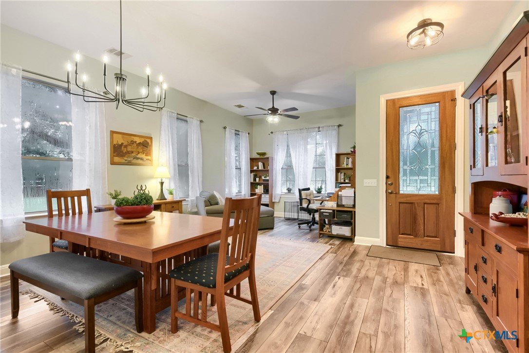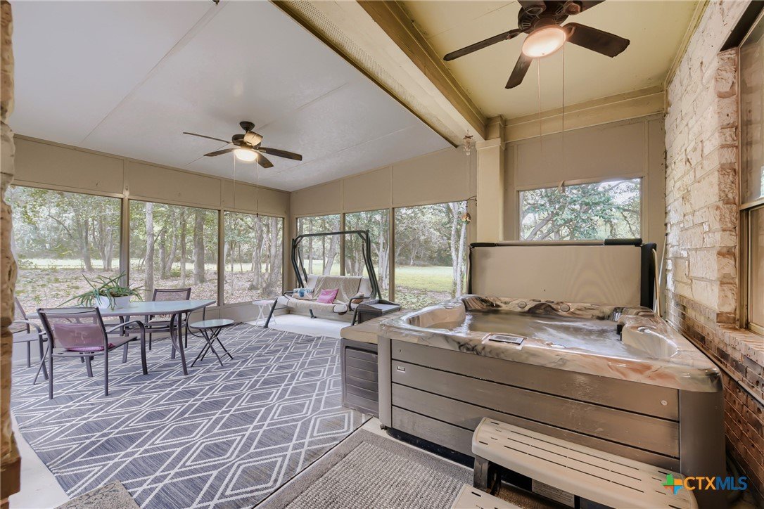 Stunning in San Leanna! Nestled on a peaceful .48-acre corner lot, this beautiful home offers privacy, charm, and a true connection to nature—where quiet streets with no through-traffic and the sight of deer passing by create a calm, secluded feel, all while being just minutes from shopping, dining, and entertainment. Inside, you’ll find 12-foot ceilings and an abundance of windows throughout, filling the home with soft, natural light and showcasing the beauty of the wooded surroundings. The thoughtfully designed layout includes 3 bedrooms, 2.5 baths, a dedicated office, two comfortable living areas, and a formal dining—perfect for both everyday living and meaningful gatherings. The spacious kitchen is truly the heart of the home, featuring a large island, granite countertops, and plenty of room to cook, gather, and connect. Step outside to the screened-in porch with a hot tub, your own private retreat for relaxing mornings or peaceful evenings under the trees. The primary suite offers a serene escape with a four-window bay overlooking the private backyard, along with a walk-in closet and double vanities for comfort and convenience. With room to spread out, entertain, and truly feel at home, this property offers a lifestyle that’s both warm and inviting. Don’t wait—homes like this don’t come along often, and it won’t last long! Fridge in garage does NOT convey