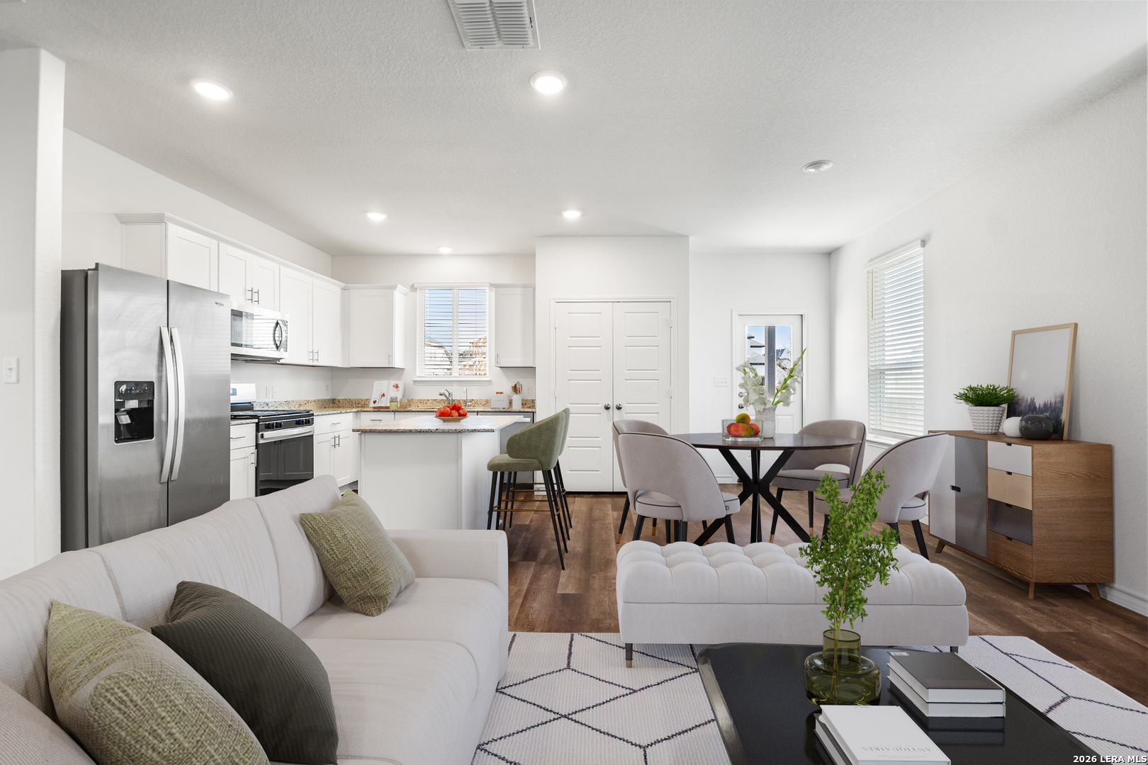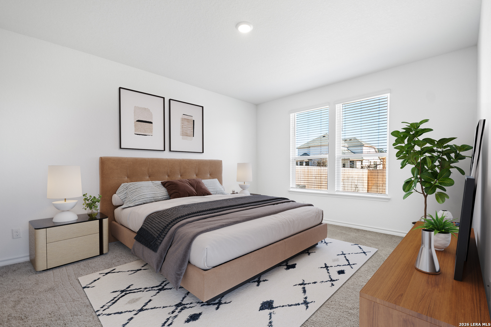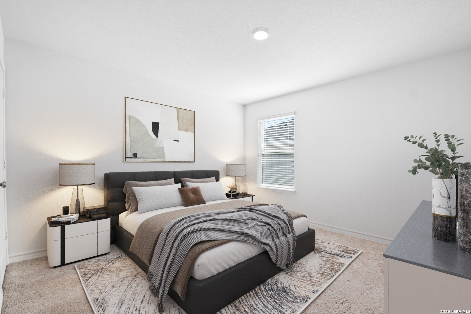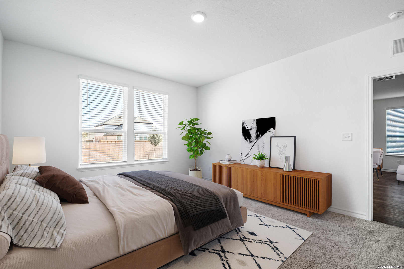 Davis Ranch's finest. This home offers functional features, including multiple living areas, ample storage, and large bedrooms. Well maintained, this property is move-in ready. Upon entering, you'll see natural light coming in through windows surrounding the home. The living and dining room provide space for gatherings. A secondary bedroom downstairs with full bathroom can function as an office or flex room. The kitchen includes stainless steel appliances, refrigerator, gas cooking, a central island for prep work, solid granite countertops, and a walk-in pantry. Adjacent to the kitchen is the dining space. Additional first-floor features include a storage closet and walk-in laundry room. The primary suite offers backyard views and includes space for a sitting area, a bathroom with walk-in shower, double vanity, and a large walk-in closet. Upstairs, a loft provides space for studying, gaming, or relaxing. Three bedrooms, one full bath and another storage closet complete the second floor. Outside, the patio overlooks a large lot with a green space between back neighbors. Located in Northside ISD, with the neighborhood pool and playground within walking distance.