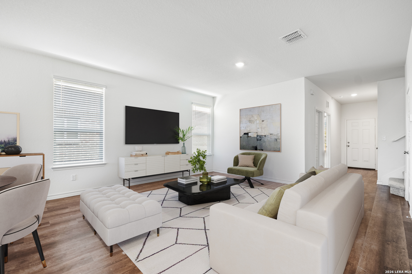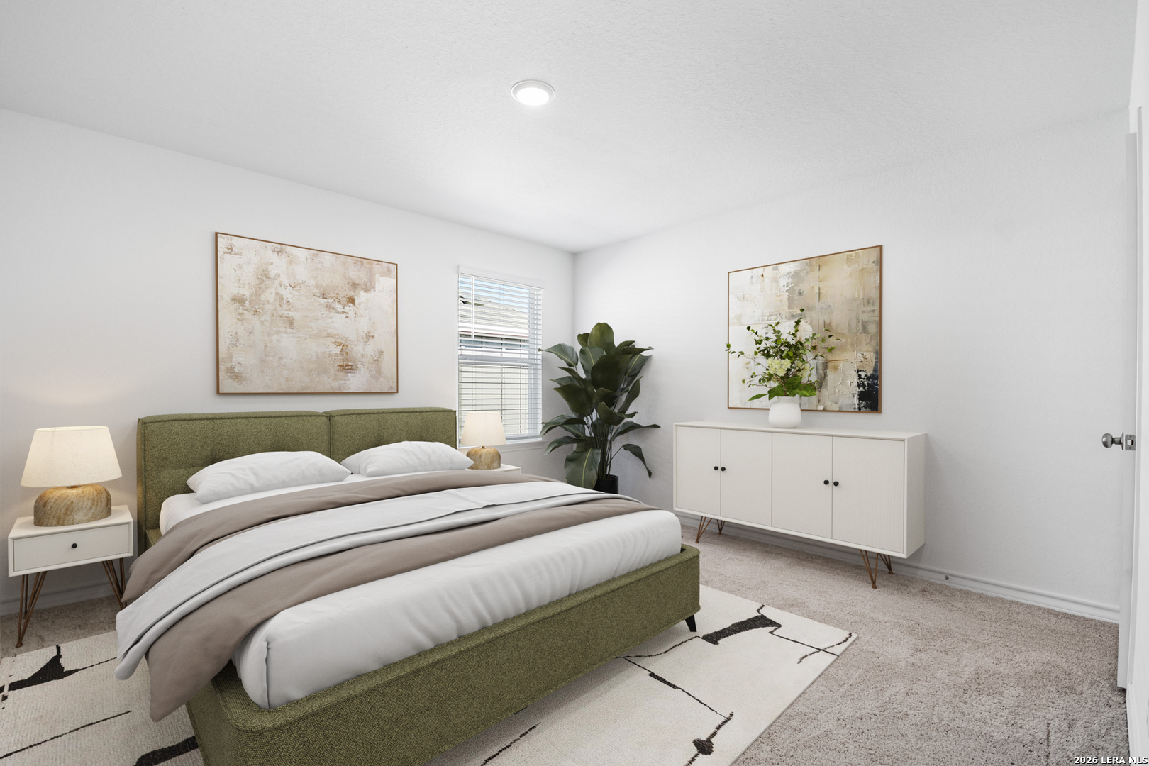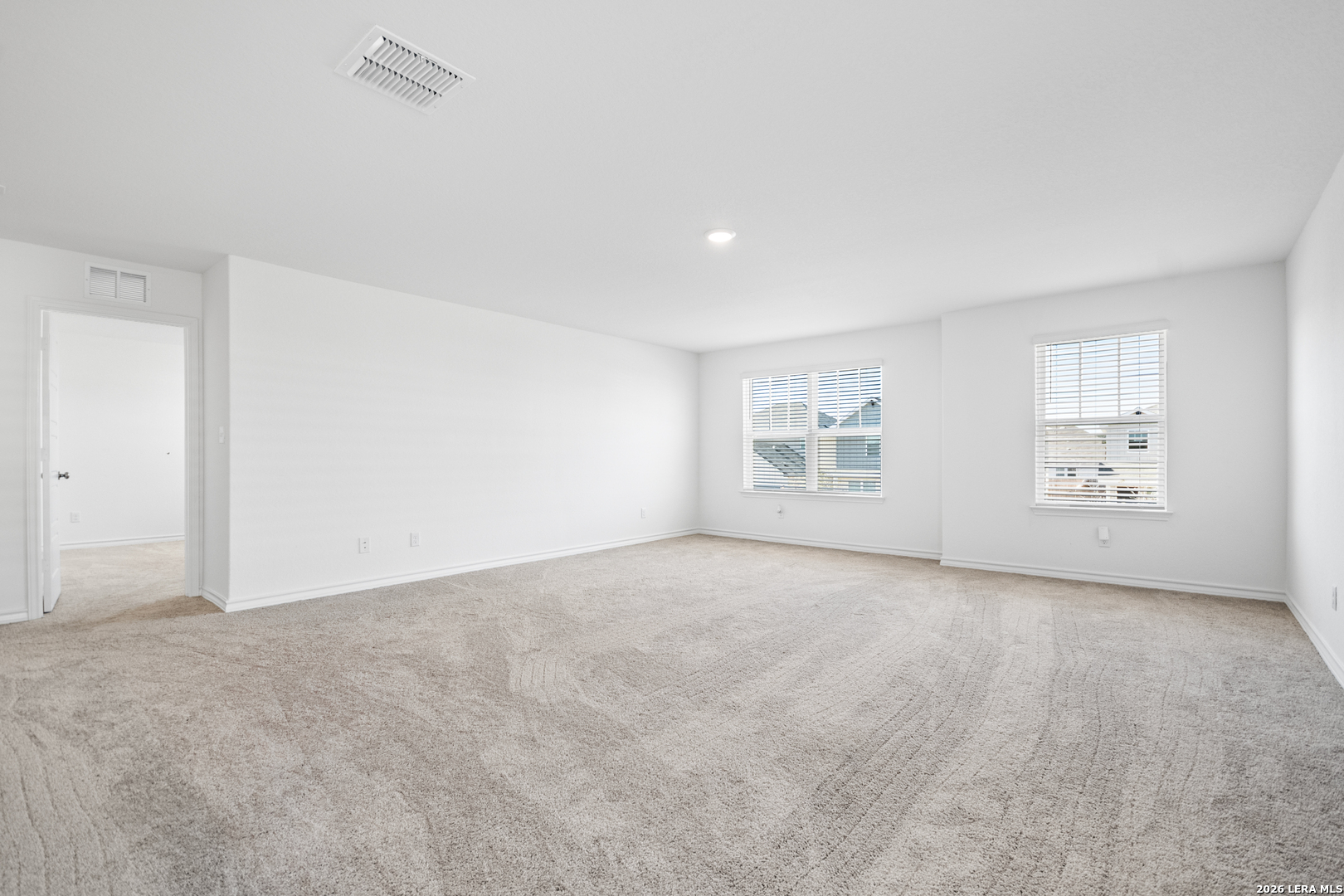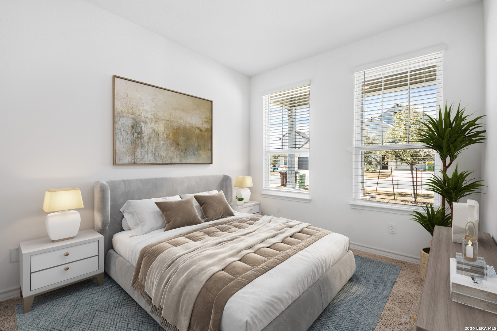 Davis Ranch's finest. This home offers functional features, including multiple living areas, ample storage, and large bedrooms. Well maintained, this property is move-in ready. Upon entering, you'll see natural light coming in through windows surrounding the home. The living and dining room provide space for gatherings. A secondary bedroom downstairs with full bathroom can function as an office or flex room. The kitchen includes stainless steel appliances, refrigerator, gas cooking, a central island for prep work, solid granite countertops, and a walk-in pantry. Adjacent to the kitchen is the dining space. Additional first-floor features include a storage closet and walk-in laundry room. The primary suite offers backyard views and includes space for a sitting area, a bathroom with walk-in shower, double vanity, and a large walk-in closet. Upstairs, a loft provides space for studying, gaming, or relaxing. Three bedrooms, one full bath and another storage closet complete the second floor. Outside, the patio overlooks a large lot with a green space between back neighbors. Located in Northside ISD, with the neighborhood pool and playground within walking distance.
