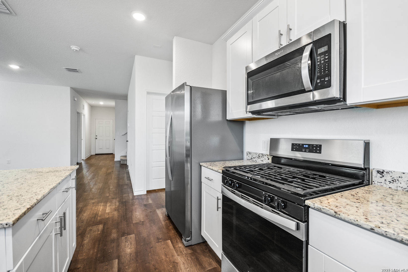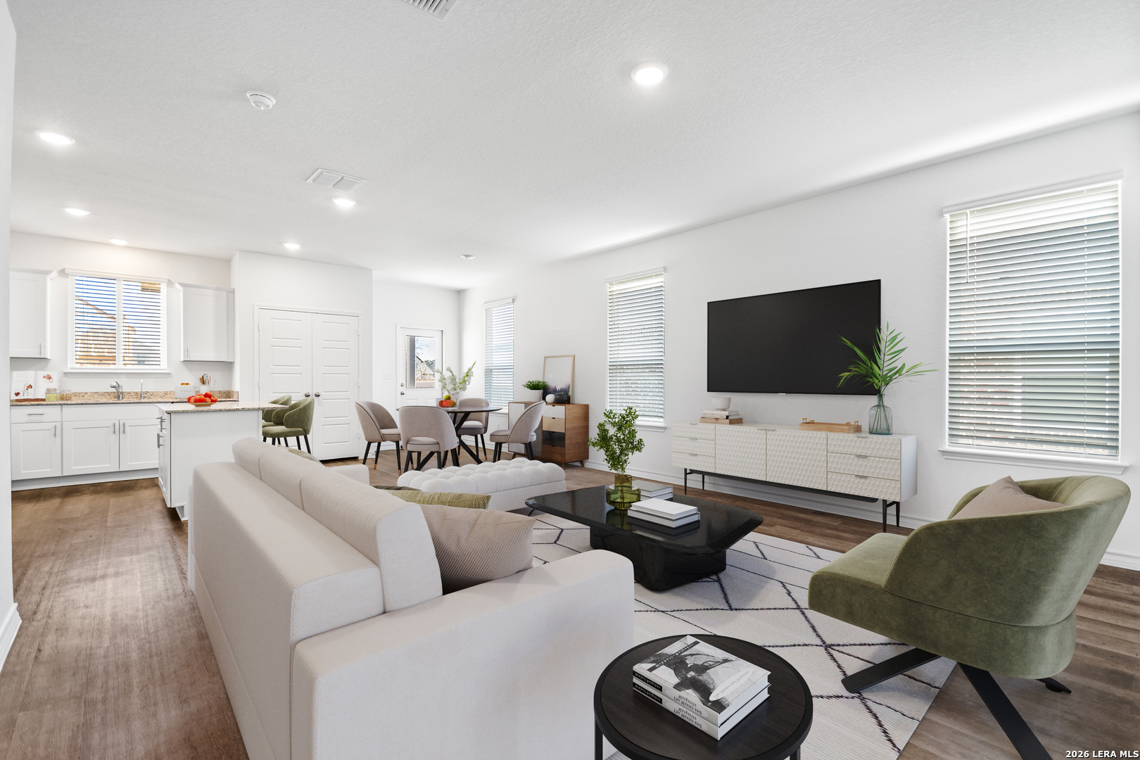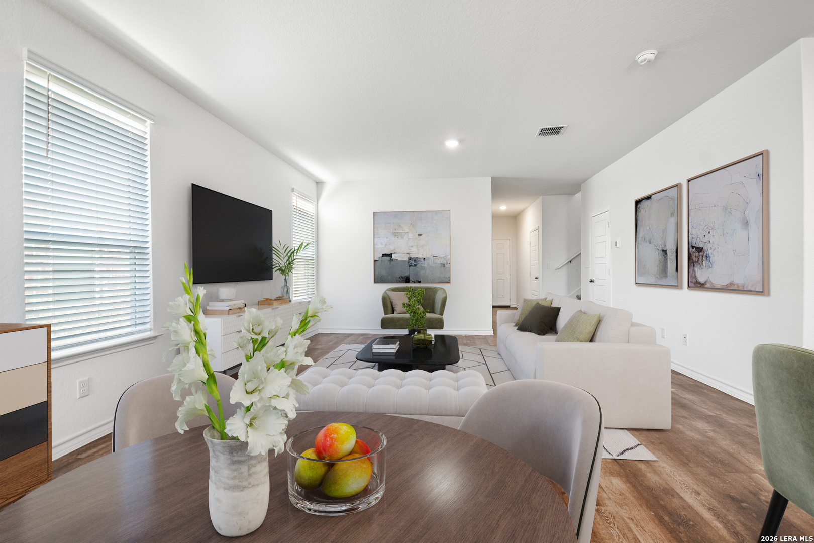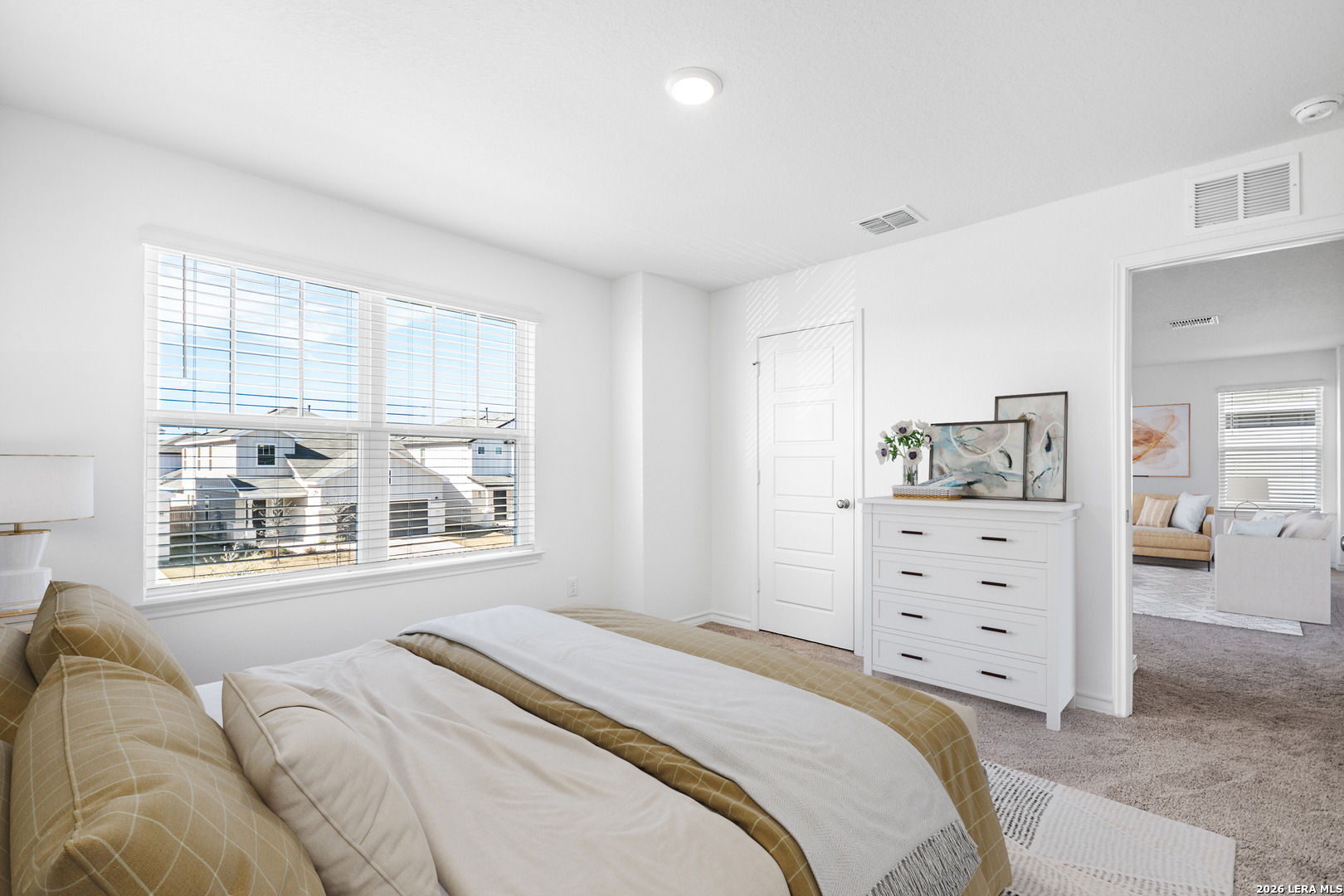 Davis Ranch's finest. This home offers functional features, including multiple living areas, ample storage, and large bedrooms. Well maintained, this property is move-in ready. Upon entering, you'll see natural light coming in through windows surrounding the home. The living and dining room provide space for gatherings. A secondary bedroom downstairs with full bathroom can function as an office or flex room. The kitchen includes stainless steel appliances, refrigerator, gas cooking, a central island for prep work, solid granite countertops, and a walk-in pantry. Adjacent to the kitchen is the dining space. Additional first-floor features include a storage closet and walk-in laundry room. The primary suite offers backyard views and includes space for a sitting area, a bathroom with walk-in shower, double vanity, and a large walk-in closet. Upstairs, a loft provides space for studying, gaming, or relaxing. Three bedrooms, one full bath and another storage closet complete the second floor. Outside, the patio overlooks a large lot with a green space between back neighbors. Located in Northside ISD, with the neighborhood pool and playground within walking distance.