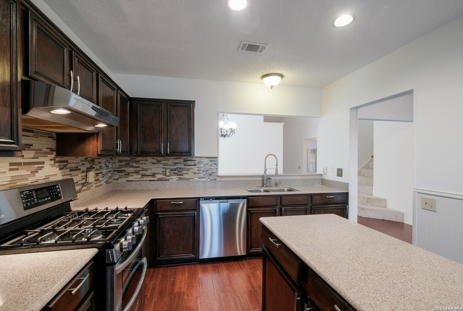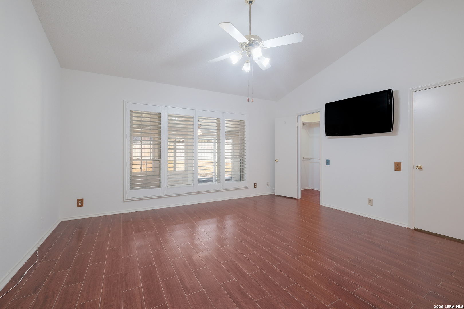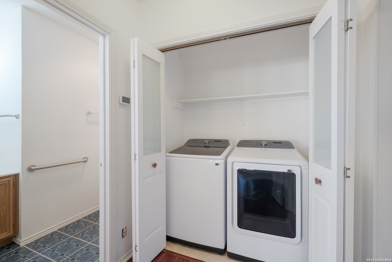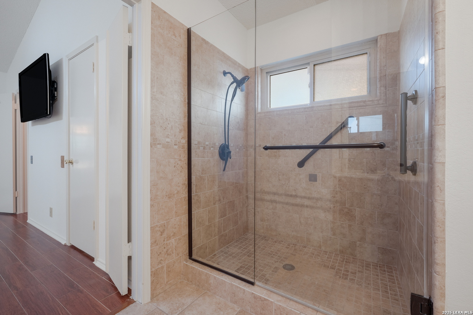Nestled on nearly a quarter acre in the established Woods of Westcreek community, this well-maintained home offers space, privacy, and a prime Northwest San Antonio location. Inside, an inviting open living and dining area is anchored by a striking fireplace feature wall, creating warmth and definition. Wood-look tile flooring throughout the main level adds modern style and durability. A versatile loft provides flexible space for a home office, media room, or play area, while two attached sunrooms fill the home with natural light and offer space for year-round entertaining, relaxation, or hobbies. The kitchen features solid granite countertops, LG stainless steel appliances, and a vent-a-hood. Upstairs, the remodeled secondary bathroom includes double vanities and elevated countertops. Updates include fresh interior paint throughout (Feb. 2026), new HVAC system (2021), water heater (2024), and double-pane Champion windows (2011). Located on a quiet curve in the street, this home offers reduced through traffic while remaining close to neighborhood amenities including pool, sports courts, parks, and walking areas. Easy access to Loop 1604 makes shopping, dining, and entertainment a breeze. The rare blend of space, upgrades, and privacy makes this home an exceptional find!