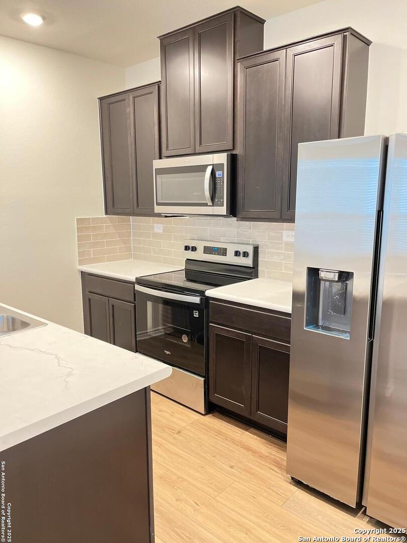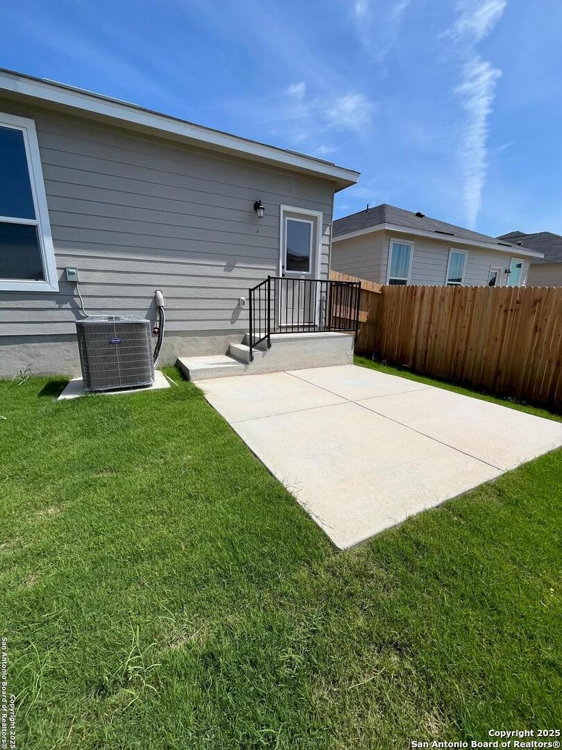 Built in 2025, one story 3-bedroom 2 bath, with extra home office/game room, single family home with 9ft high ceilings, window blinds, new stove, dishwasher, microwave, and refrigerator. Also, with fenced in back yard, 2 car garage with smart garage door opener, sprinkler system, and neighborhood swimming pool and playground that is walking distance away. Your home is minutes away from shopping, HWY 90 and loop 1604. 10 min drive to loop 410, Lackland AFB or Seaworld. 20 min to S