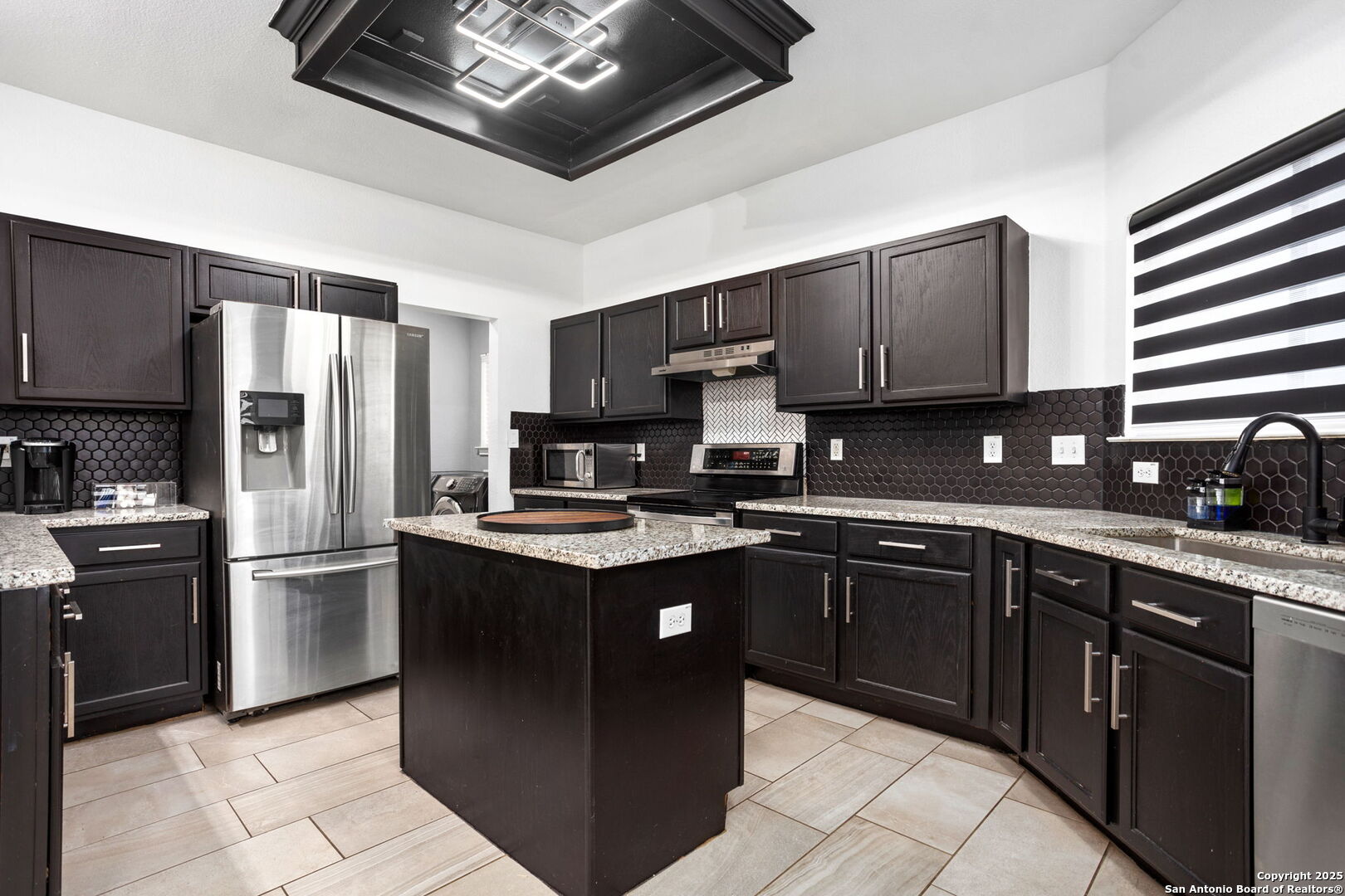 OPEN HOUSE 3/8 from 12PM - 3PM!! Sleek, modern, functional, and well located home ready for its new owner! A dramatic 18-foot entryway welcomes you inside and living room features a gas and wood-burning fireplace with designer style tile. The fully remodeled kitchen offers granite countertops, matching the calming dark cabinets and backsplash - striking against the stainless appliances. Contemporary accents, from sharp light fixtures to black accessory, flow seamlessly throughout the home. Garage turned lounge can be your next workshop or gym during any season with the mini ac split installed. Upstairs, the primary suite impresses with no carpet, a master-planned closet, architecture features, and great natural light. Smart home features like a Nest thermostat and a security system enhance convenience and peace of mind. Outside, the backyard is built for enjoyment with a newer fence, putting green, and a storage shed. This home's location in a gated community, with park, basketball court is within Northside ISD.