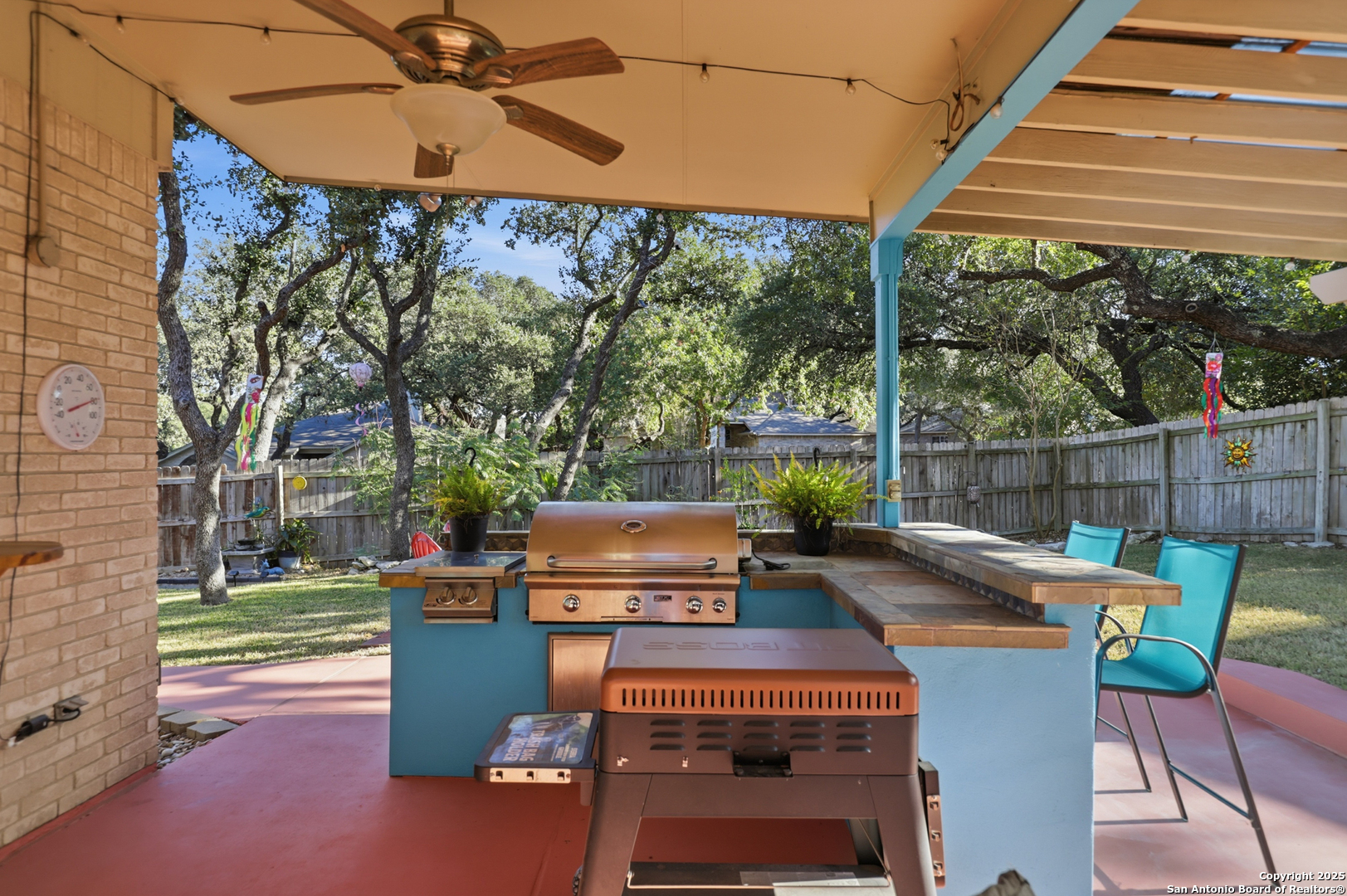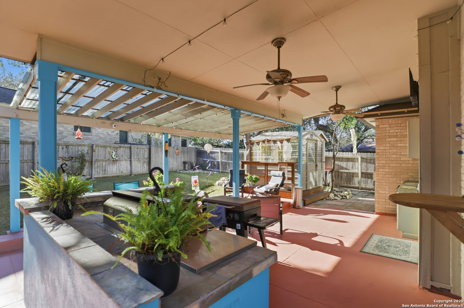 Welcome home to this beautifully maintained 4-bedroom, 2.5-bath residence offering 2,106 sq. ft. of comfort and style! Tucked away on a desirable corner lot, this property provides a peaceful setting while still being just minutes from W Loop 1604 and Highway 151 - ideal for commuters, especially those heading to Lackland AFB. Step inside to a functional and inviting layout featuring two spacious living areas - one upstairs and one downstairs - ensuring room for everyone to relax or entertain. The primary bedroom is conveniently located on the main floor, complete with a lovely ensuite featuring dual vanities, a separate soaking tub, and a walk-in shower. The well-equipped kitchen boasts stainless steel appliances, quartz countertops, and is perfectly positioned near the main-floor utility room for added convenience. Upstairs, you'll find three generously sized secondary bedrooms and an additional living space that can serve as a game room, media area, or home office. The outdoor living is truly a standout! The meticulously cared-for backyard is perfect for gathering and unwinding - complete with an outdoor kitchen featuring a gas grill, two inviting seating spaces (one under the covered patio and another on a charming brick paver area), a small greenhouse for the plant enthusiast, and even a storage shed for tools and extra storage. The stained terra cotta concrete patio adds a warm pop of color, beautifully complemented by vibrant outdoor decor. Located near major attractions including SeaWorld San Antonio, this property is also an exceptional opportunity for short-term or long-term rental income. And here's the best part... this home is being offered FULLY FURNISHED - inside and out! The seller is only taking personal belongings, so you get it all for one amazing price. Simply move right in or start renting immediately! Don't miss your chance to own this turnkey gem in a fantastic location. Schedule your showing today!