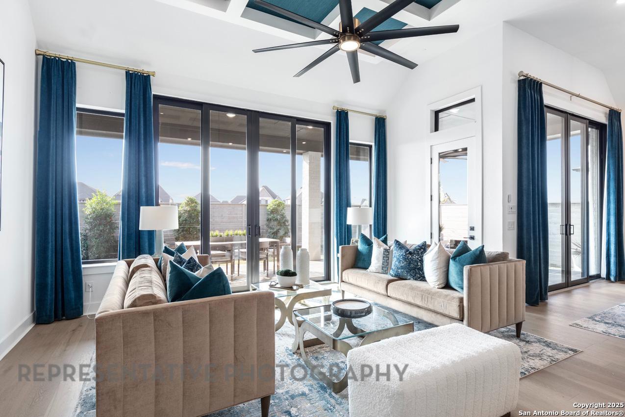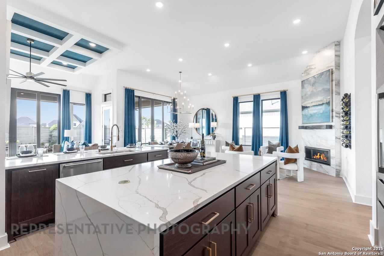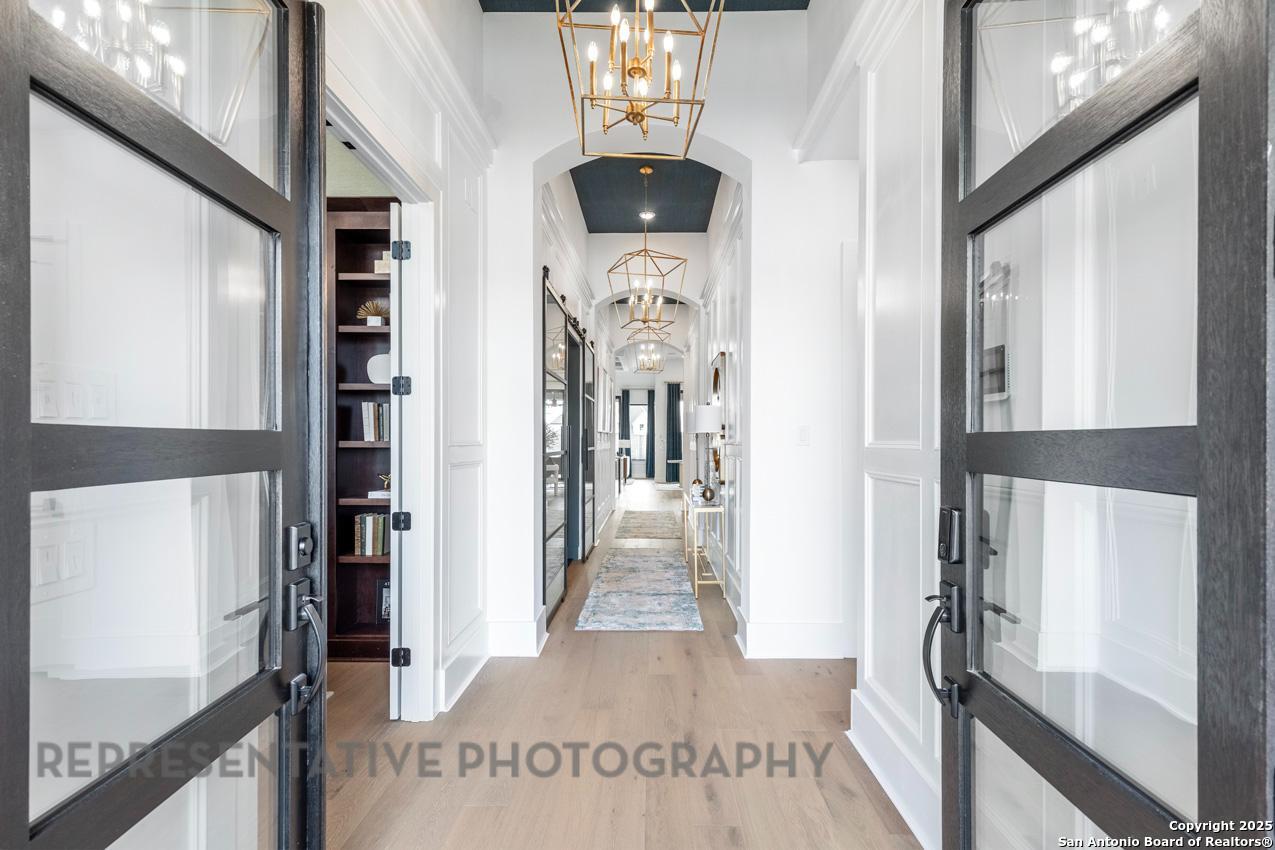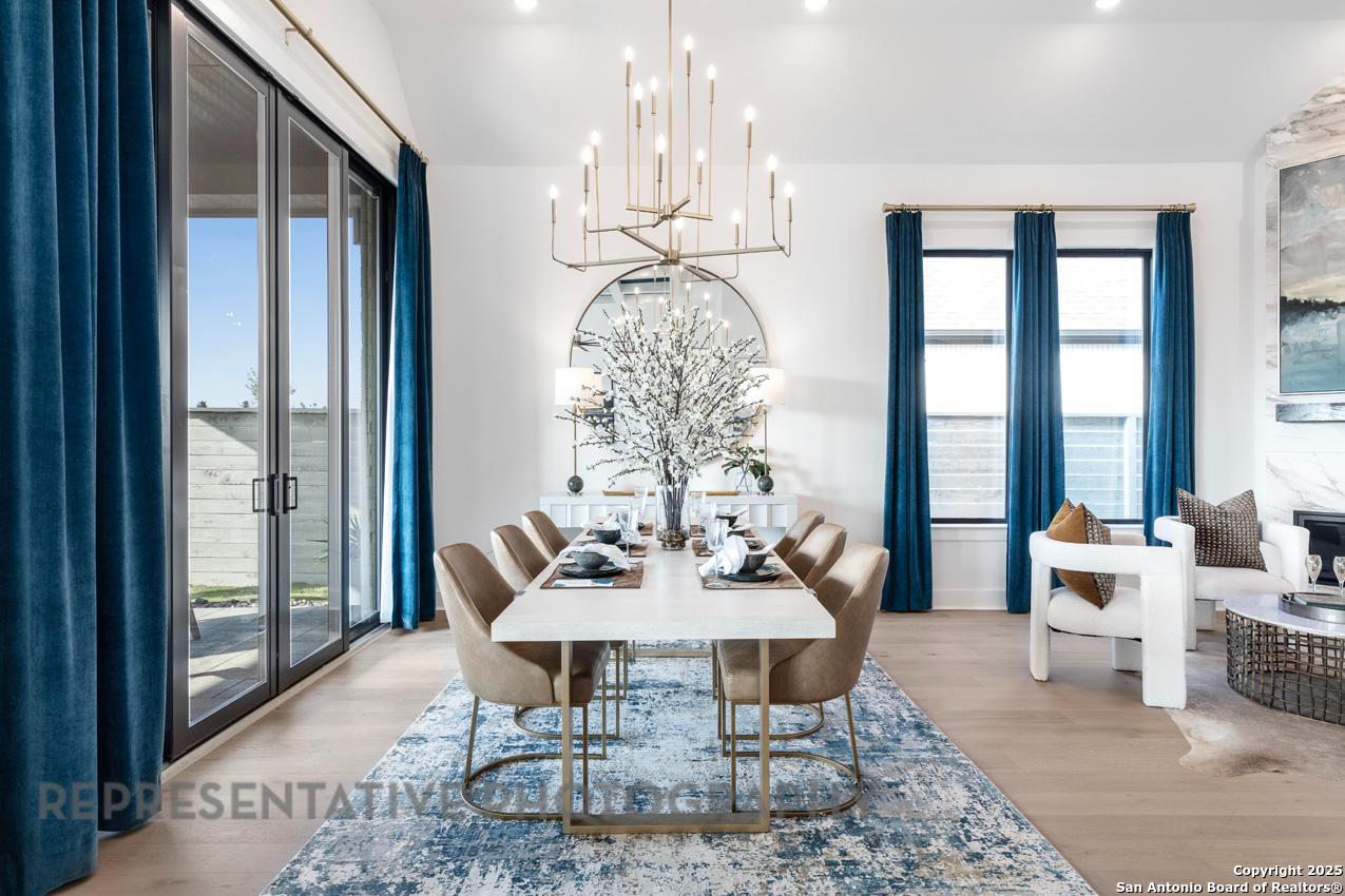 This ONE level home boasts elevated ceiling heights, Entertainment room, Home office, Fireplace, Neutral interior palette with wood floors, Double ovens. Estimate May/June 2026 home completion.