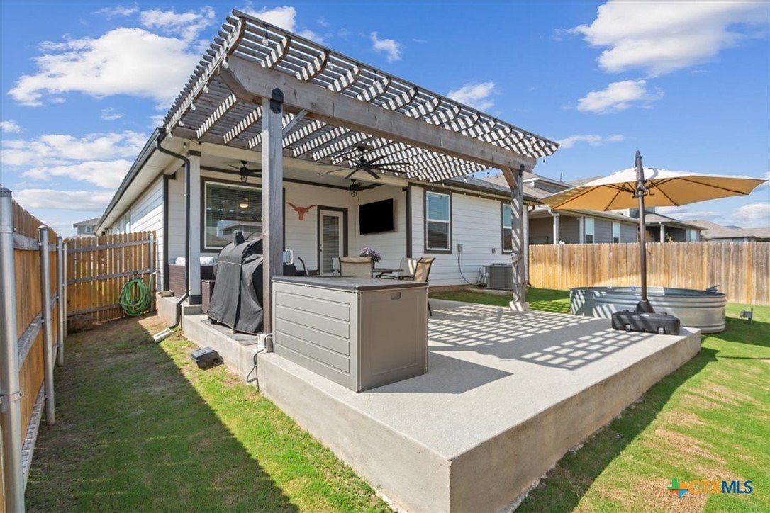 SOLAR TO BE PAID OFF AT CLOSING!!! Backyard oasis in Hutto! This 4-bedroom, 2-bath home features an open-concept layout filled with natural light. The spacious kitchen with quartz countertops, tile backsplash, large island and stainless steel appliances flows seamlessly into the living and dining areas. Primary en-suite features spa inspired bathroom w/dual vanities, oversized walk-in shower and two walk-in closets. The home also features LVP flooring, Full gutters, and water softener. Step outside to enjoy a private retreat with an extended patio, pergola, and a refreshing cowboy pool—perfect for BBQs, entertaining, or relaxing Texas evenings. With generously sized bedrooms, a functional layout, and close proximity to schools, shopping, and dining, this move-in ready home blends comfort, convenience, and lifestyle in one great package. Just 30 minutes to the airport and downtown Austin!!