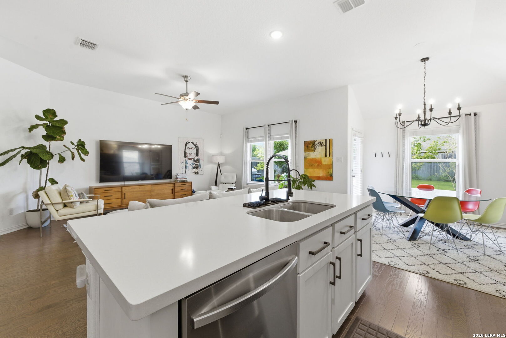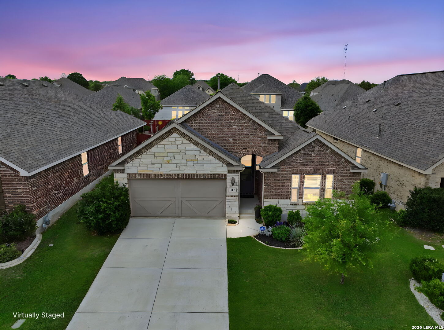 Welcome to 117 Dovetail St - A charming, thoughtfully upgraded retreat just waiting to welcome you home located just minutes to Boerne's historic Main Street-full of shopping, dining and entertainment. This light-filled, single-story gem offers a bright, open layout with 3 bedrooms and 2 baths. Step inside and fall in love with sweeping 10 foot ceilings and hardwood flooring in the main living areas, easy-care new ceramic tile in wet zones, and carpeting in the bedrooms. The gourmet kitchen is a standout - boasting white cabinetry, a large quartz island, gas cooking, updated appliances, a stylish mosaic backsplash, and a walk in pantry. Your peaceful retreat awaits in the primary suite, complete with a view to the stunning backyard, a walk-in shower, separate garden tub, and a spacious walk-in closet-the perfect haven after a long day. This home maximizes every corner for comfort and flow. Don't forget-you're just a short stroll away from the neighborhood park and a quick drive from vibrant downtown Boerne. Step outside into your tranquil, drought-tolerant backyard-a welcoming retreat for birds, butterflies, bees, lizards, frogs, and more. With thoughtful landscaping using native plants, you'll enjoy a true wildlife haven that thrives on minimal upkeep and brings natural beauty right to your back door. Imagine evenings spent serenaded by happy chirping and the gentle rustle of wings-pure Hill Country magic. With its bright, open floor plan, delightful upgrades, and a backyard alive with nature, it's a peaceful retreat altogether. Whether you're hosting friends, enjoying family time, or simply sipping morning coffee, this home invites everyday moments of joy and connection. Located in the highly acclaimed Boerne school district, 117 Dovetail Street checks so many boxes! Single story homes in this condition at this price don't stay on the market long in Boerne, so don't wait to put it on your short list!