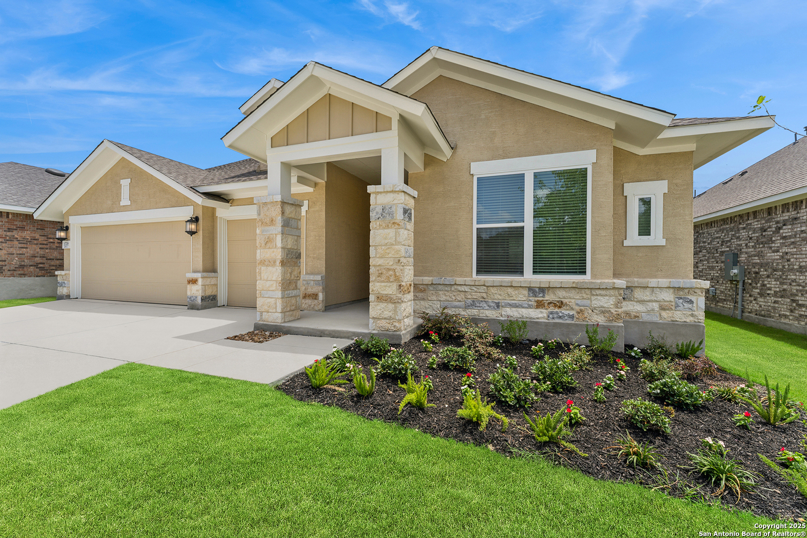 Experience living at its finest in the welcoming and glamorous Rymer by David Weekley floor plan. Your open-concept living spaces offer an innovative, sunlit expanse that invites your ideal interior design style. Extend that style to the versatile specialty room you've created in the spacious study. The gourmet kitchen is shaped to support both solo and collaborative meal prep, and features a family breakfast island and a corner pantry. Each spare bedroom provides a large closet and plenty of room for unique personalities. The guest suite includes a private bathroom, making it an ideal arrangement for visiting loved ones. Your deluxe Owner's Retreat presents a stately bedroom, luxurious bathroom, and an incredible walk-in closet. Your Personal BuilderSM is ready to begin working on your dream home in San Antonio, Texas.