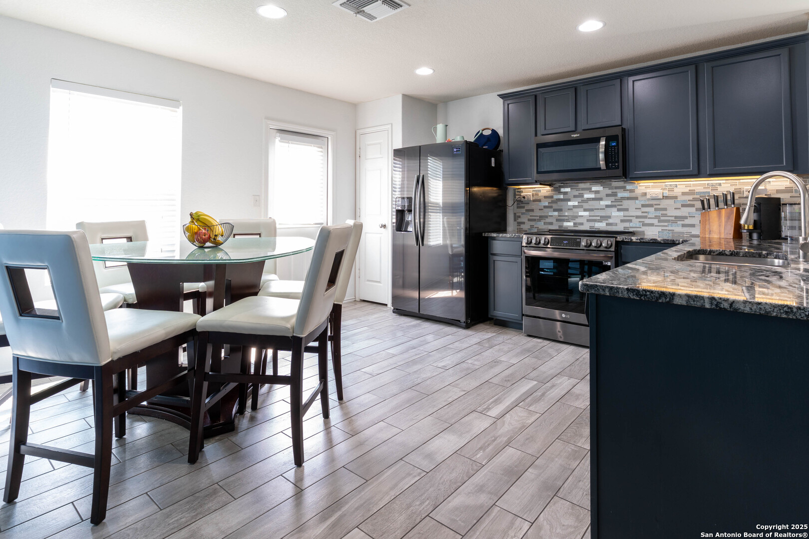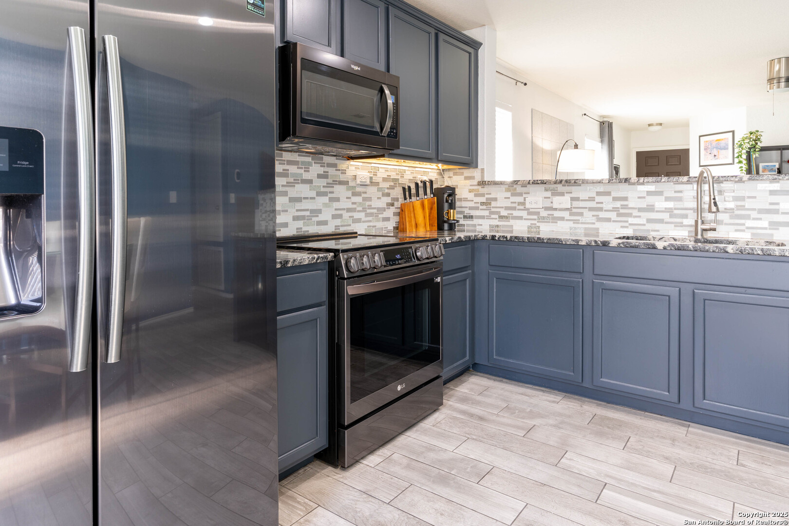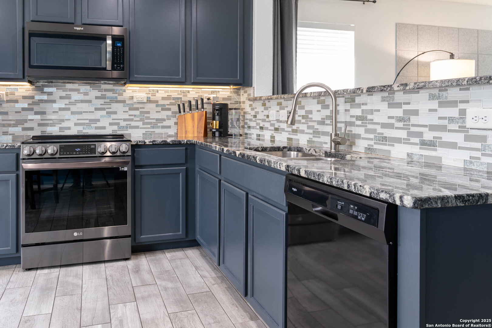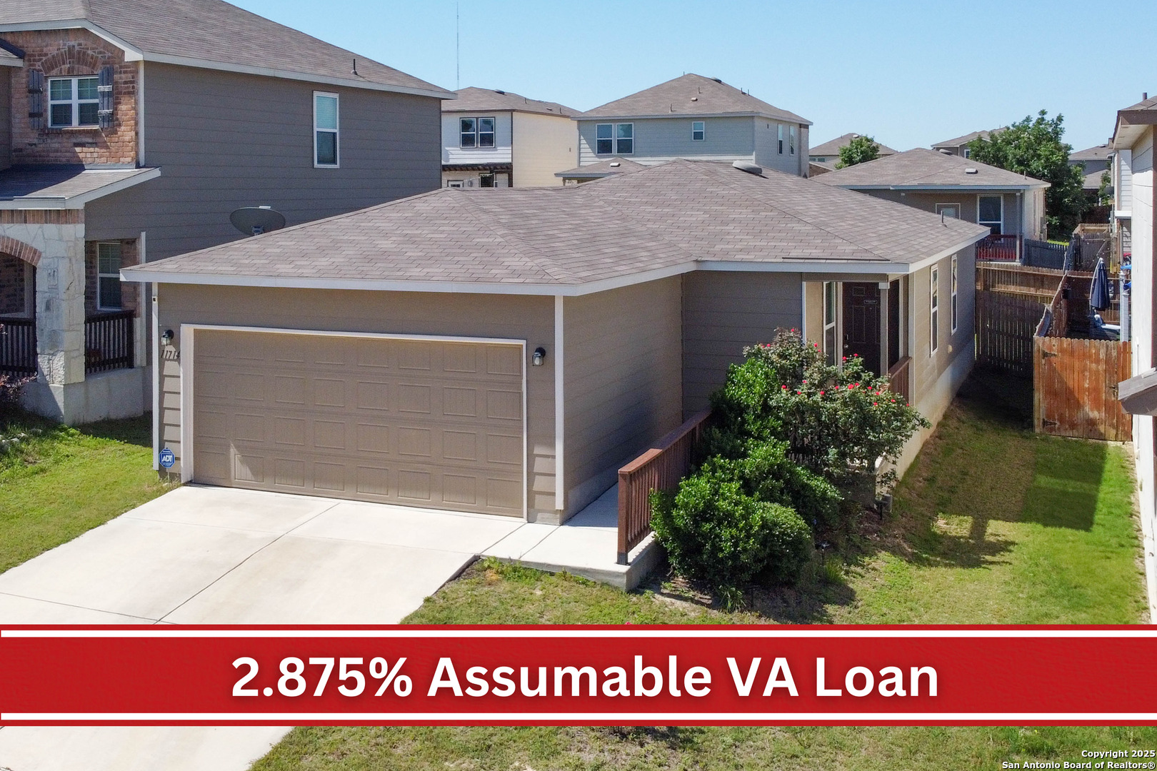 VA ASSUMABLE LOAN at 2.875%!! Single family ranch Designed for buyers seeking smart space, easy upkeep, and modern style, this beautifully upgraded home feels larger than its size-making it an exceptional buy. Step inside to find a gourmet kitchen with a closet-pantry, refrigerator, dishwasher new range that offers air fry mode and new microwave. and ALL appliances are INCLUDED. Stylish custom smoky gray cabinetry with under cabinet lighting, impressive designer granite countertops and back splash. Access to the fully fenced in back yard. The open spacious living room has premium tile flooring and custom paint throughout. The large primary bedroom boasts a walk-in closet and en suite bathroom. Two generous guest bedrooms share a hallway full bathroom complemented by a dedicated laundry room with washer and dryer that remain. Additional highlights include a a two-car garage, eye-catching light fixtures, and ceiling fans. Perfectly located in a highly rated school district and just minutes from shopping and dining. Ready for you to move in! See this one TODAY!