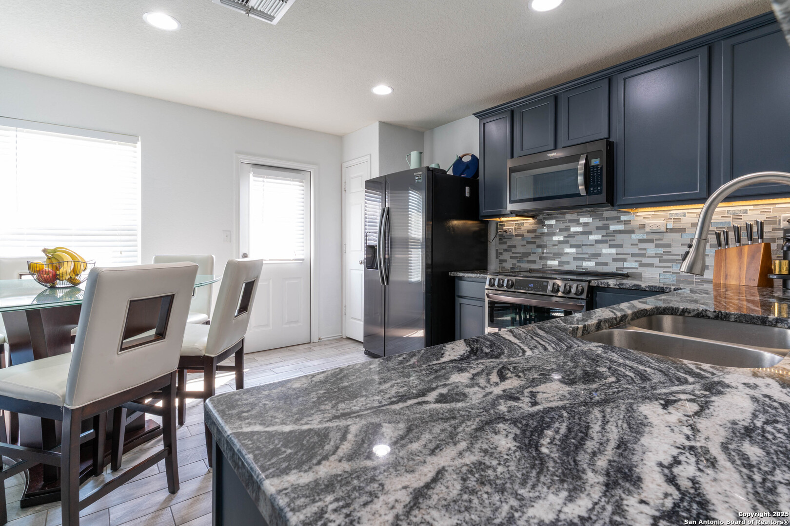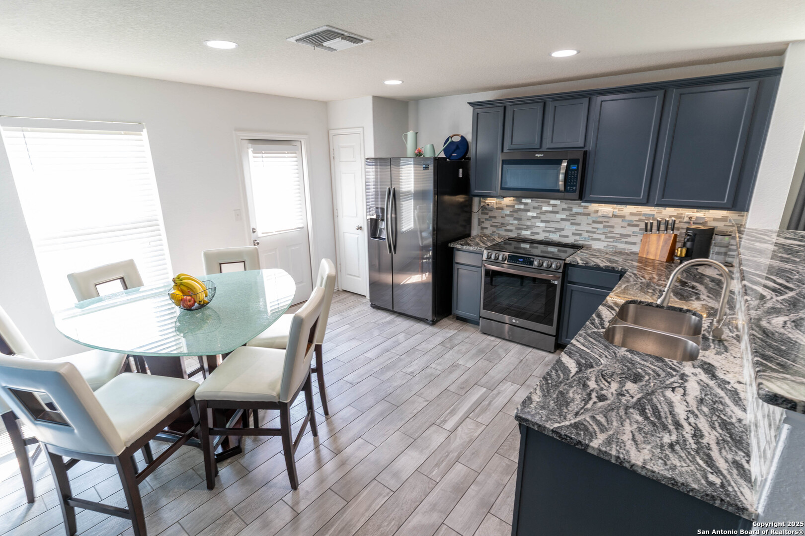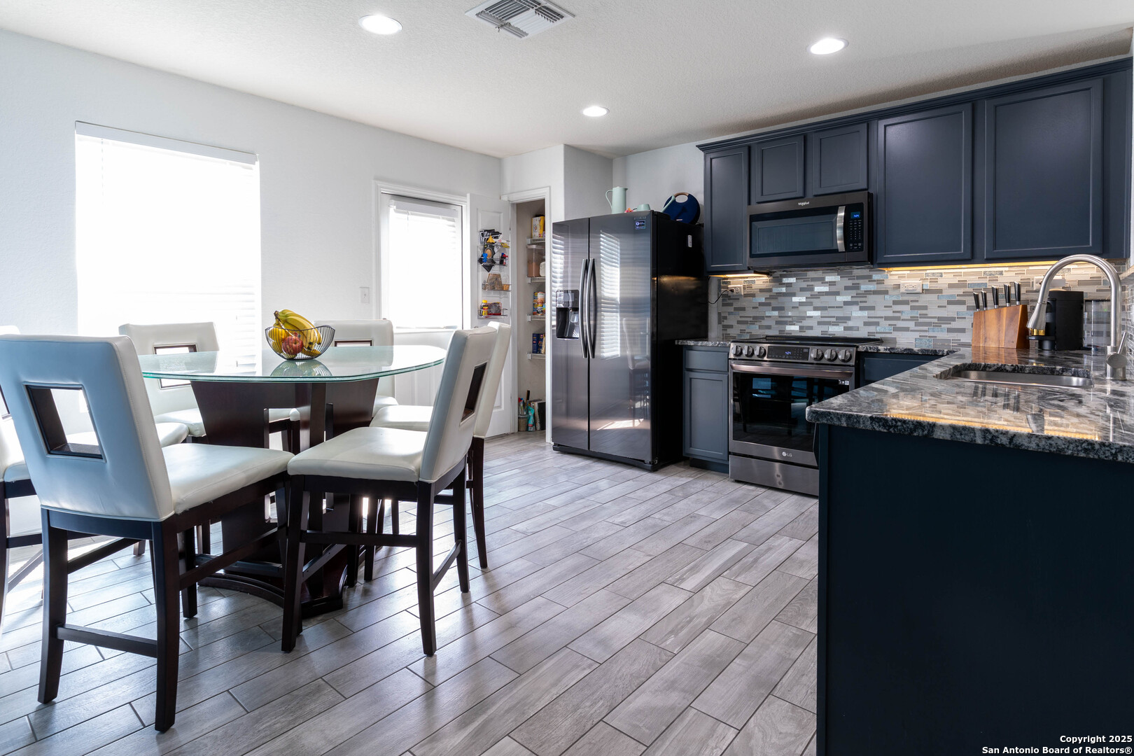 VA ASSUMABLE LOAN at 2.875%!! Single family ranch Designed for buyers seeking smart space, easy upkeep, and modern style, this beautifully upgraded home feels larger than its size-making it an exceptional buy. Step inside to find a gourmet kitchen with a closet-pantry, refrigerator, dishwasher new range that offers air fry mode and new microwave. and ALL appliances are INCLUDED. Stylish custom smoky gray cabinetry with under cabinet lighting, impressive designer granite countertops and back splash. Access to the fully fenced in back yard. The open spacious living room has premium tile flooring and custom paint throughout. The large primary bedroom boasts a walk-in closet and en suite bathroom. Two generous guest bedrooms share a hallway full bathroom complemented by a dedicated laundry room with washer and dryer that remain. Additional highlights include a a two-car garage, eye-catching light fixtures, and ceiling fans. Perfectly located in a highly rated school district and just minutes from shopping and dining. Ready for you to move in! See this one TODAY!