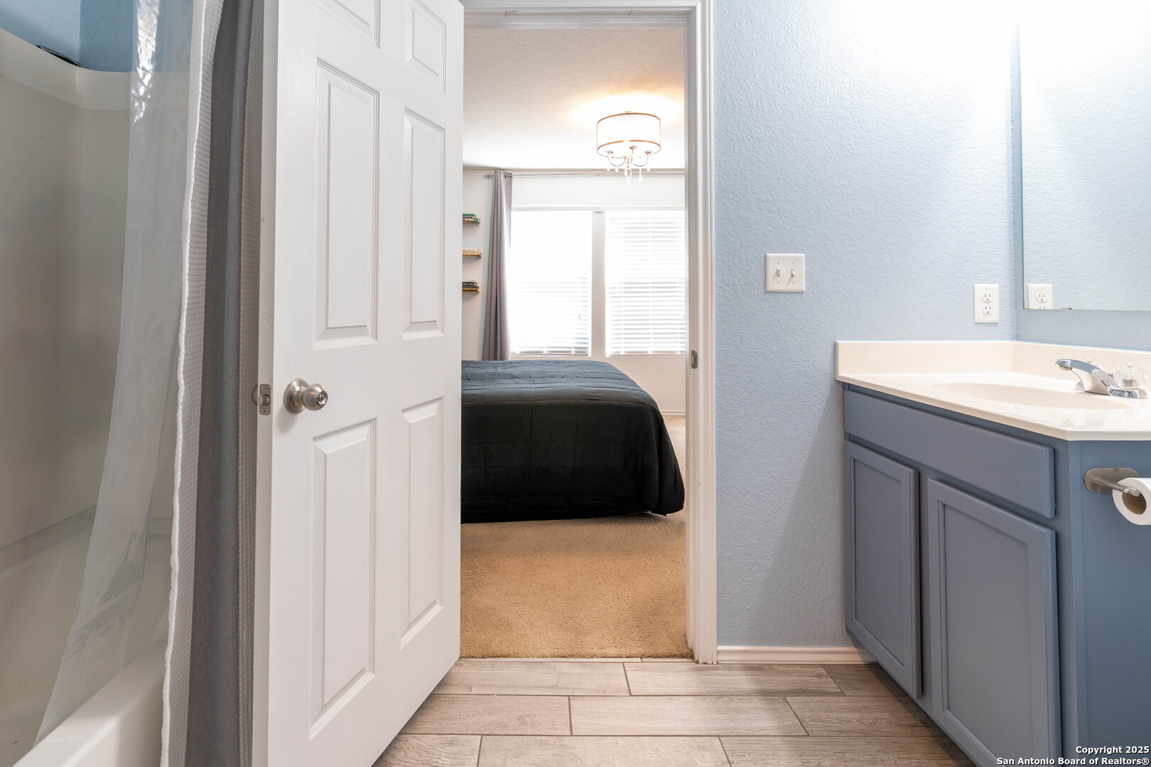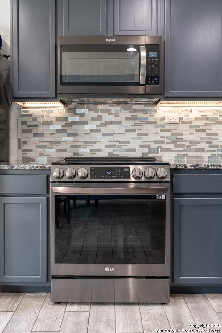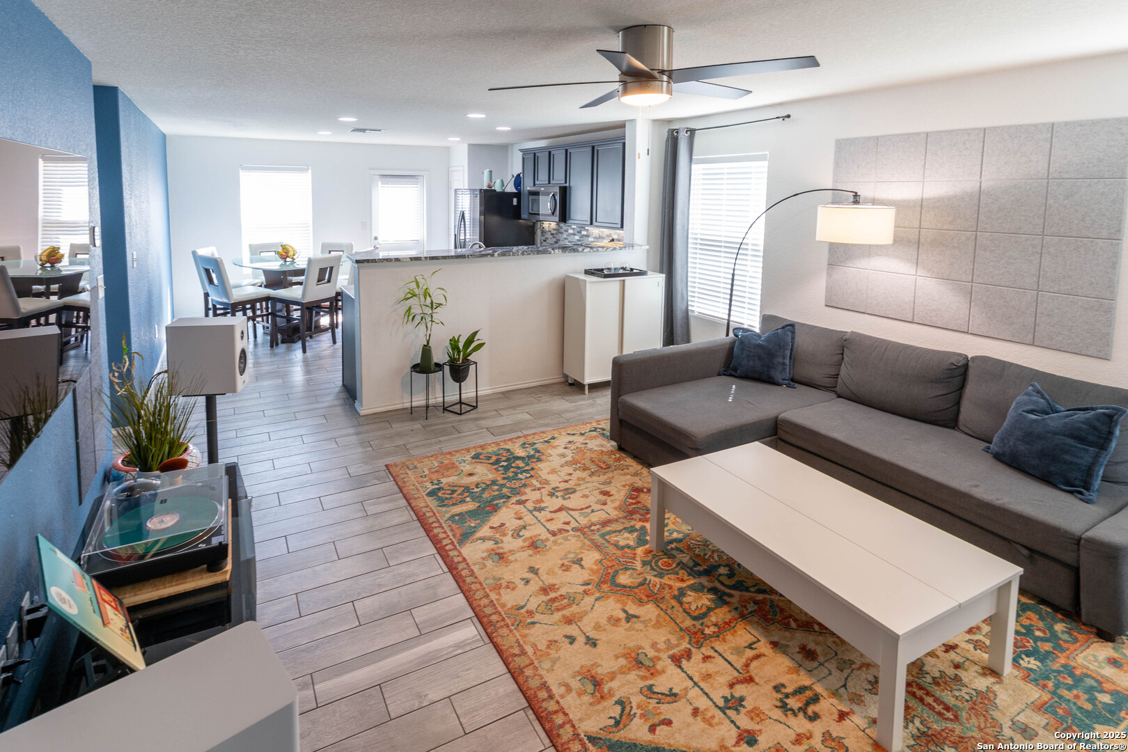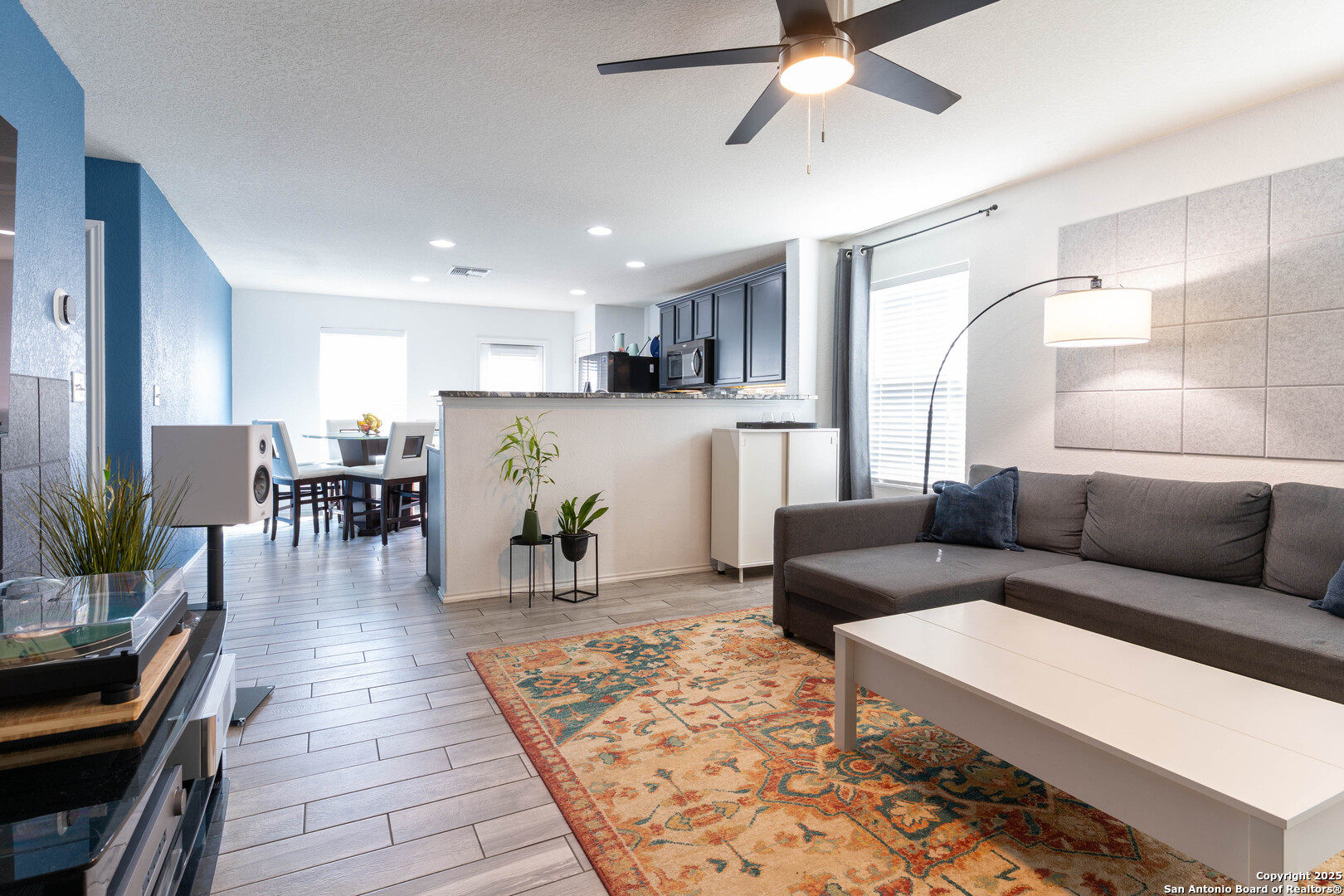 VA ASSUMABLE LOAN at 2.875%!! Single family ranch Designed for buyers seeking smart space, easy upkeep, and modern style, this beautifully upgraded home feels larger than its size-making it an exceptional buy. Step inside to find a gourmet kitchen with a closet-pantry, refrigerator, dishwasher new range that offers air fry mode and new microwave. and ALL appliances are INCLUDED. Stylish custom smoky gray cabinetry with under cabinet lighting, impressive designer granite countertops and back splash. Access to the fully fenced in back yard. The open spacious living room has premium tile flooring and custom paint throughout. The large primary bedroom boasts a walk-in closet and en suite bathroom. Two generous guest bedrooms share a hallway full bathroom complemented by a dedicated laundry room with washer and dryer that remain. Additional highlights include a a two-car garage, eye-catching light fixtures, and ceiling fans. Perfectly located in a highly rated school district and just minutes from shopping and dining. Ready for you to move in! See this one TODAY!