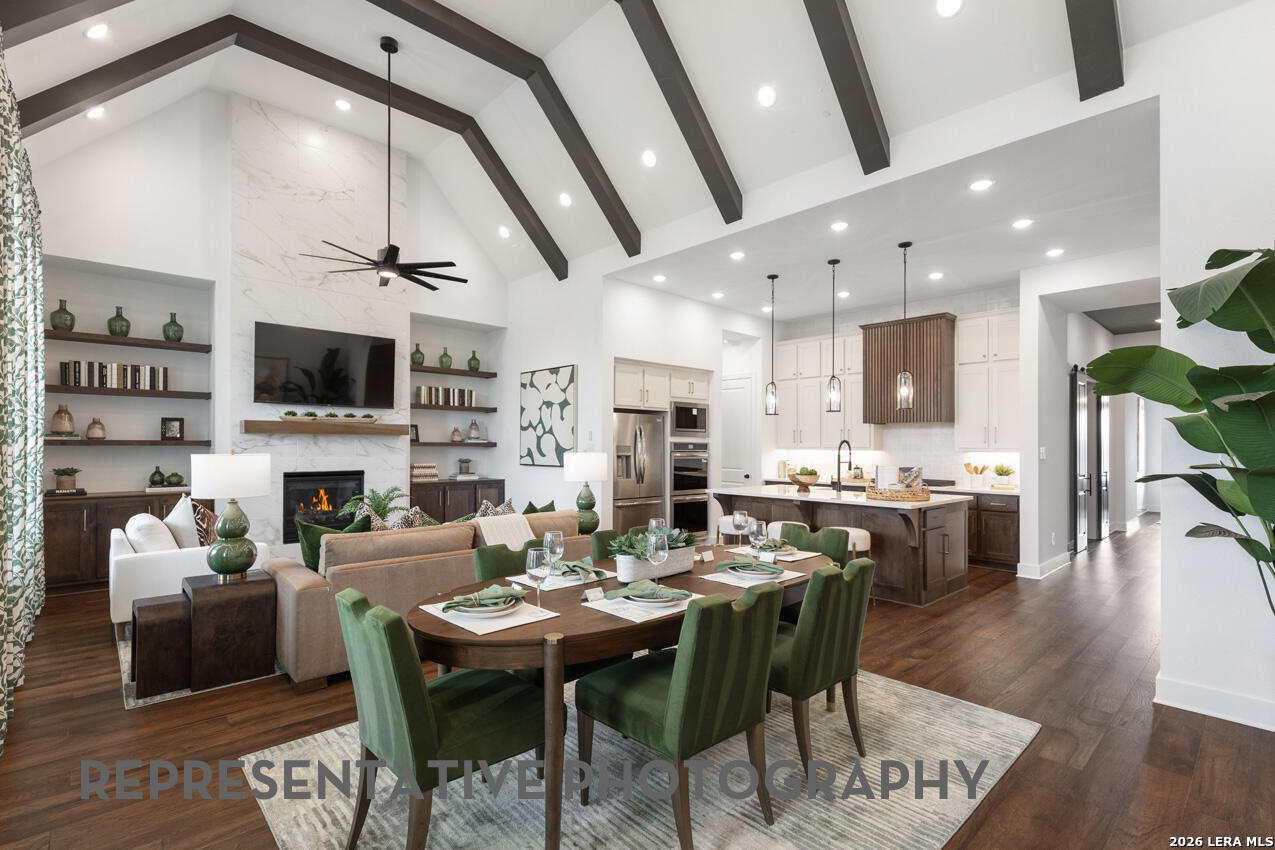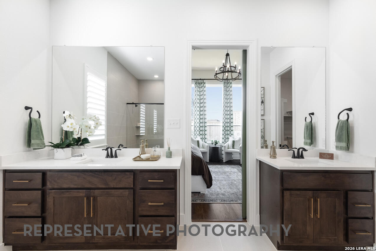 Open plan with vaulted ceilings in the family room and dining room. This home has an upgraded Kitchen with built in appliance package. Each bedroom has it's own bathroom for privacy. You'll love the oversized covered patio off the family room with soaring windows.