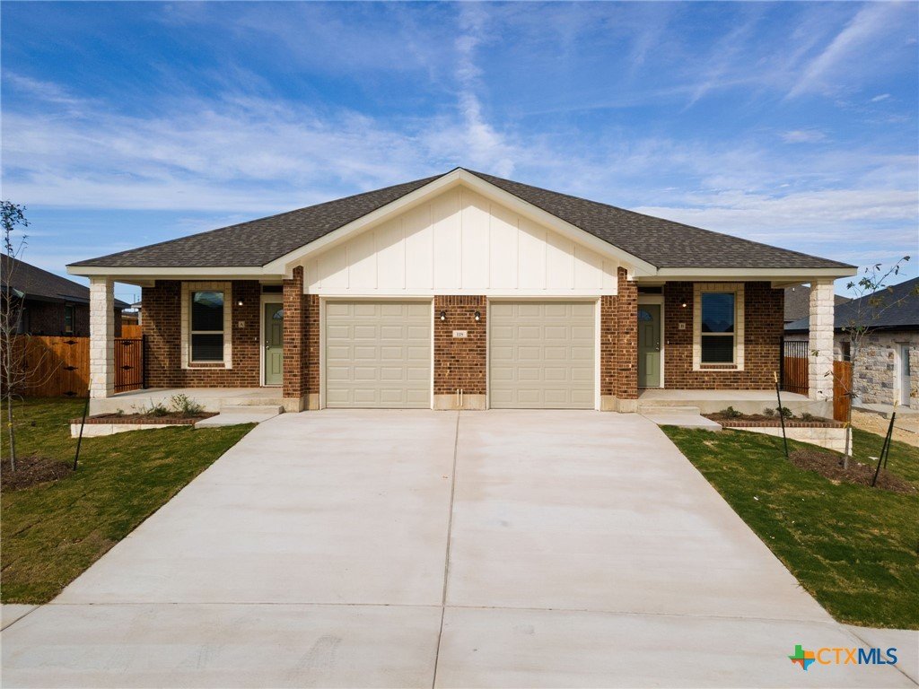 Experience luxury duplex living at its finest. These brand-new duplex homes redefine affordable living with high-end features and thoughtful upgrades that truly feel like home. Whether you’re an owner-occupant or an investor, this is a rare opportunity to live comfortably while generating income—rent one side or both and let your investment work for you. Located in a newly developed subdivision in Copperas Cove, this community offers the perfect balance of peace and convenience, just minutes from shopping, dining, and Fort Hood. The exterior showcases a stunning blend of brick and stone, complete with full yard sod, an automatic sprinkler system, and a wood privacy fence. Step inside to discover soaring ceilings, modern paint colors, and top-tier fixtures and finishes throughout. Enjoy luxury vinyl plank flooring (no carpet), wood faux blinds, granite countertops in kitchens and bathrooms, stylish tile backsplashes, and stainless steel appliances including stove, microwave, and dishwasher. Each unit features three spacious bedrooms, including a private primary suite with its own bathroom, large walk-in shower, and walk-in closet—designed for both comfort and functionality. These duplexes offer low-maintenance living, strong rental potential, and long-term value. Multiple floor plans and lots are available—don’t miss out on this exceptional investment opportunity.
