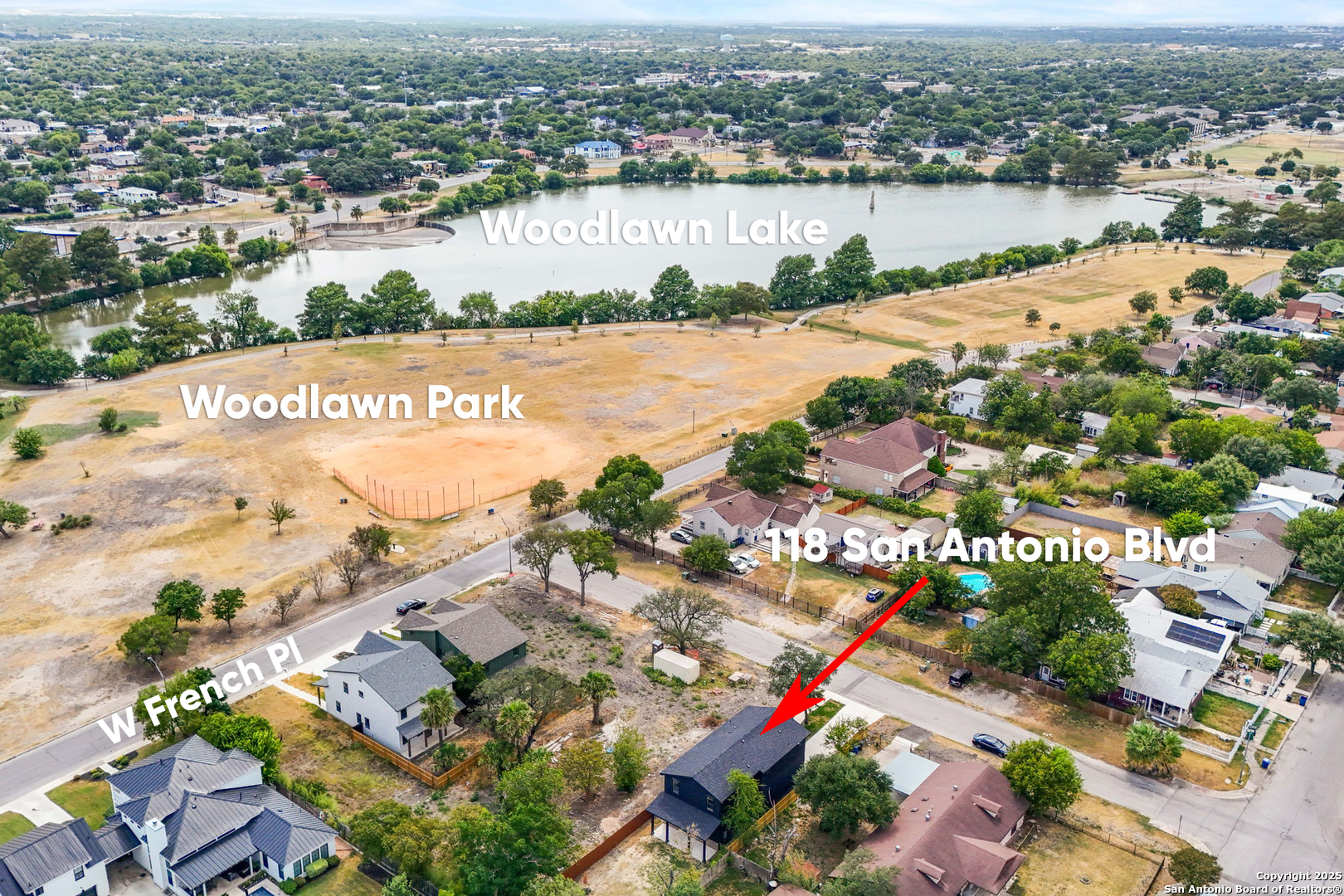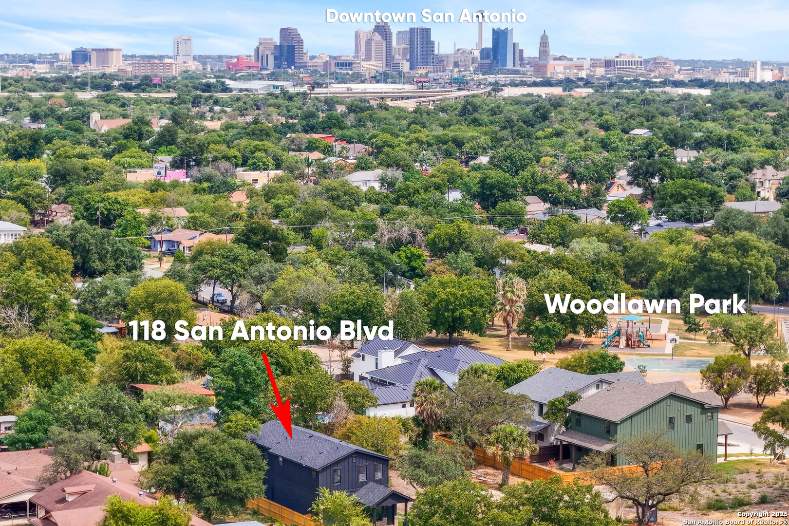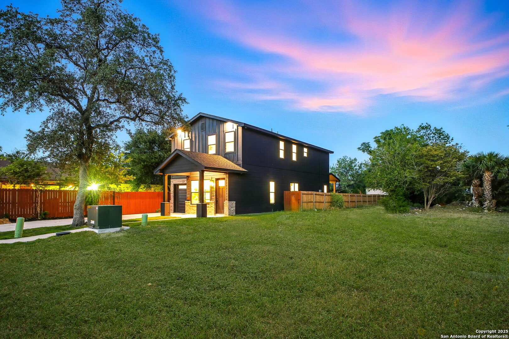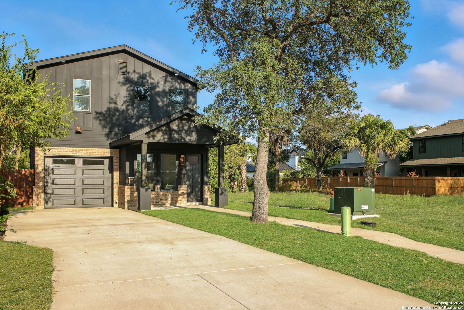 Welcome to this stunning two-story new construction home in the heart of San Antonio, just steps from scenic Woodlawn Park and its many amenities. This thoughtfully designed residence offers an open floor plan with modern finishes throughout. Highlights include luxury vinyl plank flooring, soaring 10-foot ceilings, and 8-foot doors that create a spacious and elegant feel. On the main level, a dedicated home office provides the perfect space for remote work or a guest room. The gourmet kitchen showcases custom wood cabinetry, quartz countertops, a large center island, stainless steel appliances, and a combination of pendant and recessed lighting, ideal for cooking and entertaining. Beautiful built-in cabinetry off the dining area adds a refined touch. Upstairs, each bedroom is complete with ceiling fans, including the primary suite featuring a walk-in closet and spa-like en-suite bath with double vanities and a sleek walk-in shower. The laundry room offers added convenience with built-in cabinetry and a folding station. Additional features include a drop zone off the garage, EV charging station ready, plumbing for a water softener, and a front yard sprinkler system for easy maintenance. With close proximity to parks, downtown, and major highways, this modern, move-in-ready home is perfectly situated in a vibrant and growing neighborhood.