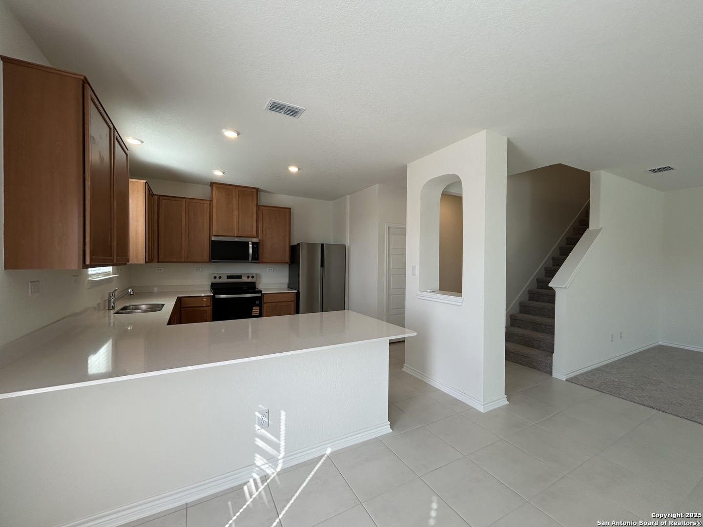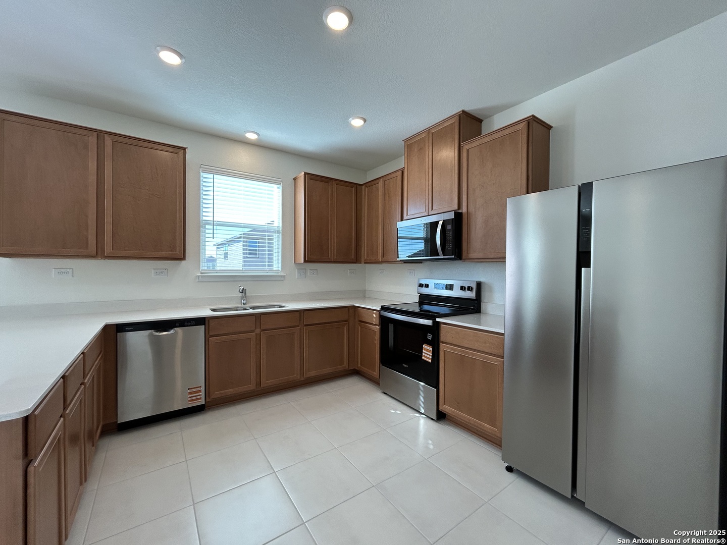 This brand-new home in Tierra Buena offers 2,100 square feet of KB Home style with tile accents and a Community POOL! The two-story layout features four bedrooms and 2.5 baths, with an open plan and plenty of natural light. The spacious kitchen boasts Silestone countertops, beautiful tile flooring, and ample cabinetry. Move-in day is effortless with all-new appliances, including a dishwasher, washer, dryer, and stainless-steel refrigerator. Upgrades include 9-foot ceilings, recessed lighting, 42-inch cabinets, Silestone countertops, stainless steel appliances, an overhead microwave, 18-inch tile, 2-inch faux blinds, and a two-car garage with an automatic opener. Outside, enjoy a generous backyard with an extended patio. The Tierra Buena neighborhood also offers a pool and playground facilities conveniently located on the same street.