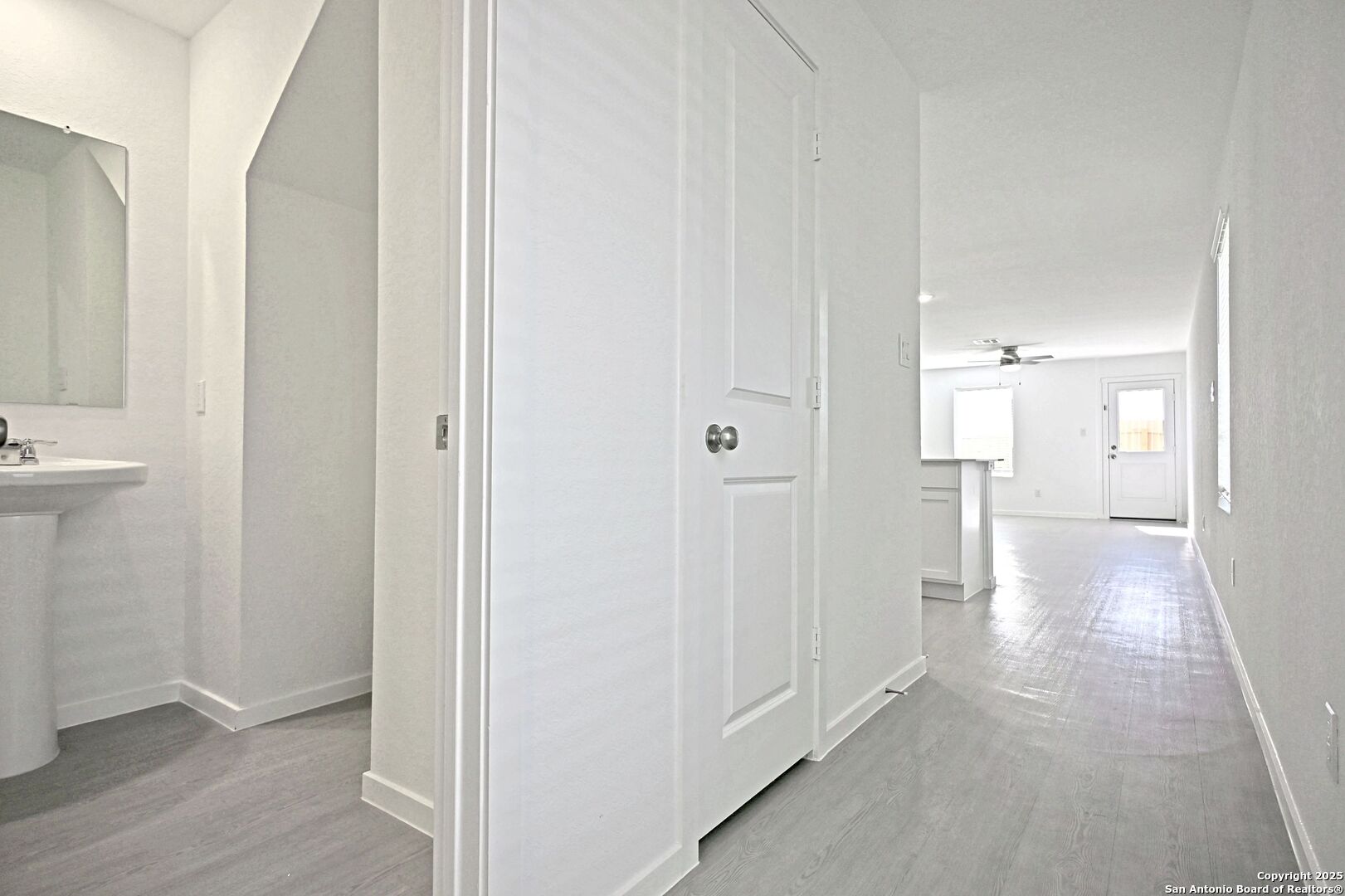 Come take a tour of this adorable two-story 3 bed/2.5 bath tiny home features an attached one-car garage, modern, open floor plan design that maximizes the interior living space. The open floor plan on the main floor includes pull down blinds and a kitchen that overlooks a the living room with easy access to the private backyard. The primary bedroom suite upstairs comes with walk-in closet and private bathroom with walk-in shower. Floral Meadows is conveniently close to IH 10 within commutable distance to San Antonio and Randolph AFB.