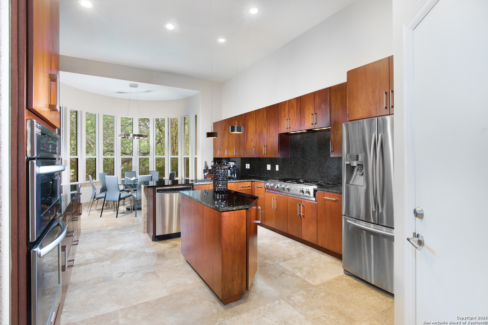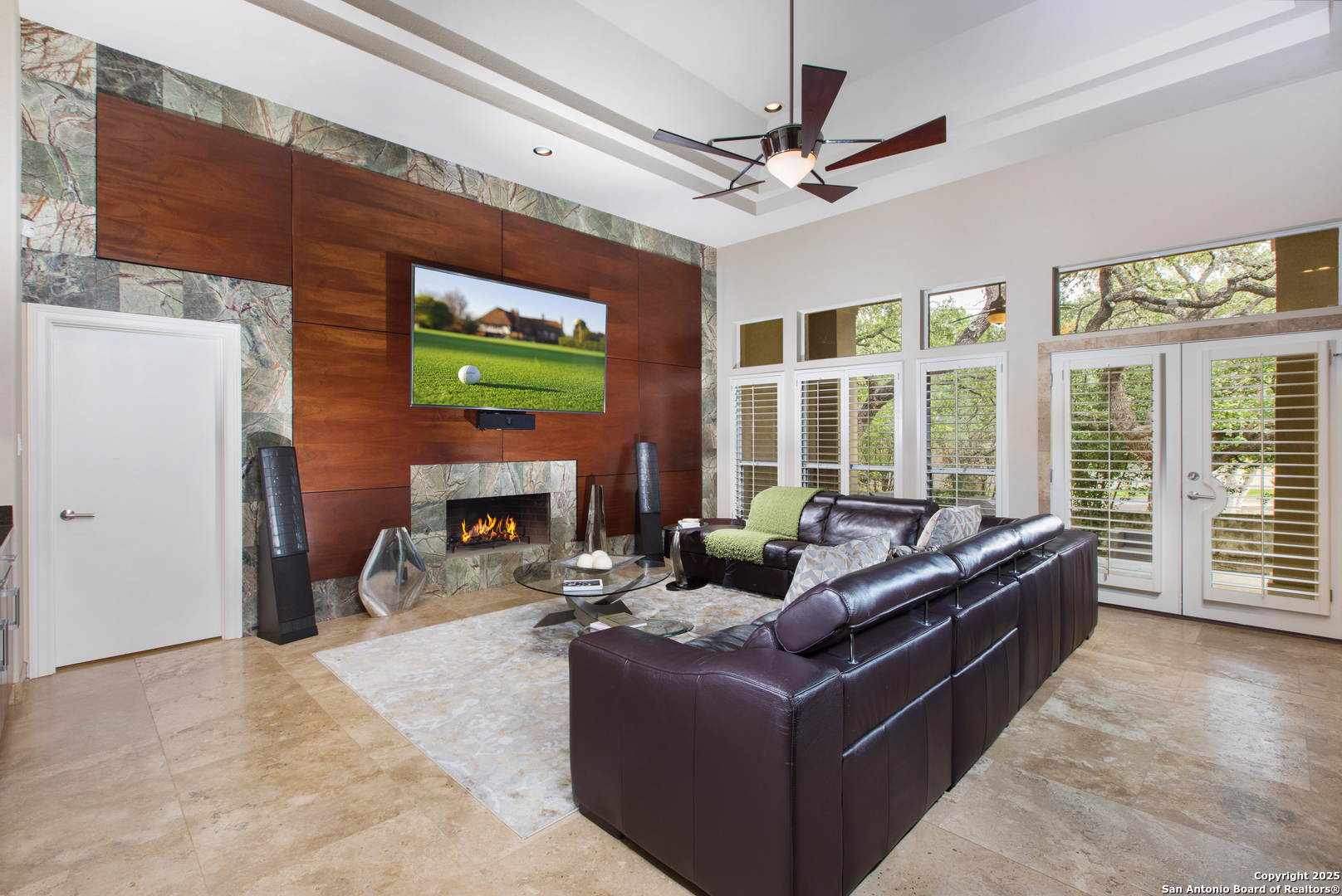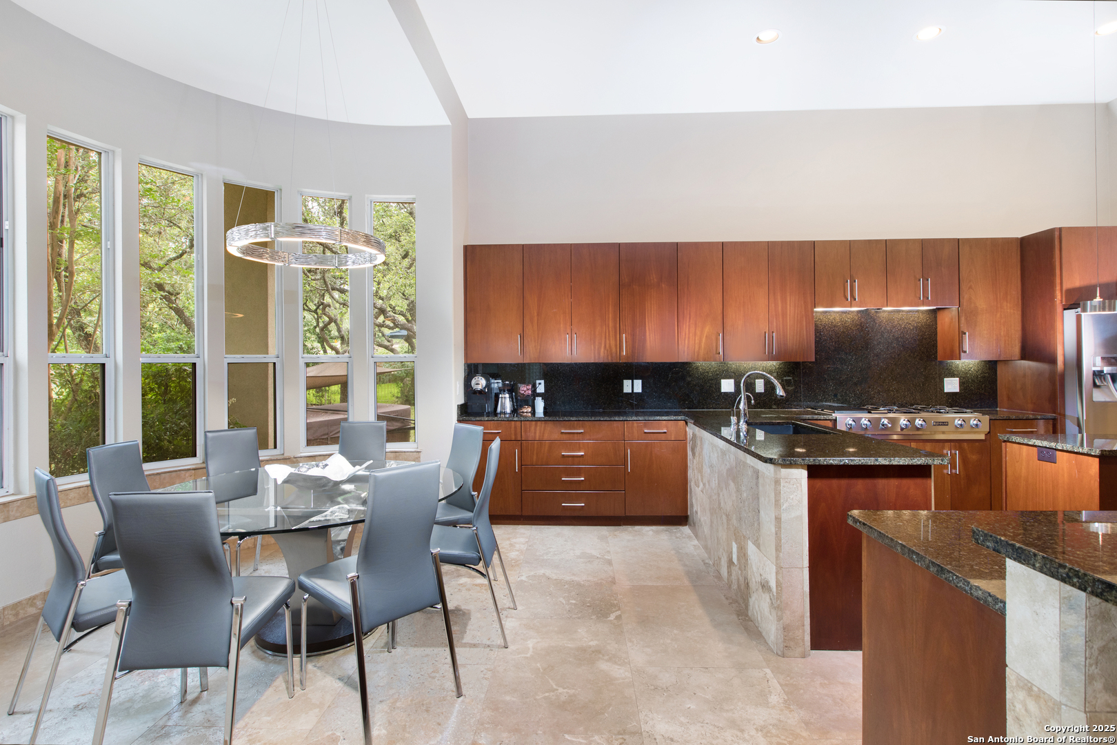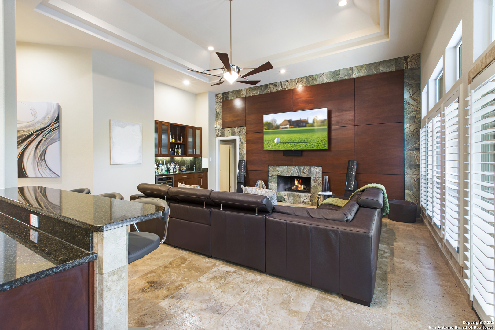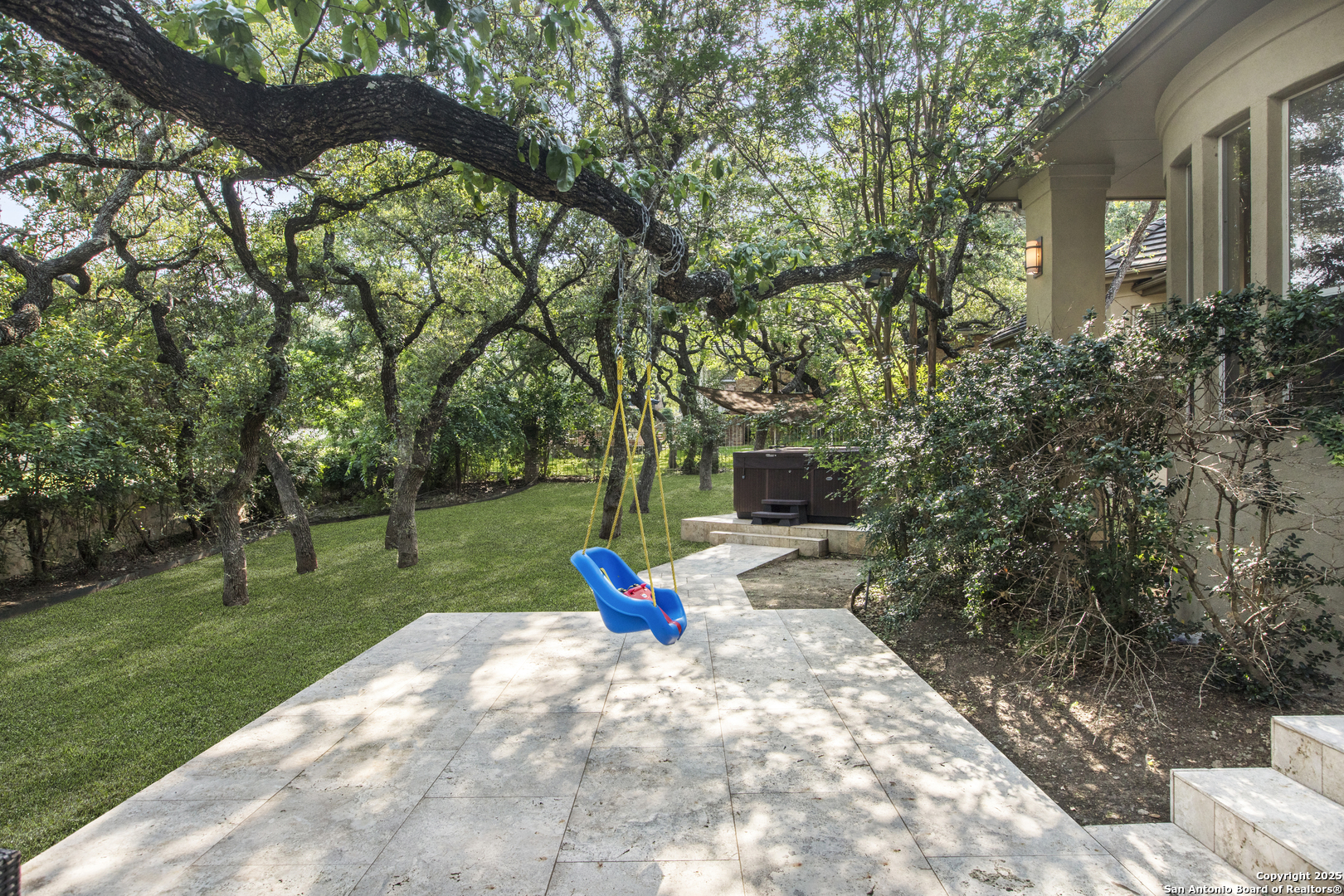 A sanctuary of elegance nestled within the coveted Elm Creek Subdivision. This 4-bedroom, 3.5-bathroom home radiates a perfect harmony of style, comfort, and luxury. Inside, a welcoming foyer opens to a rich ensemble of spaces filled with natural light. Follow the gleaming travertine floors to a formal dining room, resplendent in its sophisticated details. The spacious living room, anchored by a charming wood-burning fireplace, offers a warm and inviting setting for intimate gatherings and entertaining. The gourmet kitchen stands as the heart of this home, outfitted with stainless steel appliances, abundant counter space, and a generous island perfect for meal prep and casual dining. An adjoining breakfast area harmoniously connects the kitchen to a tranquil backyard retreat. The master suite provides a restful sanctuary, complete with a spa-like en-suite bath designed for relaxation and renewal. The additional bedrooms continue this theme of serenity and softness, offering comfortable spaces for family and guests alike. Outside, a beautifully landscaped backyard and a covered patio create an ideal spot for al fresco dining and entertaining, while a two-car garage adds convenient storage and parking. Located near top-rated schools, desirable amenities, and with easy highway access, this home is your key to experiencing all the best San Antonio has to offer.