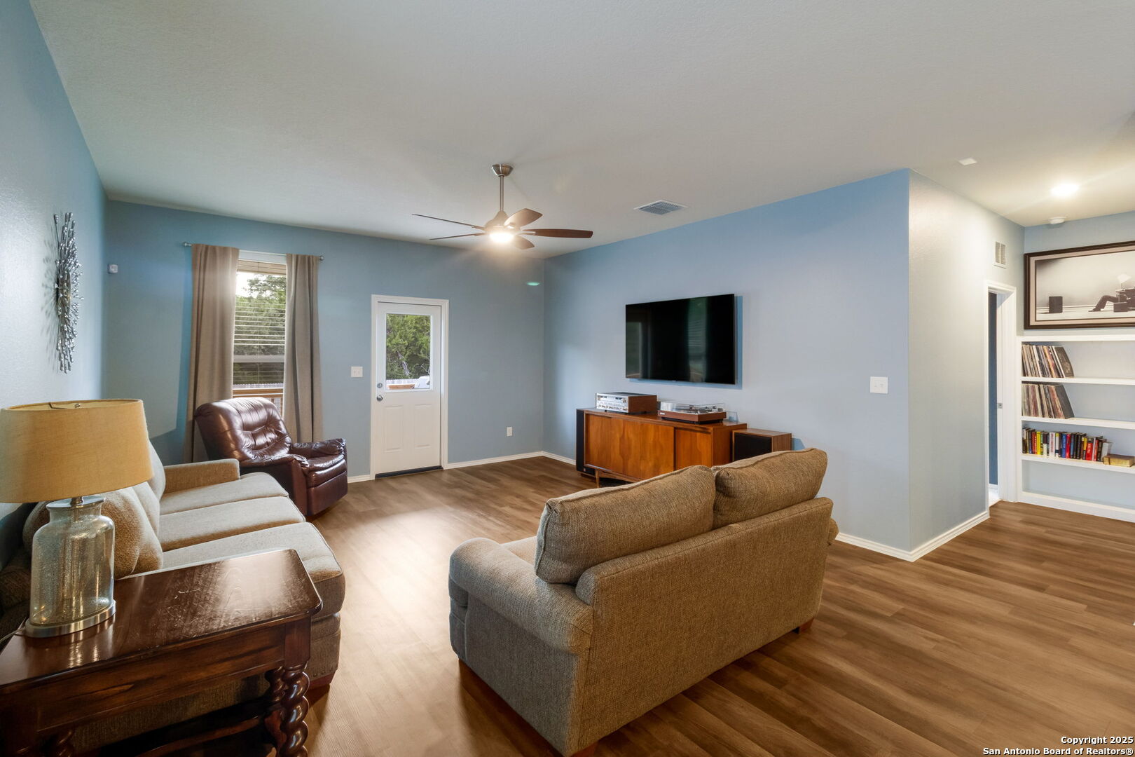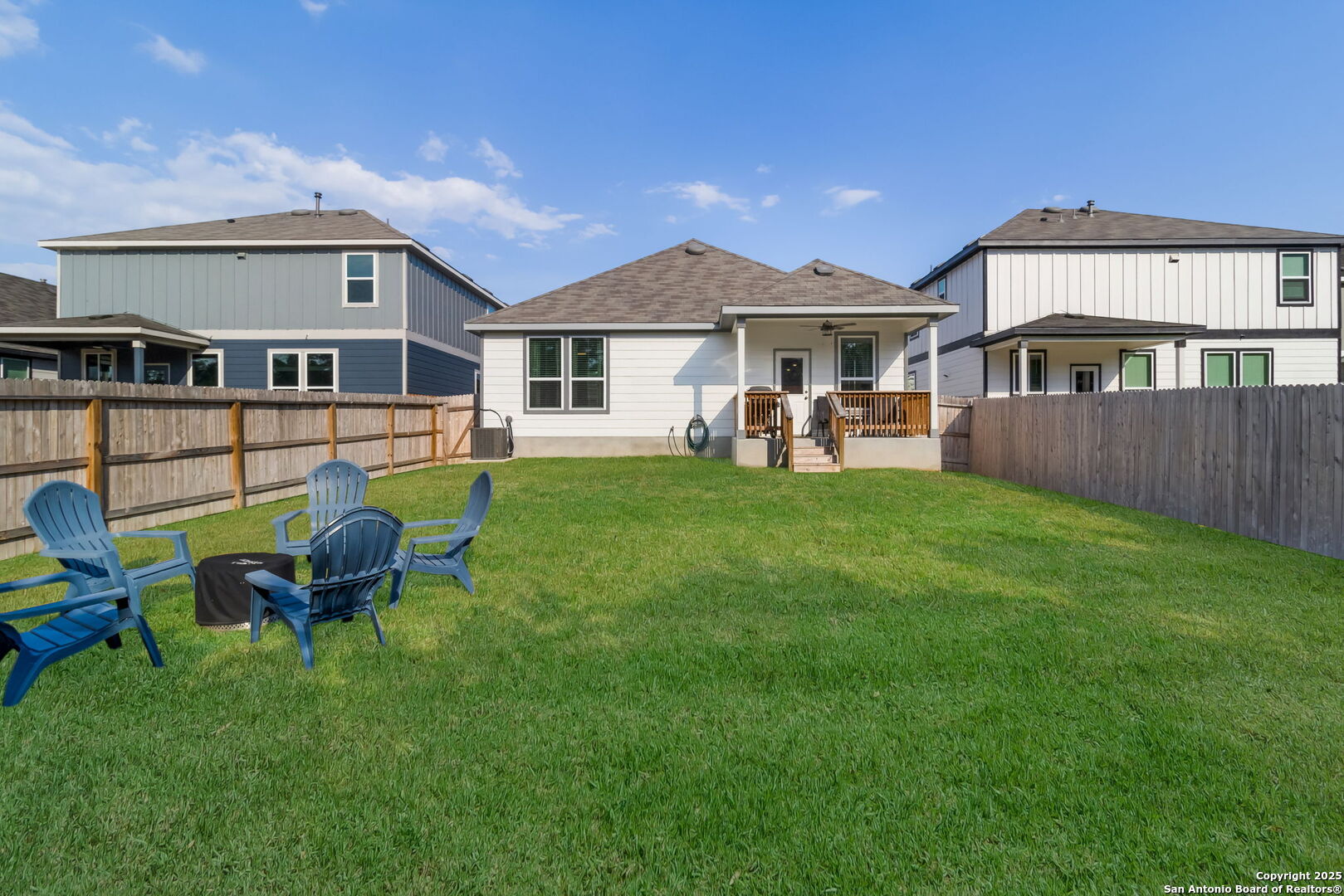 Welcome to your practically brand-new dream home, built in 2024 perfectly situated with a view of Government Canyon right from your back porch. This stunning single-story residence offers 4 spacious bedrooms and a thoughtfully designed open floor plan that blends style and functionality. Step into a modern kitchen featuring sleek granite countertops and plenty of workspace, perfect for entertaining or everyday living. The living areas are filled with natural light and a seamless flow, creating a warm and inviting atmosphere. Outside, enjoy an oversized yard that backs up to protected land-providing privacy, breathtaking views, and endless opportunities to relax or play. With its prime location, contemporary finishes, and unbeatable outdoor setting, this home truly has it all.