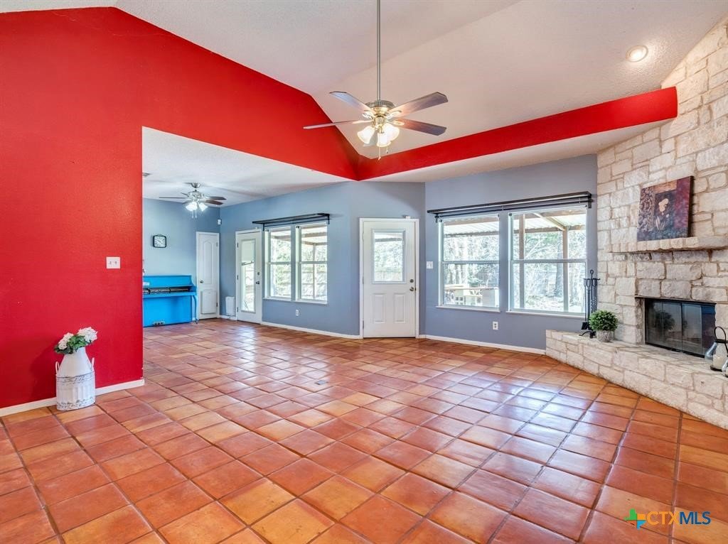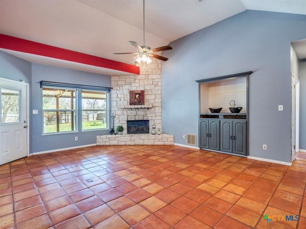 Welcome to 119 Briarwood Lane, a beautiful 4 bedroom, 2.5 bath home set on a spacious corner lot in the sought-after Cedar Hills community, surrounded by mature trees and a peaceful neighborhood atmosphere. As you step inside, you’re welcomed by a warm and inviting living area with soaring ceilings, Saltillo tile flooring, and a striking stone fireplace that instantly makes the space feel like home. The layout flows naturally into the dining area just off the kitchen, perfect for everyday meals or hosting friends and family. The kitchen offers a breakfast bar, center island, and plenty of workspace, making it both functional and inviting for gathering and entertaining. The primary suite feels like a private retreat, complete with its own fireplace and French doors that open to the outdoors, creating an ideal setting for slow mornings or relaxing evenings. The ensuite bath is thoughtfully designed with a double vanity and dedicated makeup area, a corner soaking tub, and a separate glass walk-in shower. Designed for easy, comfortable living, this home offers generous spaces that feel both inviting and functional. Located just 10 minutes from downtown Elgin’s Main Street, you’re close to local shops, dining, and community events, yet tucked away in a quiet setting surrounded by mature trees where you can truly unwind at the end of the day. Schedule your showing today and see what makes 119 Briarwood Lane feel like home.