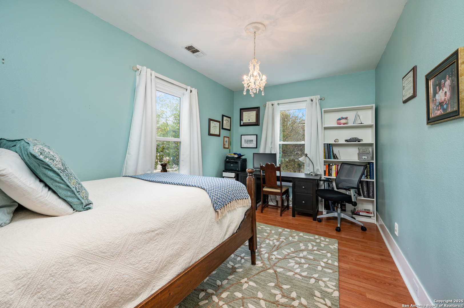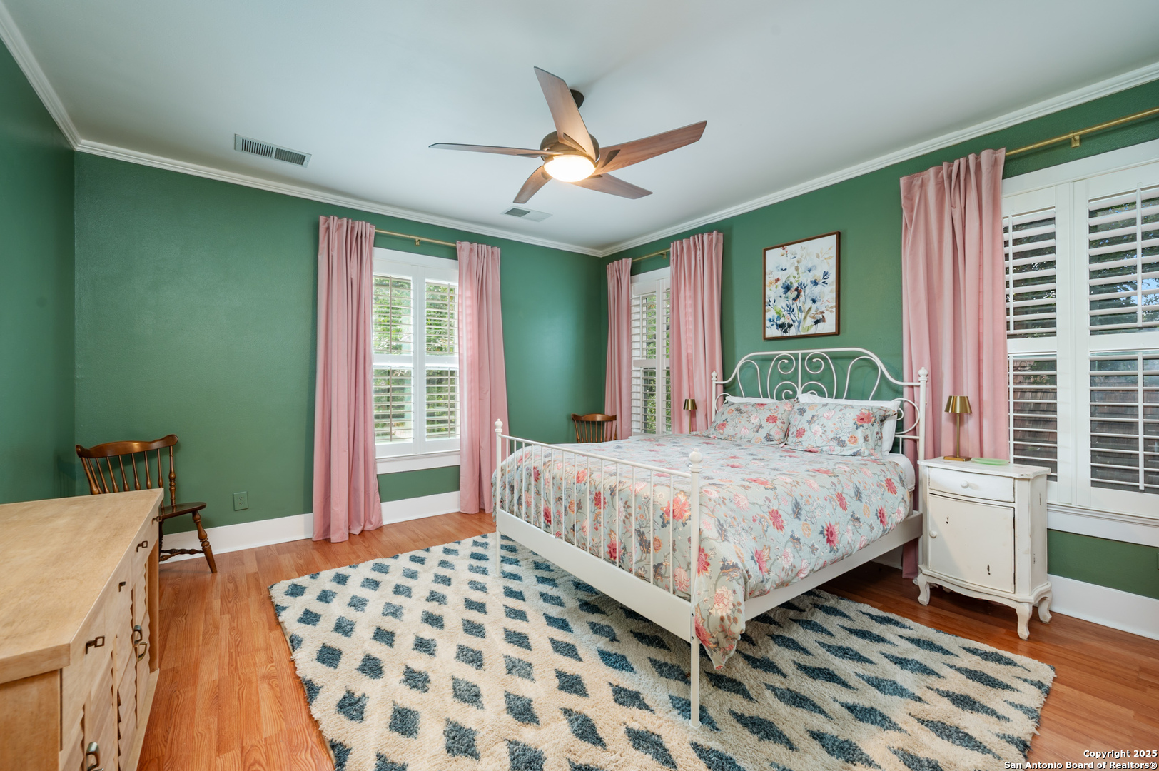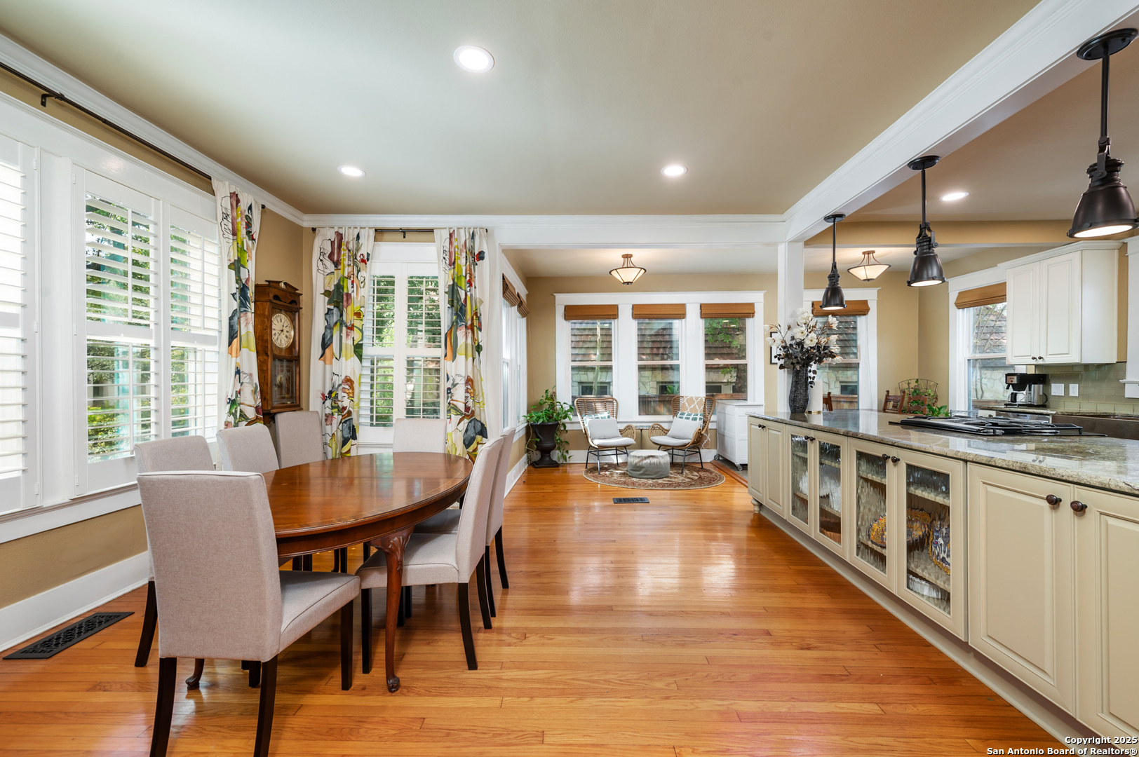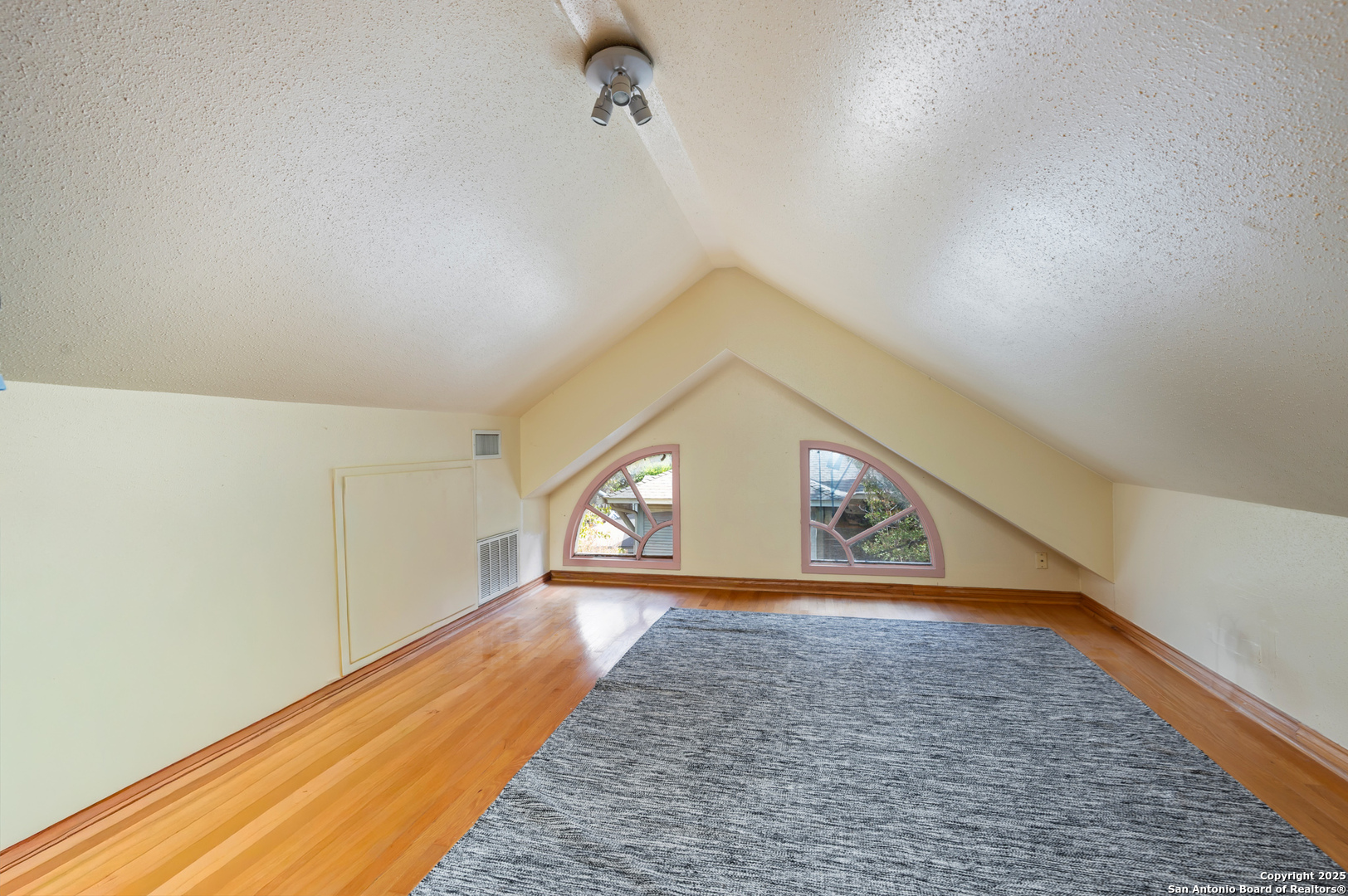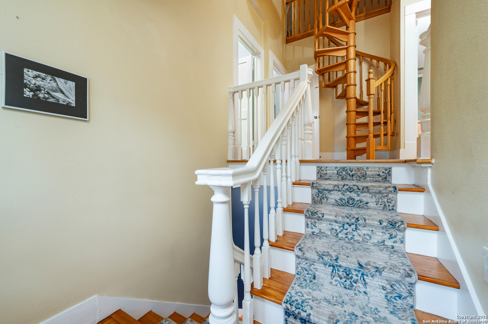 Fall in love with this 1926 Monte Vista treasure, where historic character and modern luxury come together on one of the district's most beautiful tree-lined streets. Proudly listed on the National Register of Historic Places, this elegant three-story home showcases original hardwood floors, rich millwork, stained-glass accents, a dramatic floor-to-ceiling fireplace, and a stunning double wood staircase. The renovated kitchen features an expansive island, copper farmhouse sink, wine fridge, stainless appliances, soft-close storage, and sun-filled windows that elevate everyday living. A screened porch overlooks the sparkling pool, spa, and waterfall, creating a private backyard escape. The main home offers 4 bedrooms, 2.5 baths, and a third-floor flex suite with a full bath, ideal for guests or a creative retreat. A detached 580sqft guest house with full bath provides exceptional flexibility for an office, studio, multigenerational living, or income potential. Additional highlights include a 2020 roof, recent energy-efficient windows, beautifully landscaped grounds, and an assumable 2.75 VA loan (approx. $565,900 balance) available to any qualified buyer-a rare opportunity to secure a below-market rate. Enjoy walkable charm, timeless craftsmanship, and the warmth of Monte Vista living-just 1.5 miles from Downtown San Antonio.