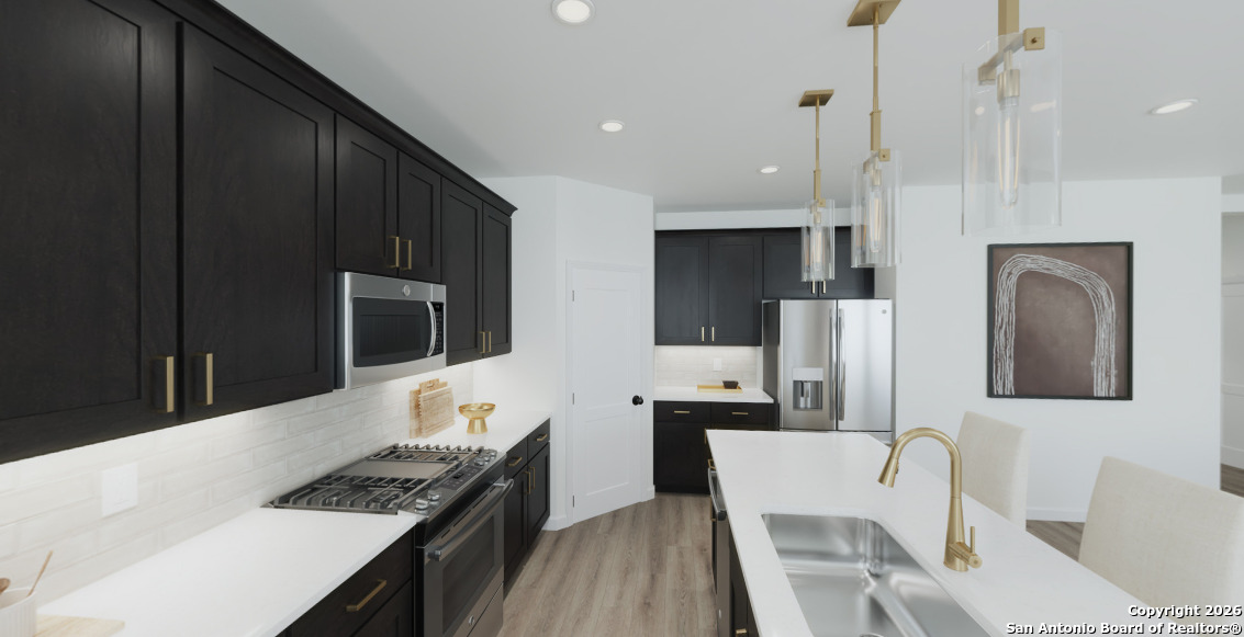 This inviting single-story home is designed for both style and functionality. At its heart is a gourmet kitchen complete with a center island, built-in appliances, and a spacious walk-in pantry. Seamlessly flowing into the open family room, the layout makes it easy to entertain guests or enjoy everyday moments together. Expansive windows fill the space with natural light while offering views of the backyard, creating a warm and welcoming atmosphere. The primary suite features a large walk in closet and private bathroom. Two secondary bedrooms and a private study are perfect for a growing family or hosting guests. Covered patio on the back of the home. This home is part of our Oxford Collection - where timeless finishes and rich cabinets meet bright floors and balanced lines. Oxford blends relaxed elegance with enduring style, creating a space for laughter, traditions, and meaningful moments from day one. This home is in The Wilder, near Loop 1604 and I-10, with easy commutes to major employers and planned amenities including a pool, playground, and cabana.