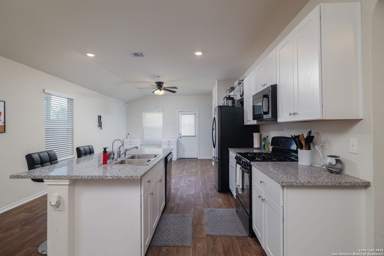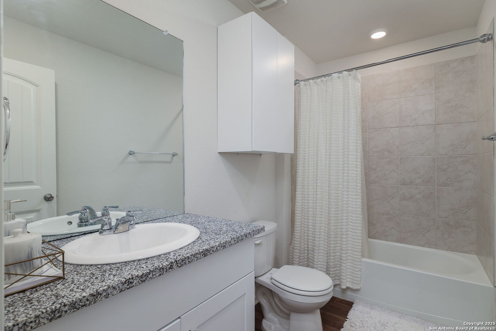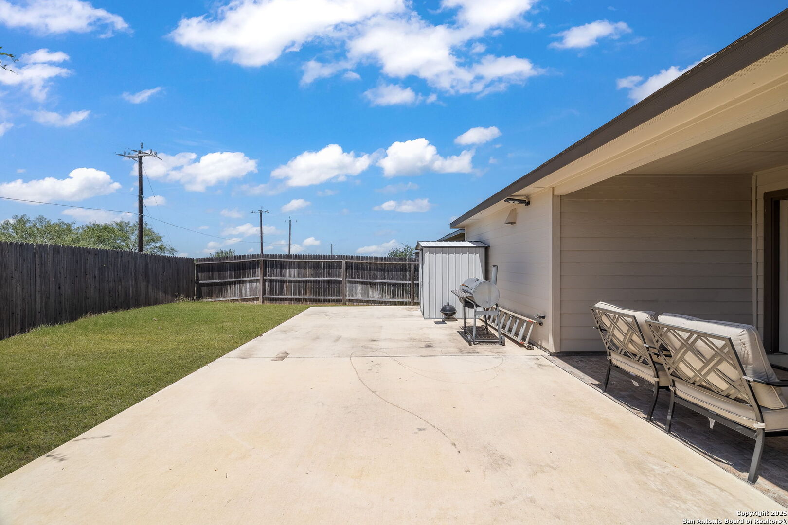 **Seller offering 5k towards buyers closing costs.** Welcome to this beauty in Stoney Creek, this one has an open concept featuring 3 bedrooms and 2 bathrooms all in a single story! The open kitchen boasts beautiful white cabinets, gas cooking and an eat in bar. Luxury vinyl planking in all common and wet areas really gives added flare! Enjoy your evening sitting outside in the backyard on the extended patio on those cooler-ish San Antonio evenings. All this and more just minutes from 1604, Lackland and tons of shopping and entertainment.